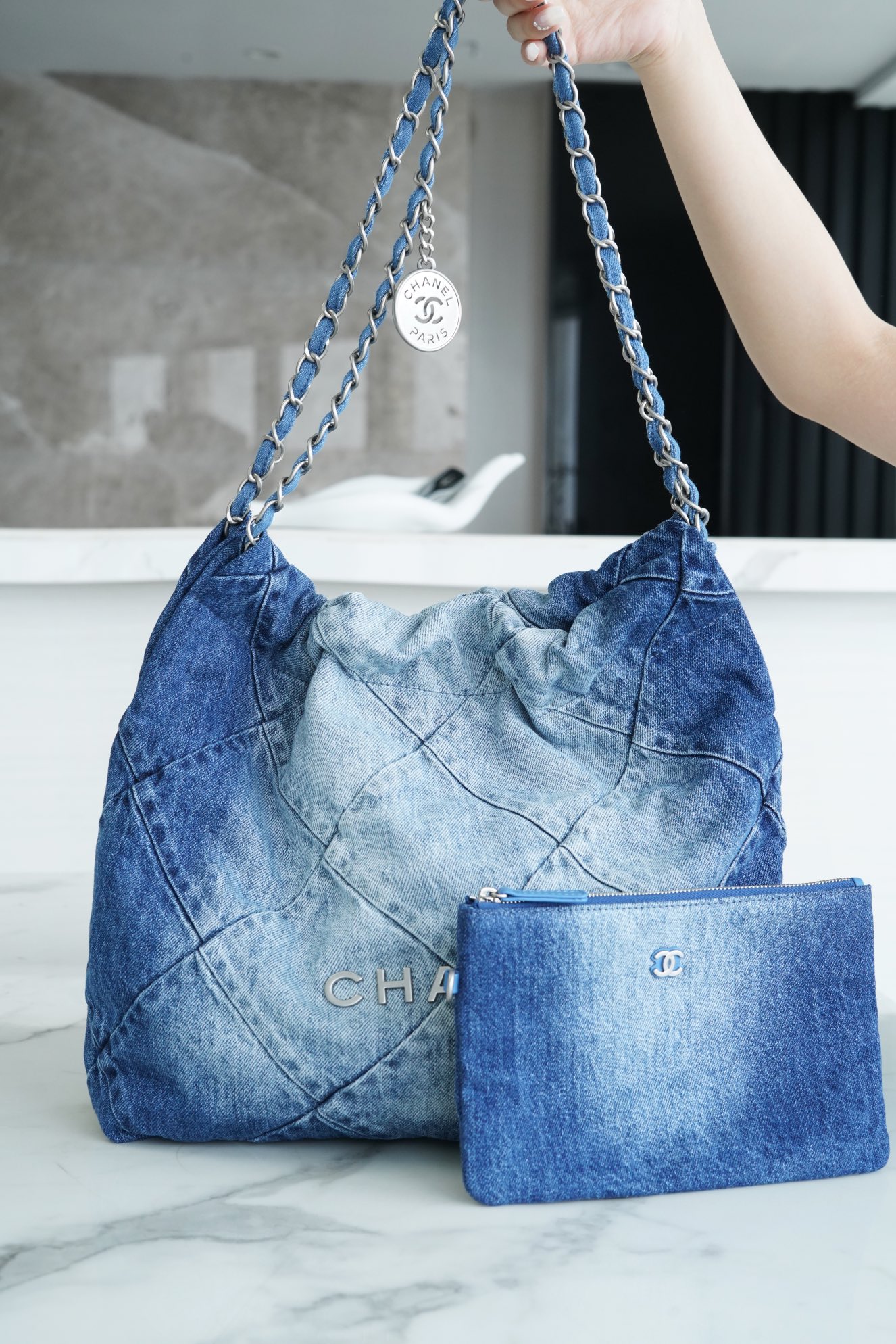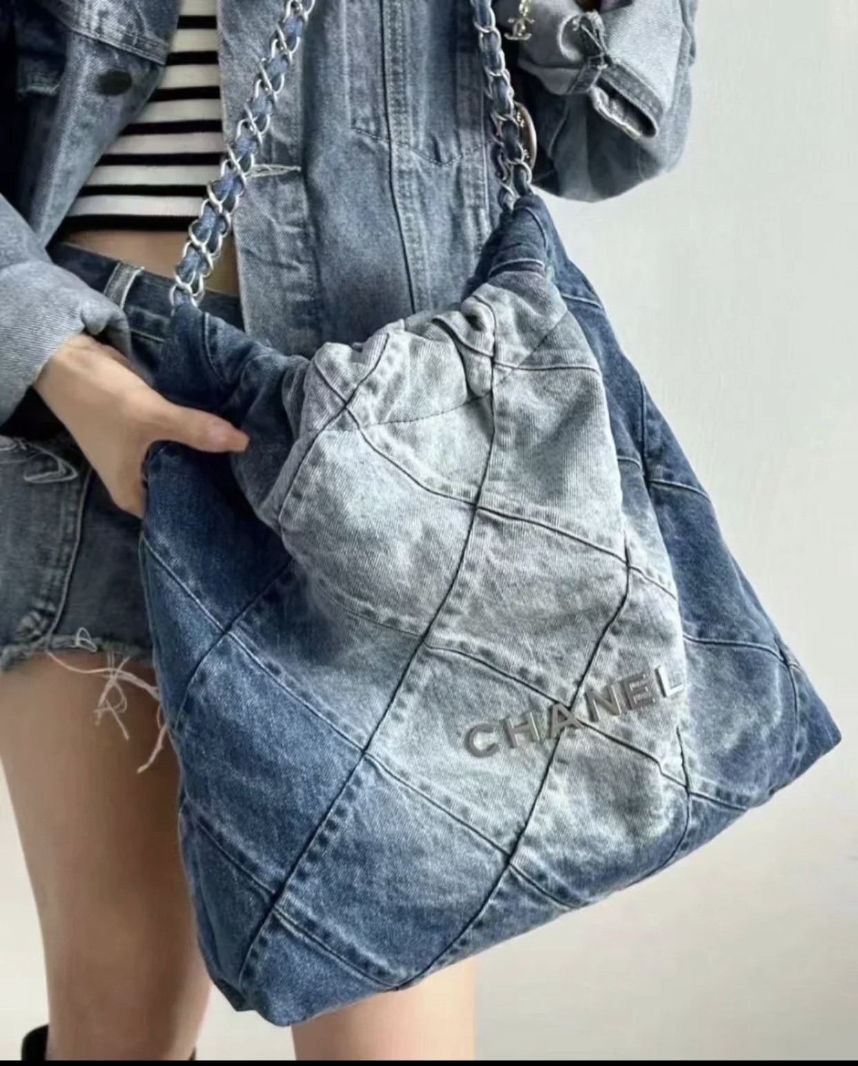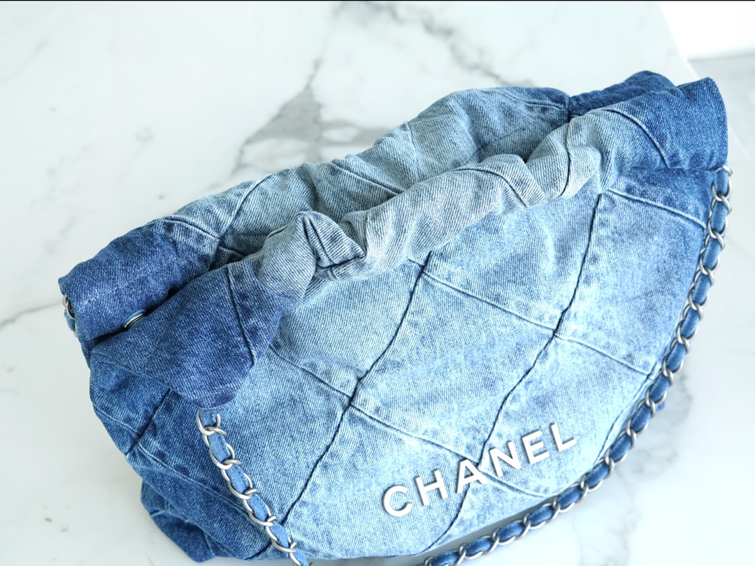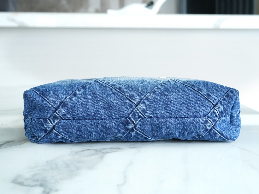??????????*春夏新款 22bag 牛仔蓝 小号 牛仔以随性休闲著称,换上银色五金配色,焕然一新,瞬间年轻感爆棚,冲刺着青春与活力的气息,有春夏季节的清爽感…将简约舒适融为一体,为你打包整个春日?? 小号尺寸:35*37*7cm