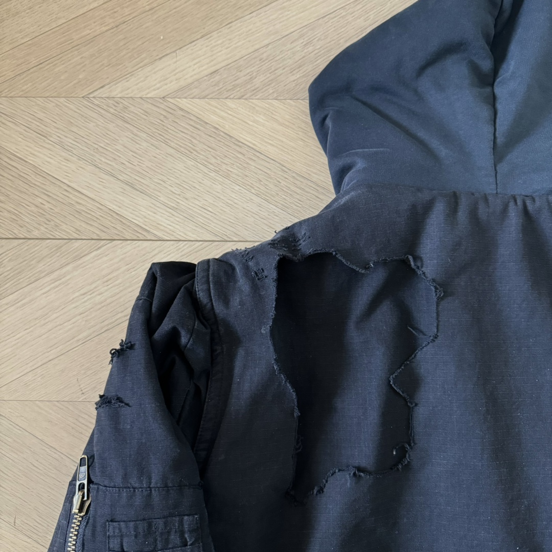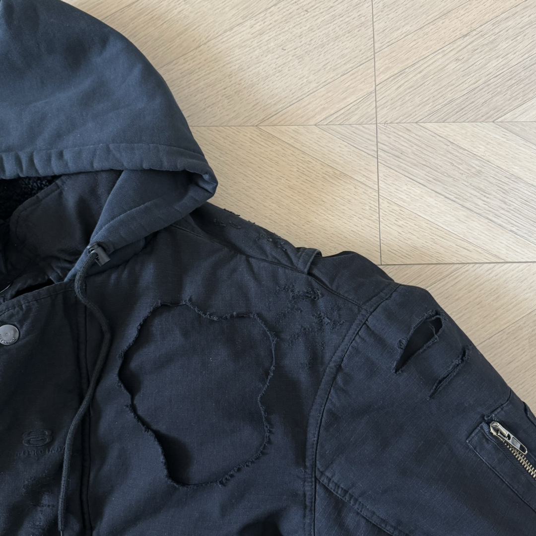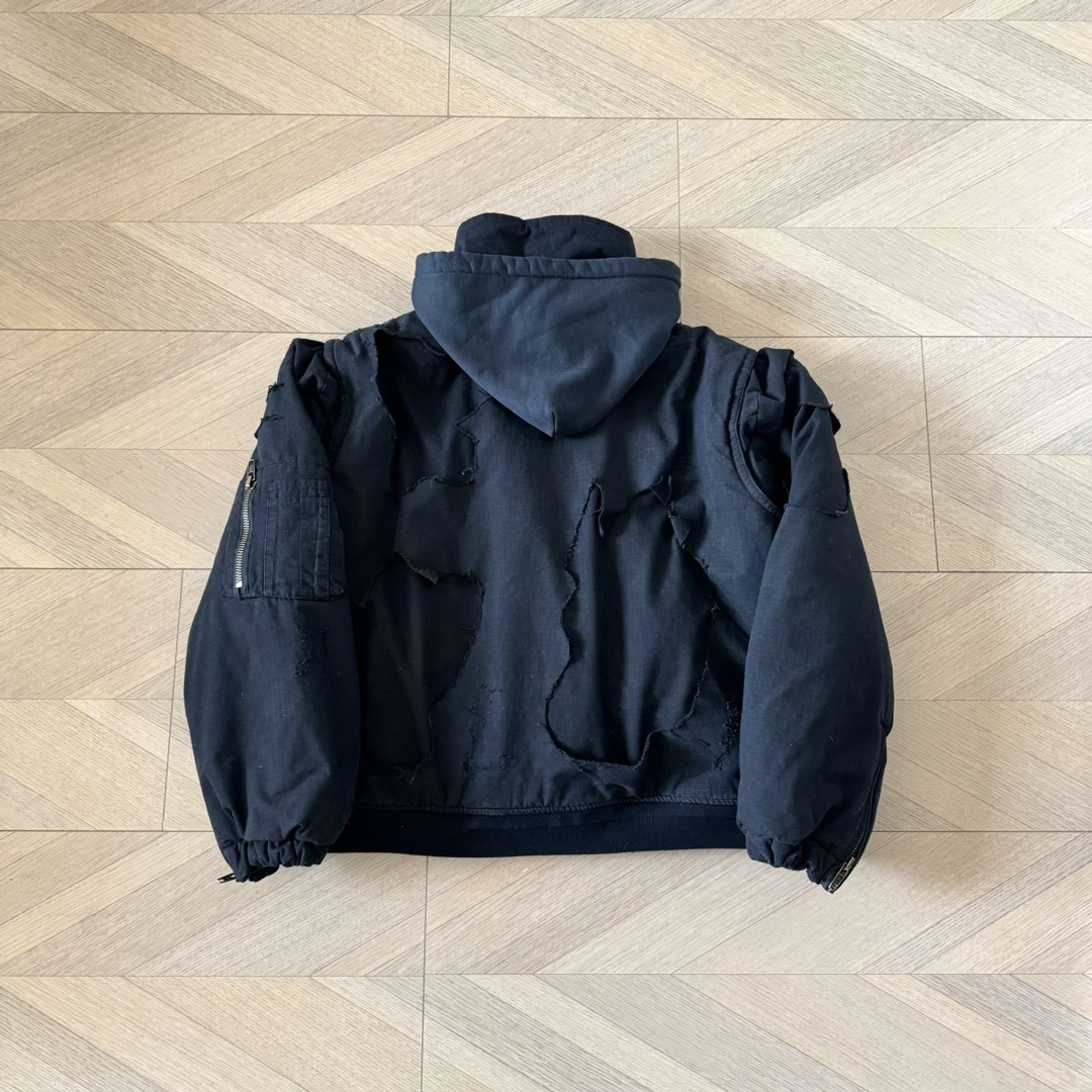B家 重工糜烂水洗大破坏棉服bomber夹克外套
