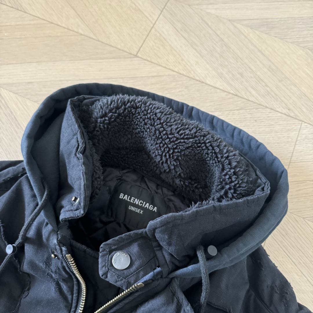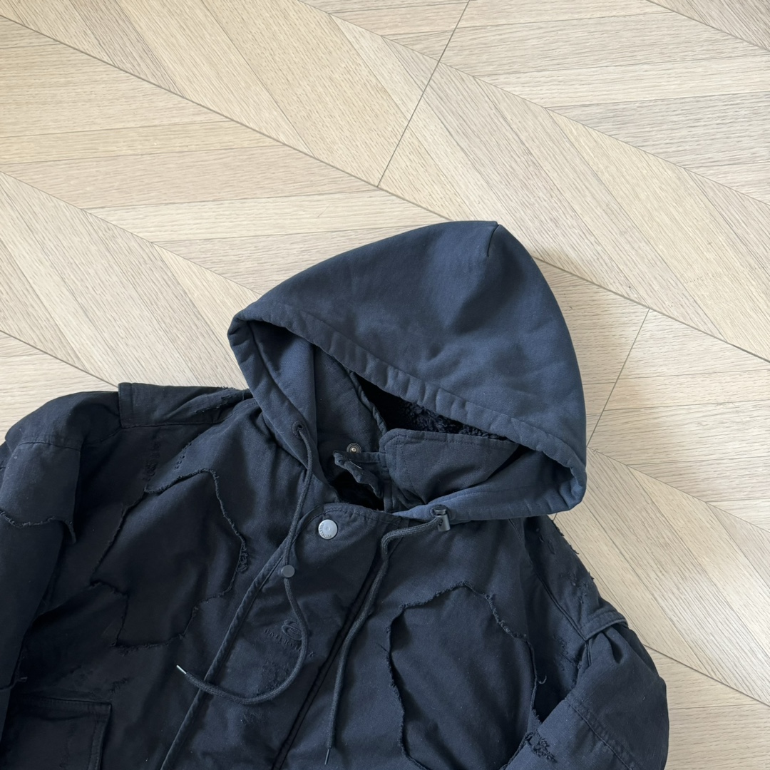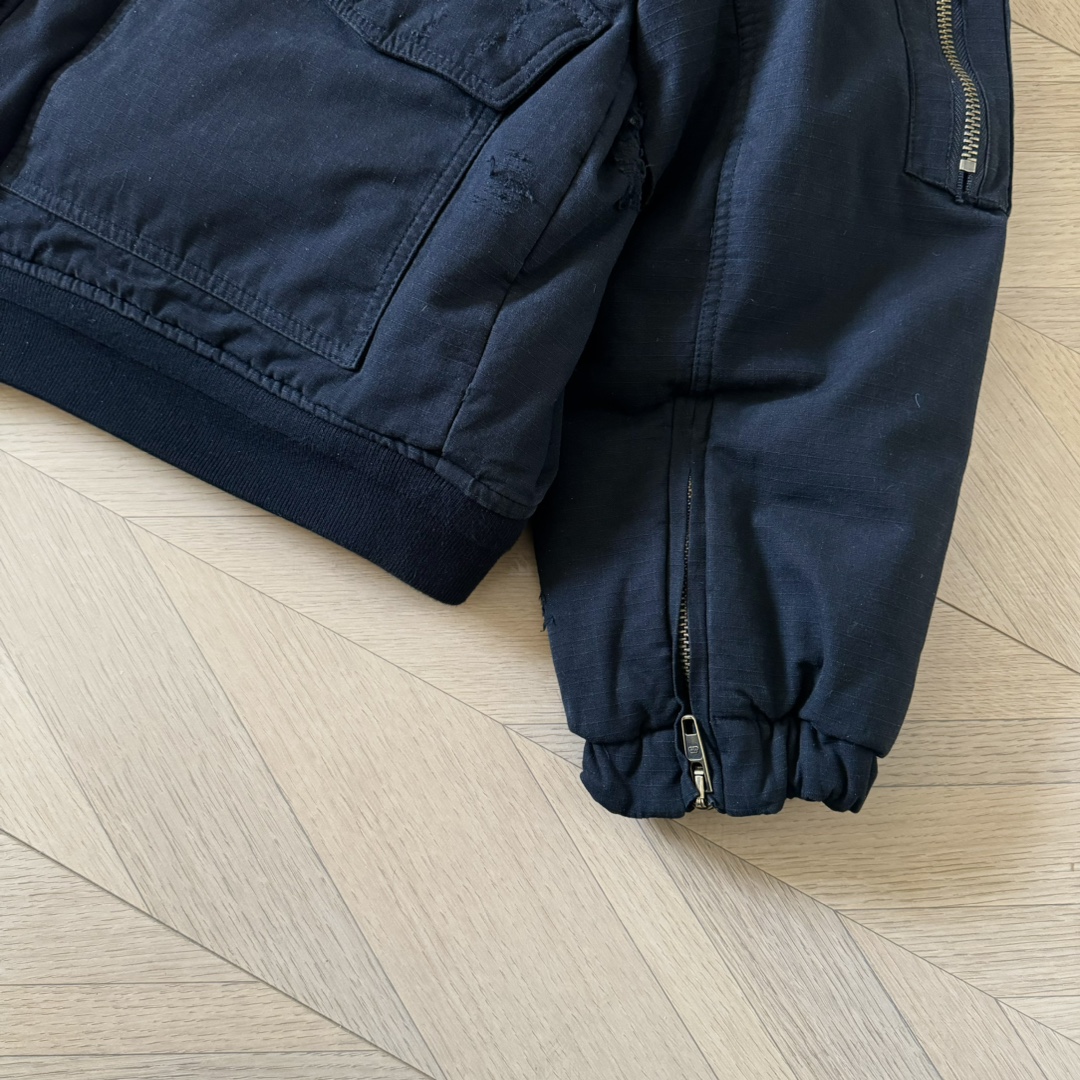 B家 重工糜烂水洗大破坏棉服bomber夹克外套