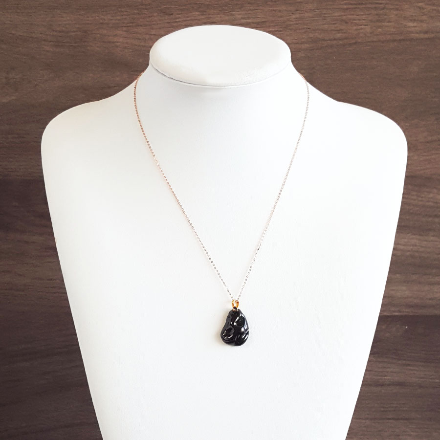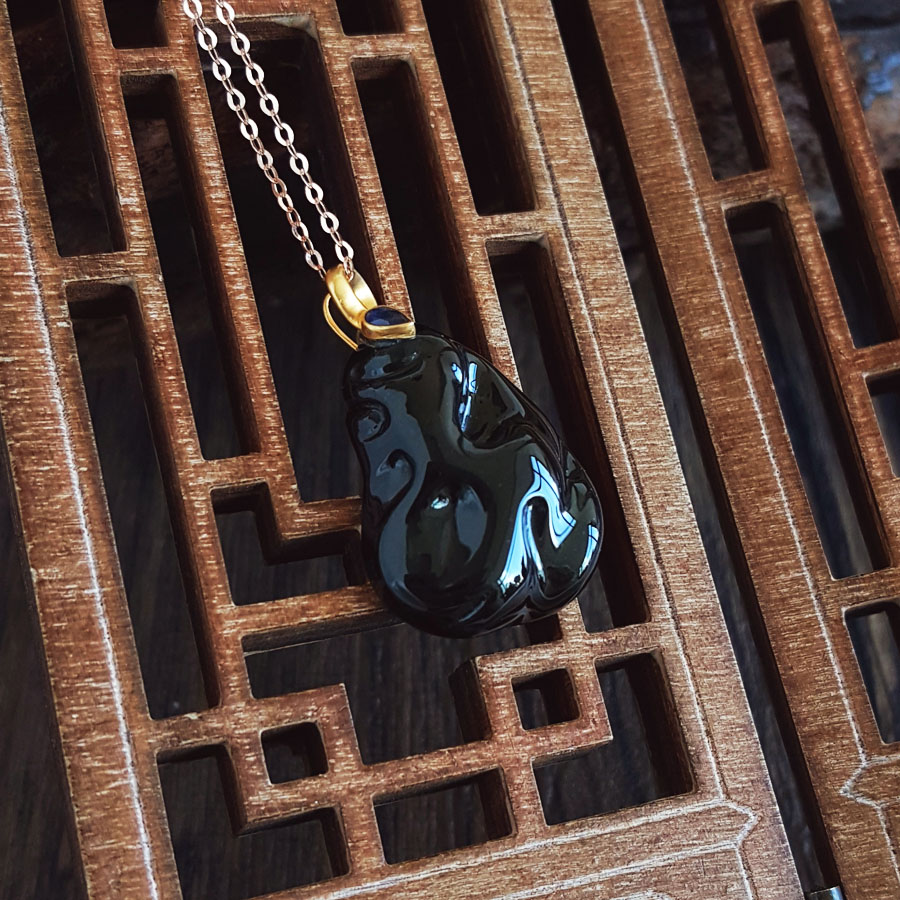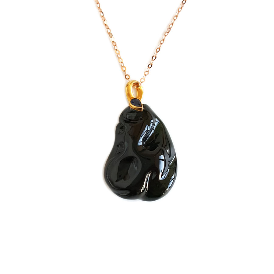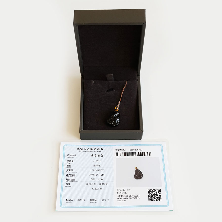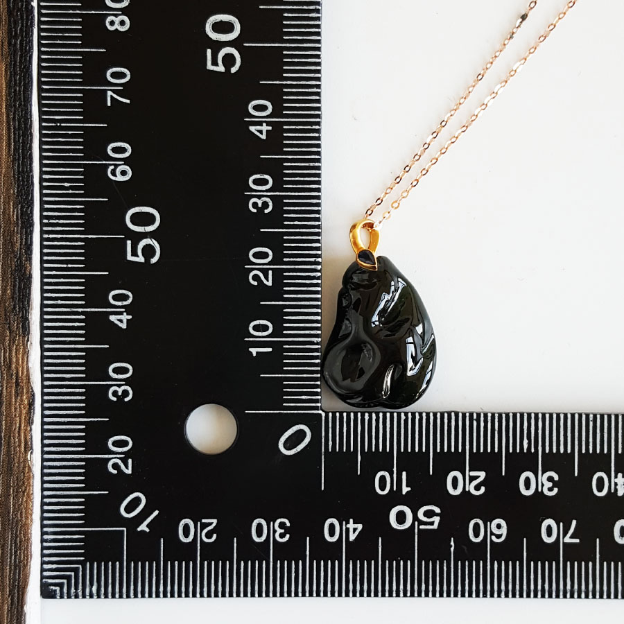名称 | AU750黄金镶天然细腻随形冰种墨翠吊坠项链 |