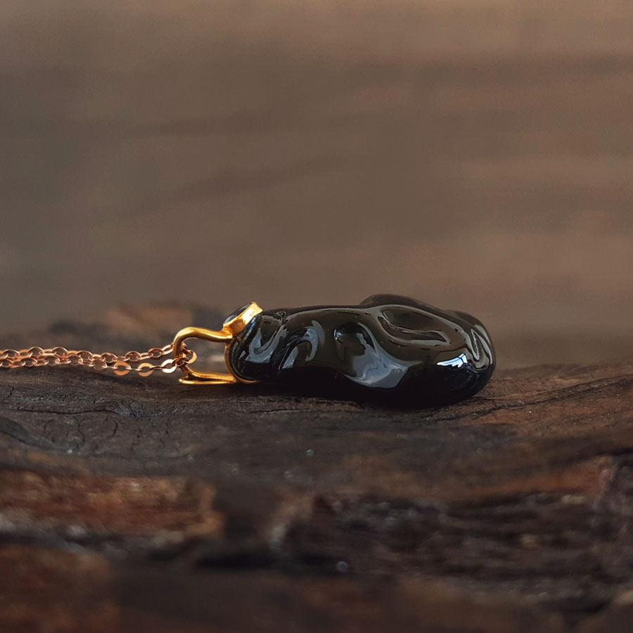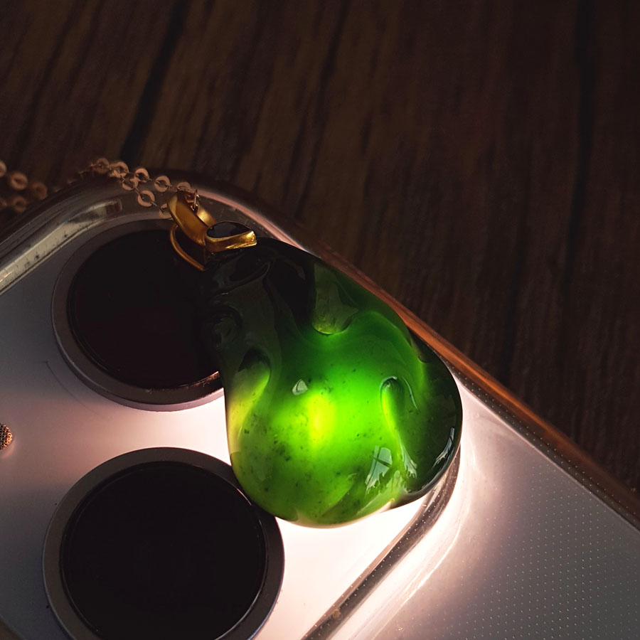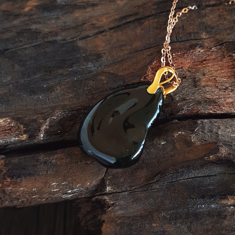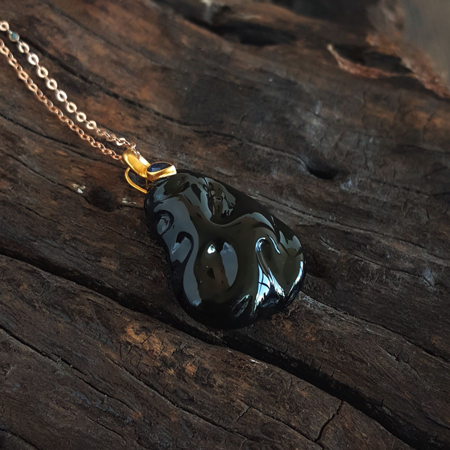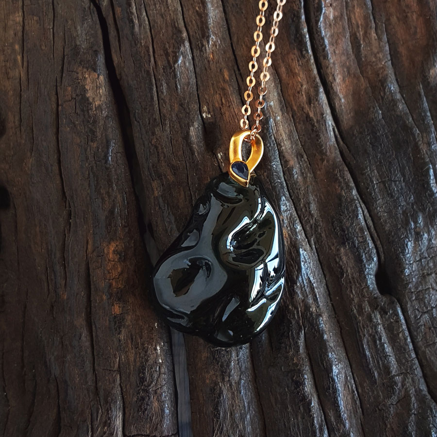 名称 | AU750黄金镶天然细腻随形冰种墨翠吊坠项链 |