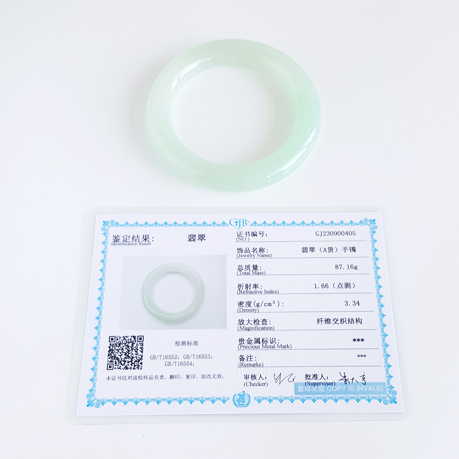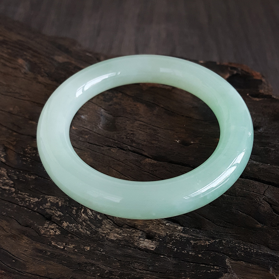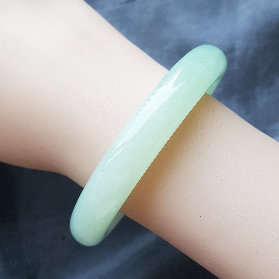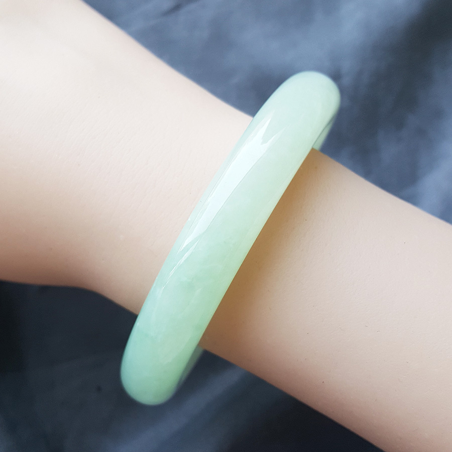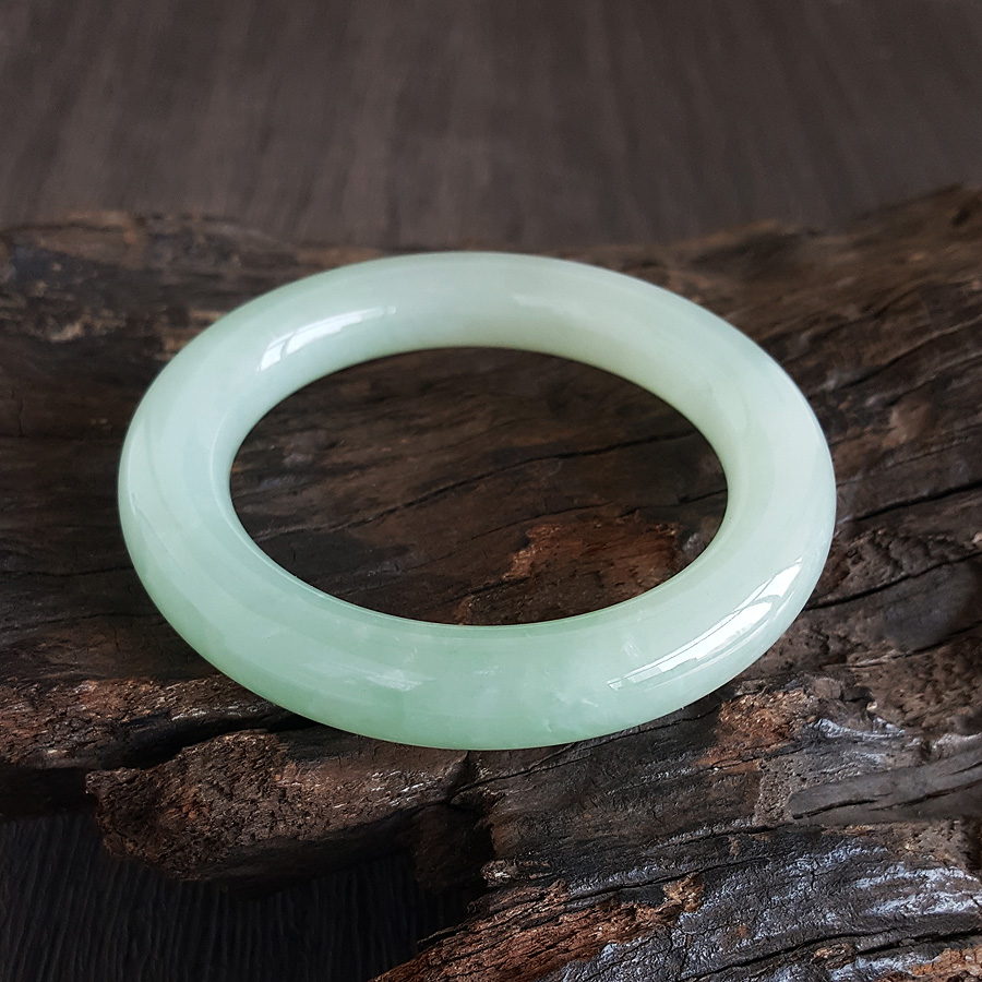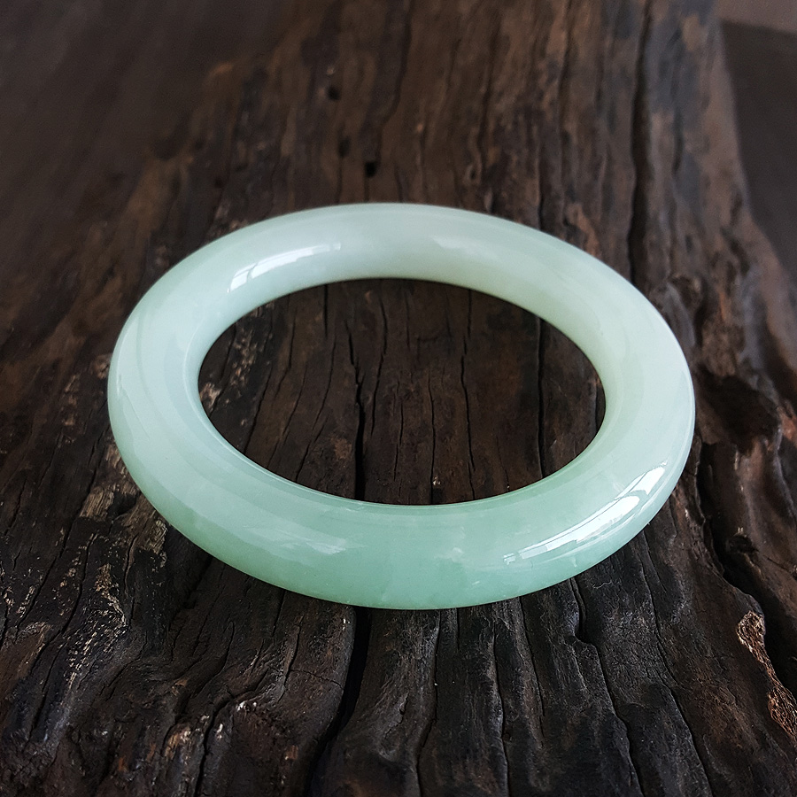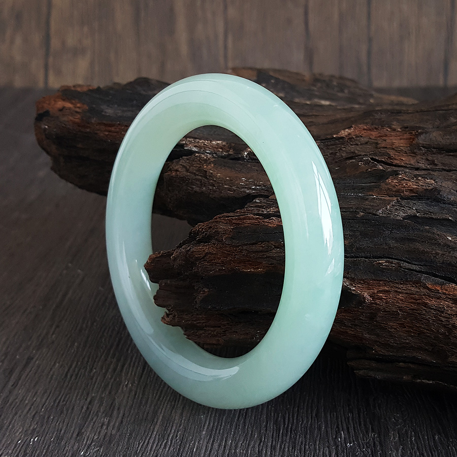 【天然正品】天然收藏级细腻无杂裂厚桩糯冰种晴水绿57.5号圆条手镯 150624XY49