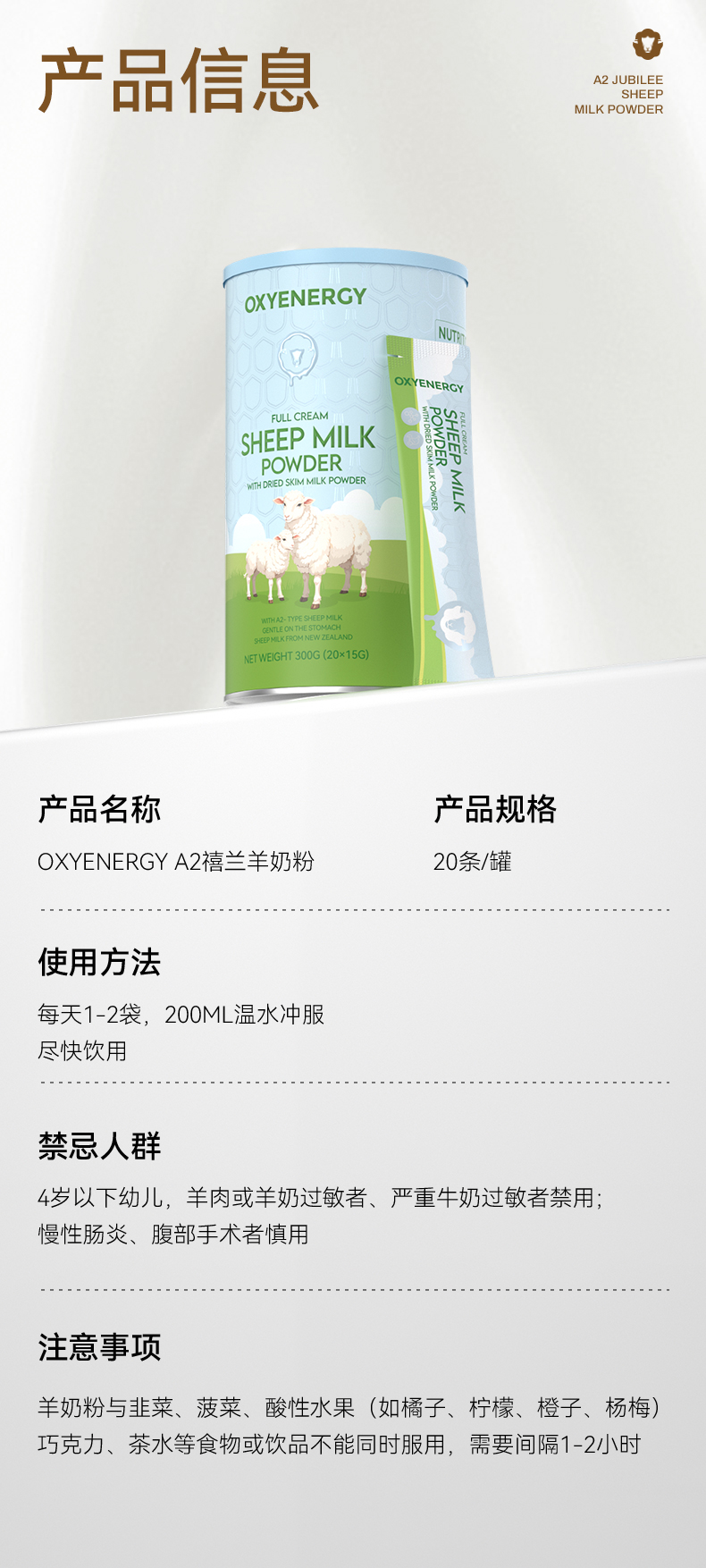 OXYENERGY/氧气能量A2禧兰绵羊奶20袋/罐全家营养