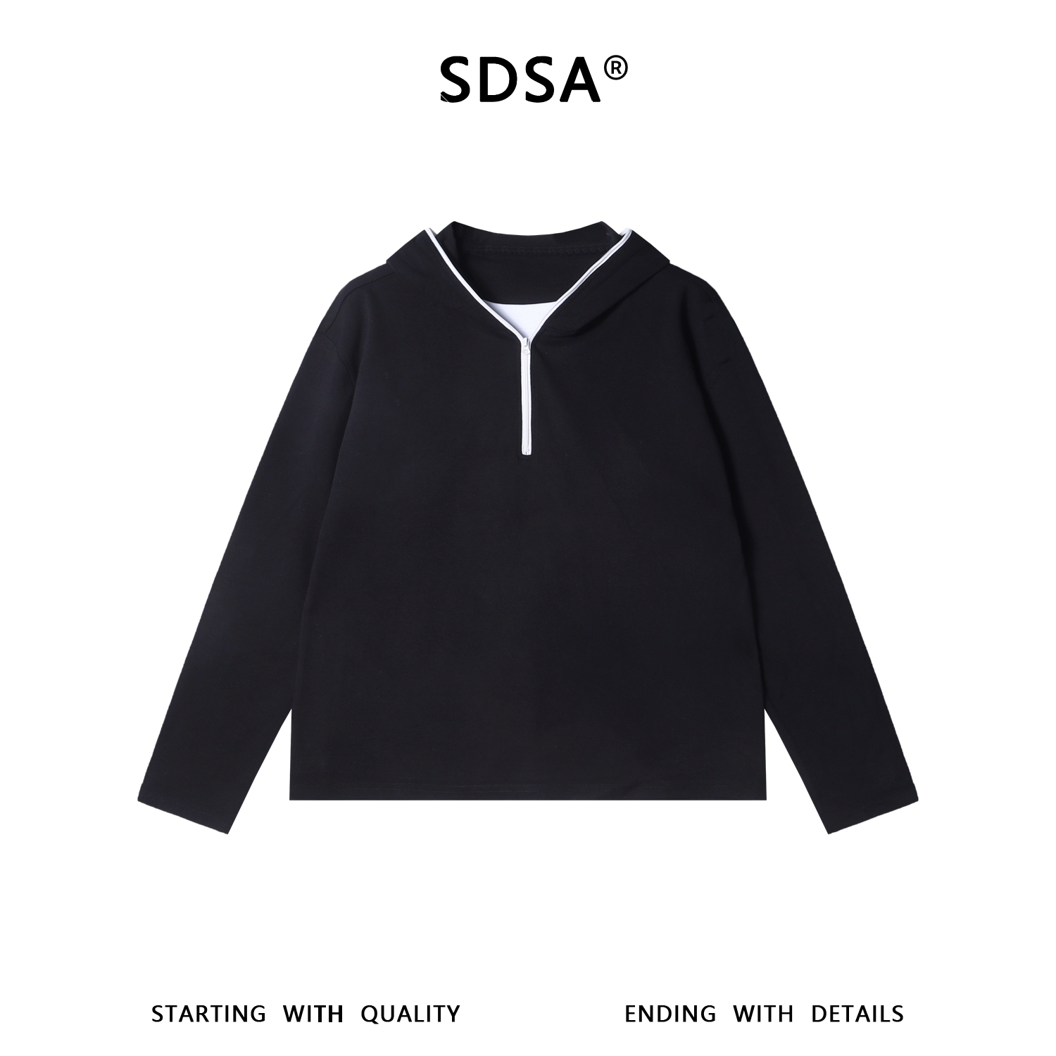 26005SDSA男士秋冬新款痞帅男装潮牌休闲撞色半拉链连帽假两件T恤百搭