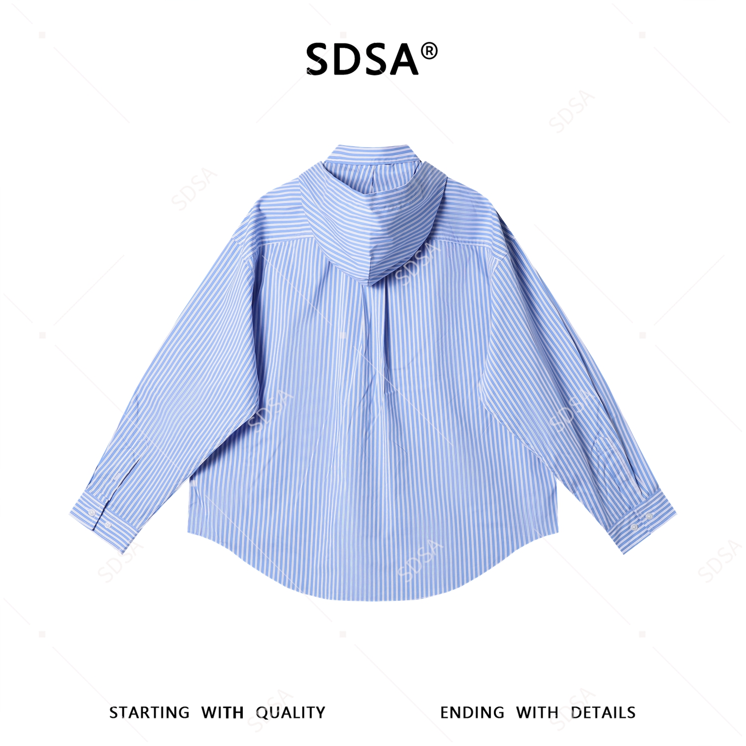 SDSA男装2026新款高贵轻奢小众设计感竖纹翻领连帽长袖衬衫百搭潮
