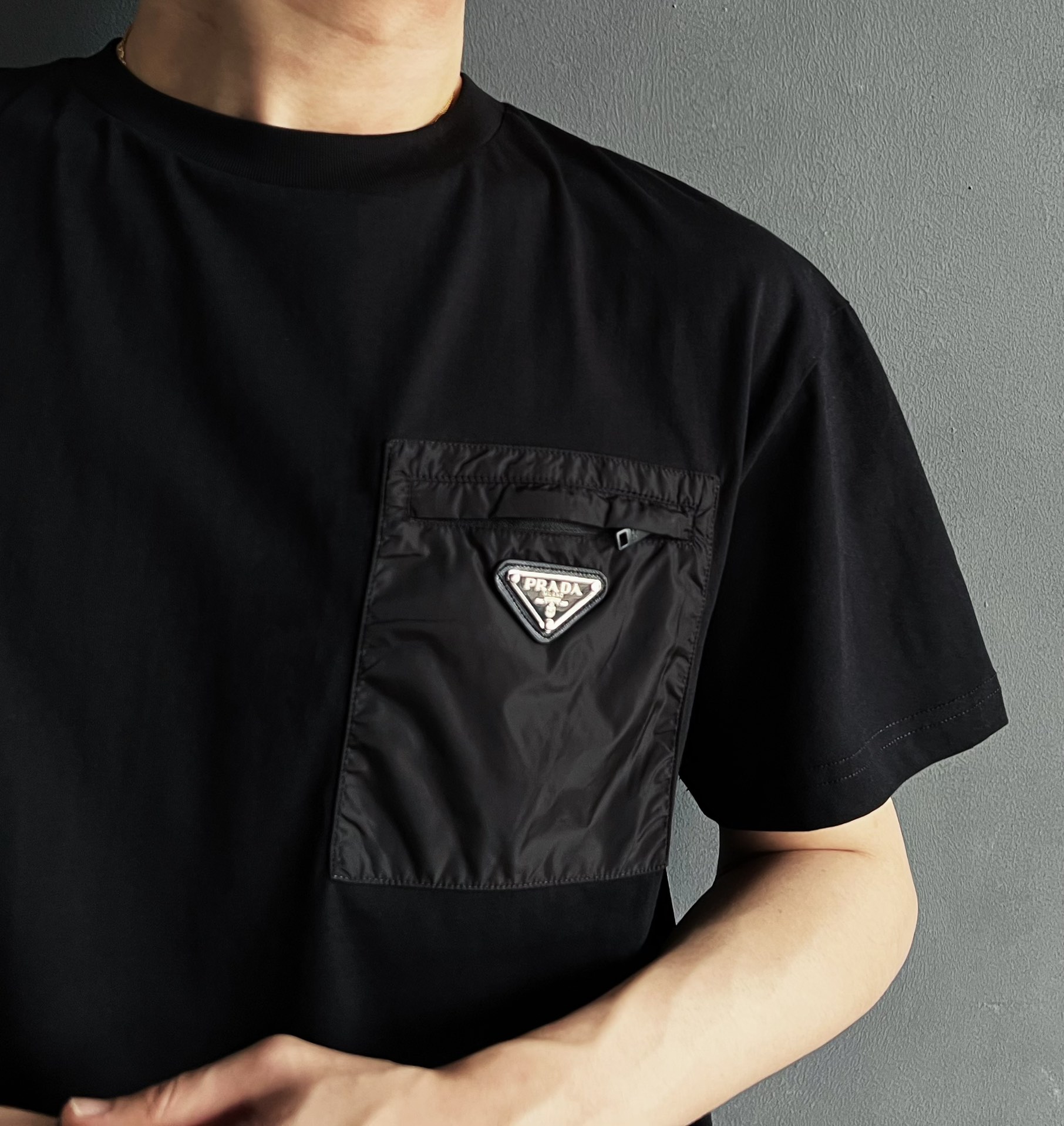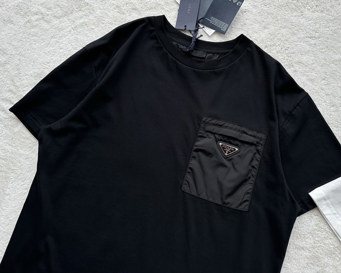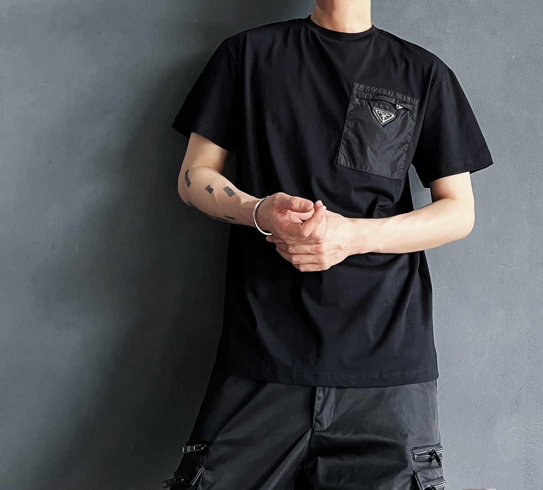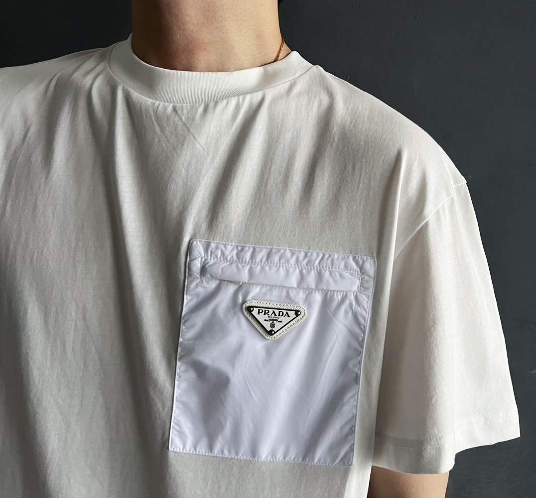 P家 再生尼龙拉链口袋双纱平纹短袖T恤(JN)