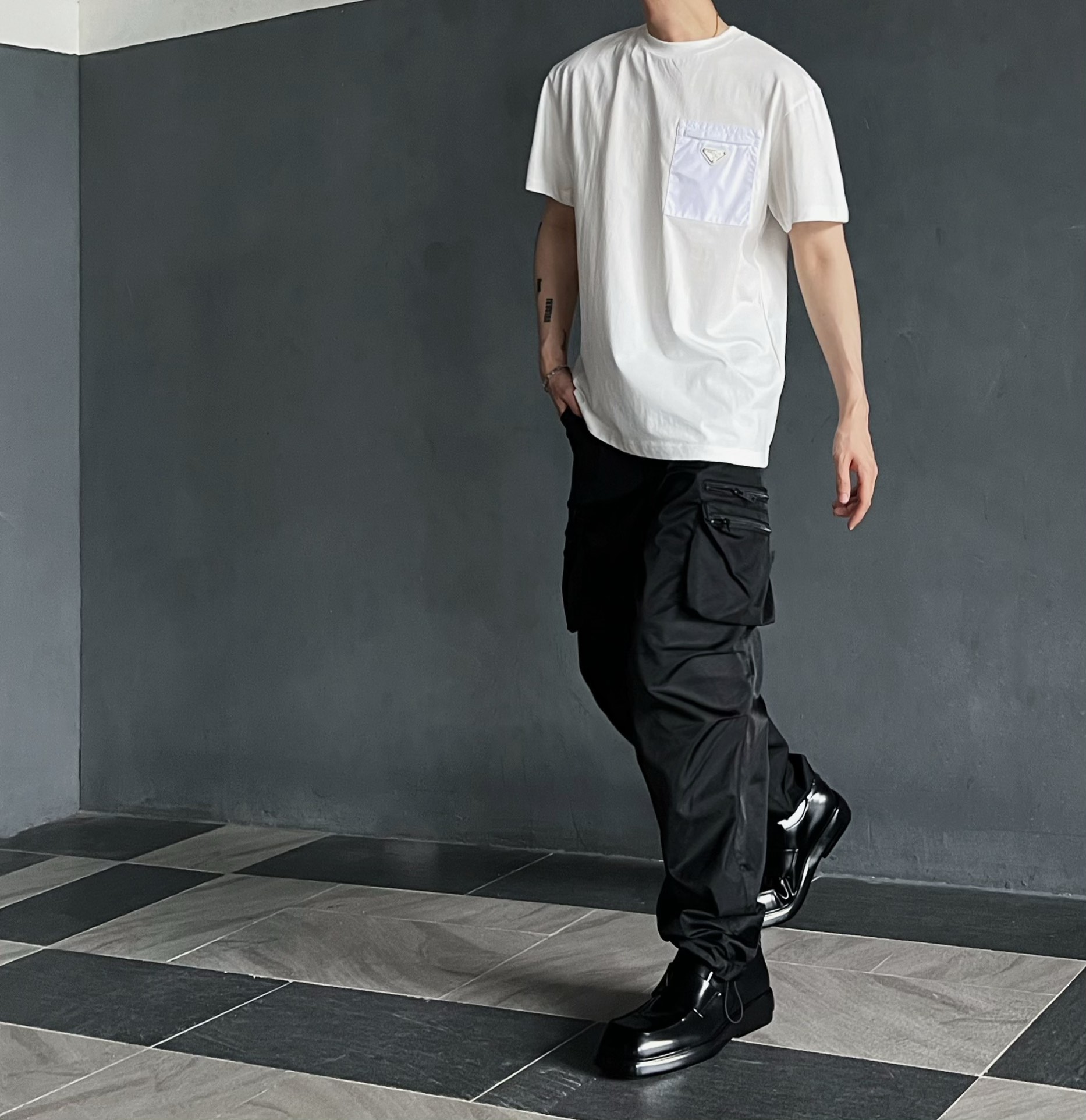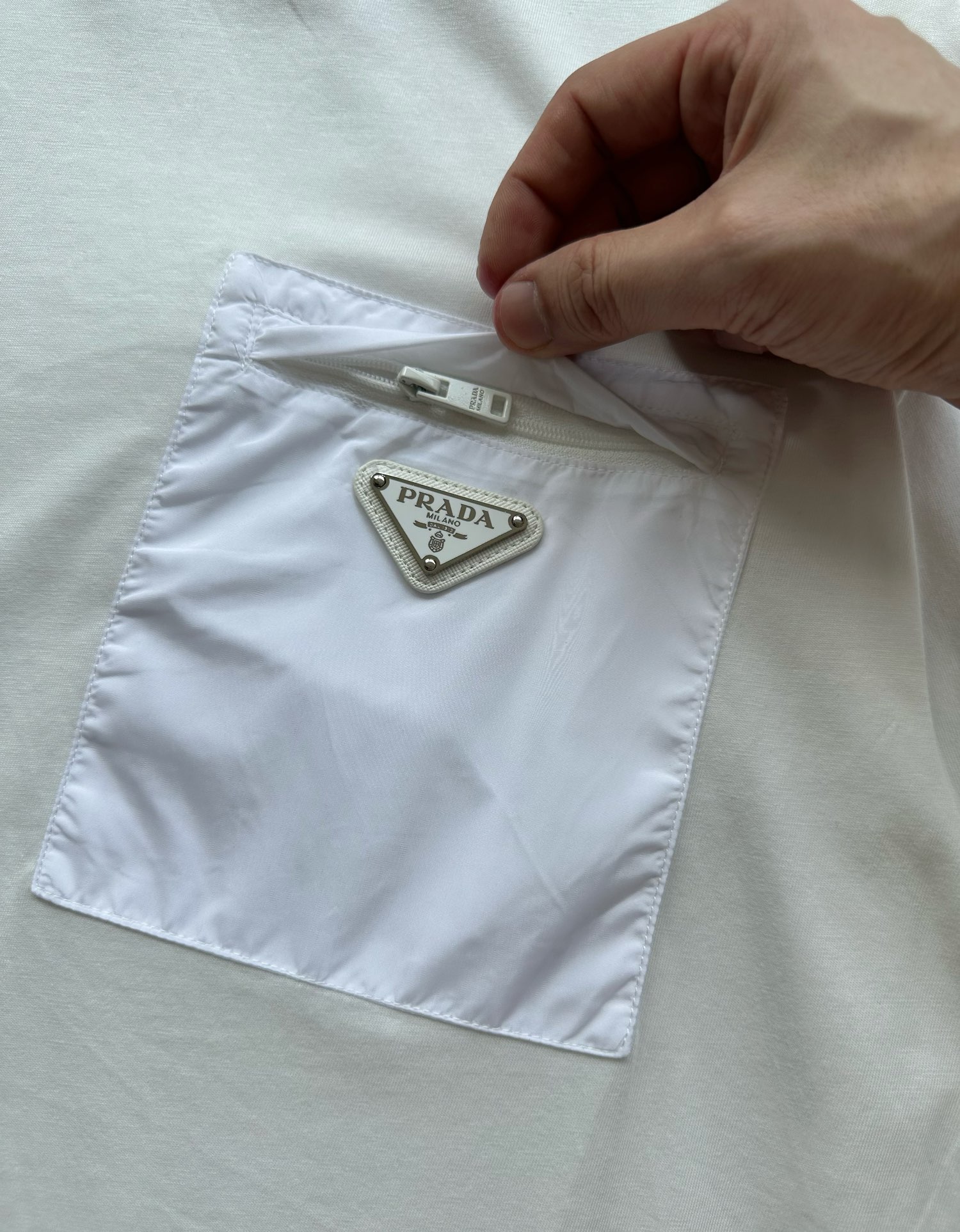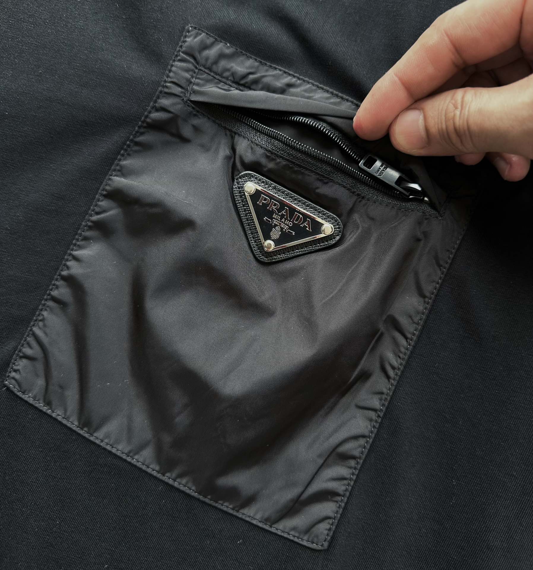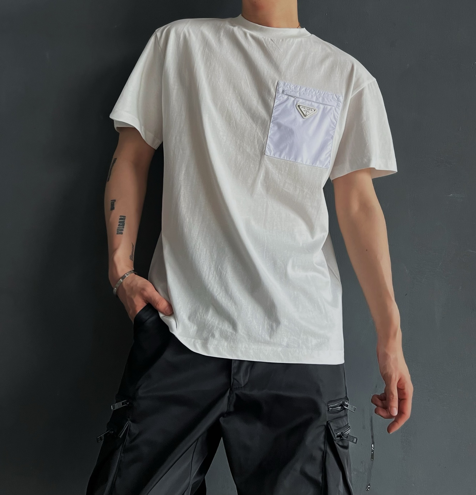 P家 再生尼龙拉链口袋双纱平纹短袖T恤(JN)