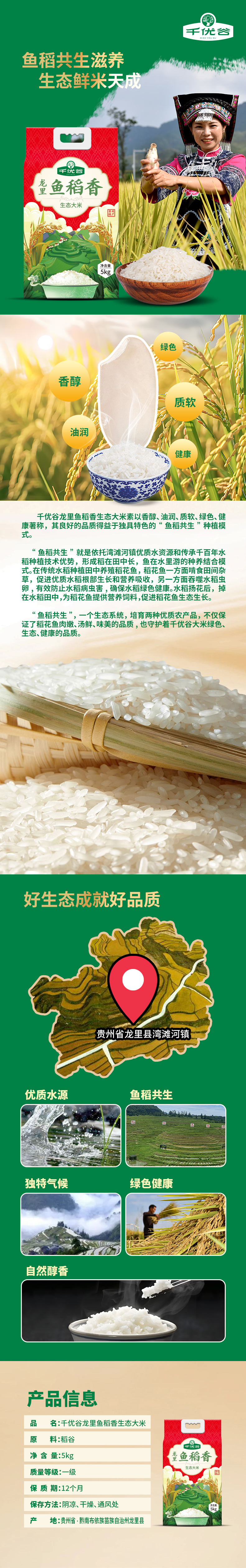 贵州黔南龙里县千优谷龙里鱼稻香生态大米 5KG/袋