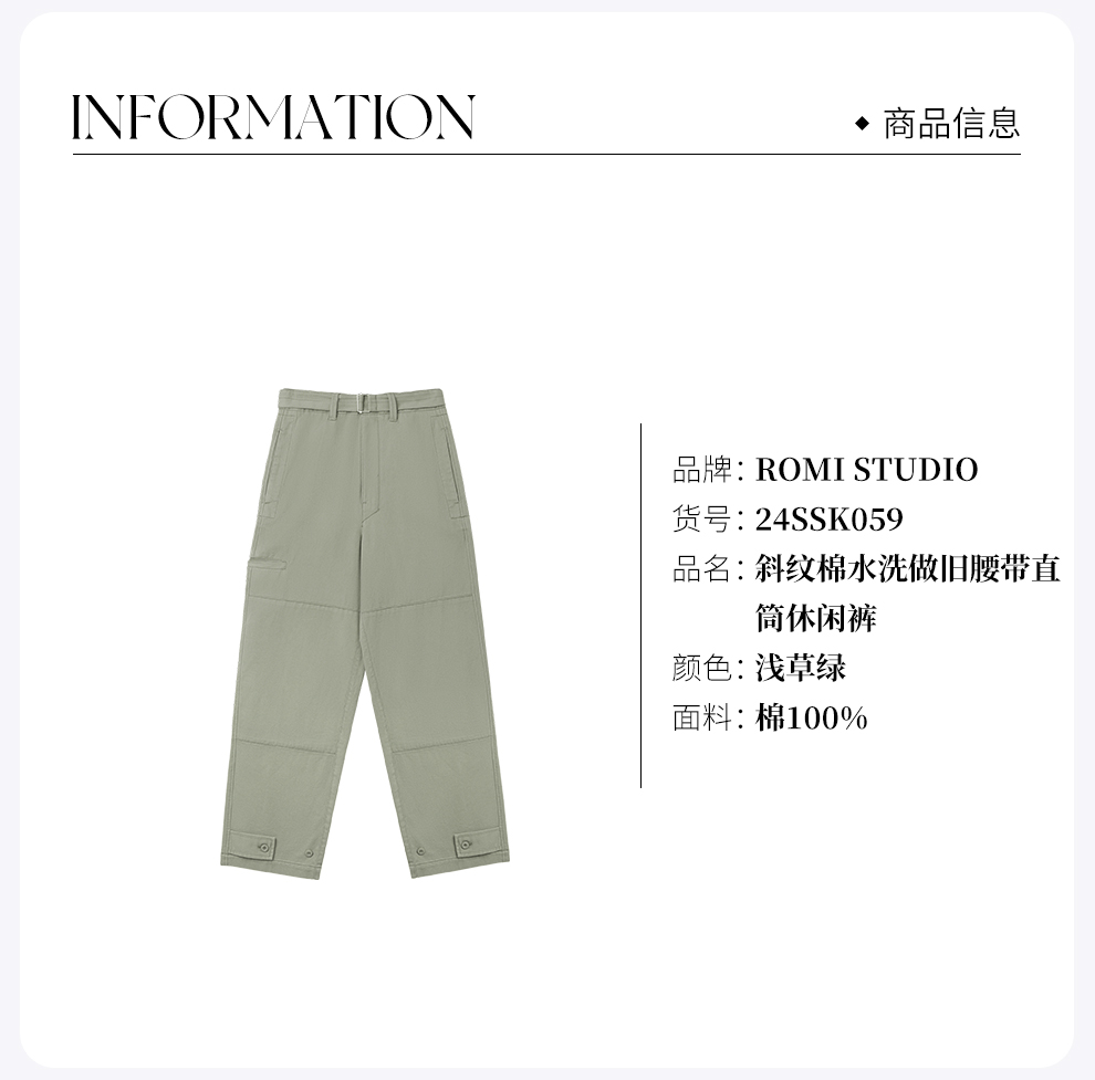 ROMI STUDIO”*复古“100斜纹棉水洗做旧腰带直筒休闲裤24SSK059