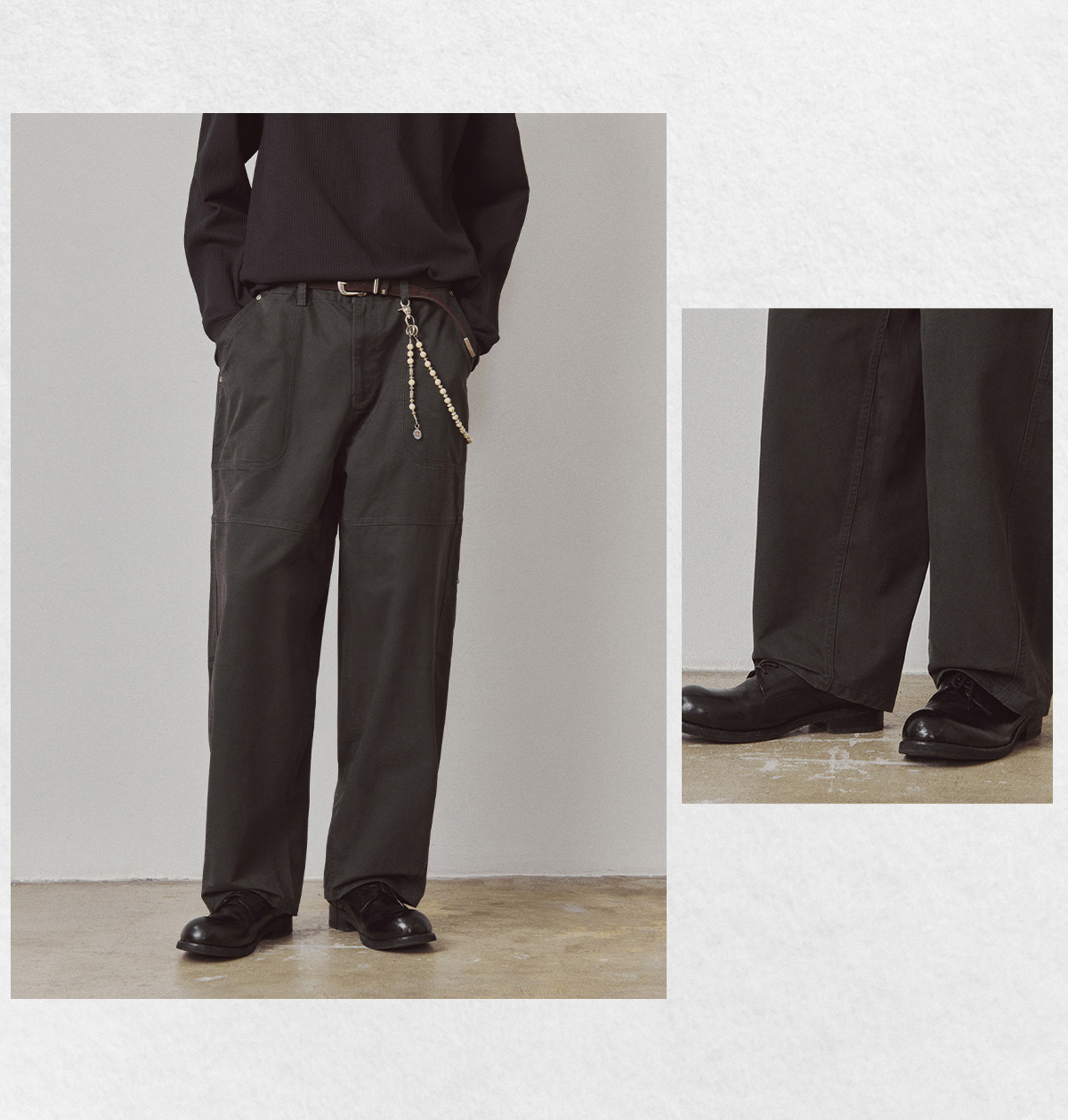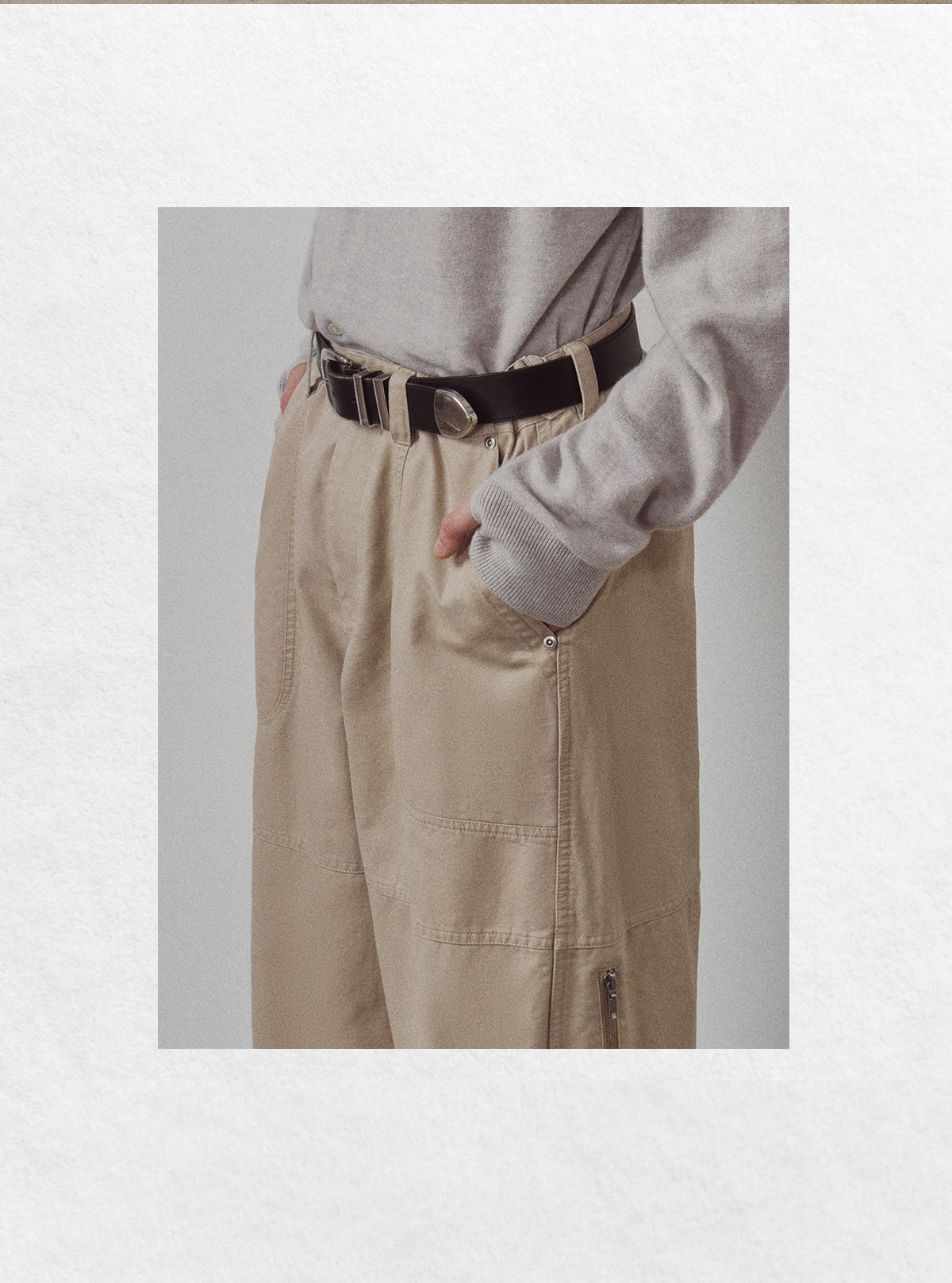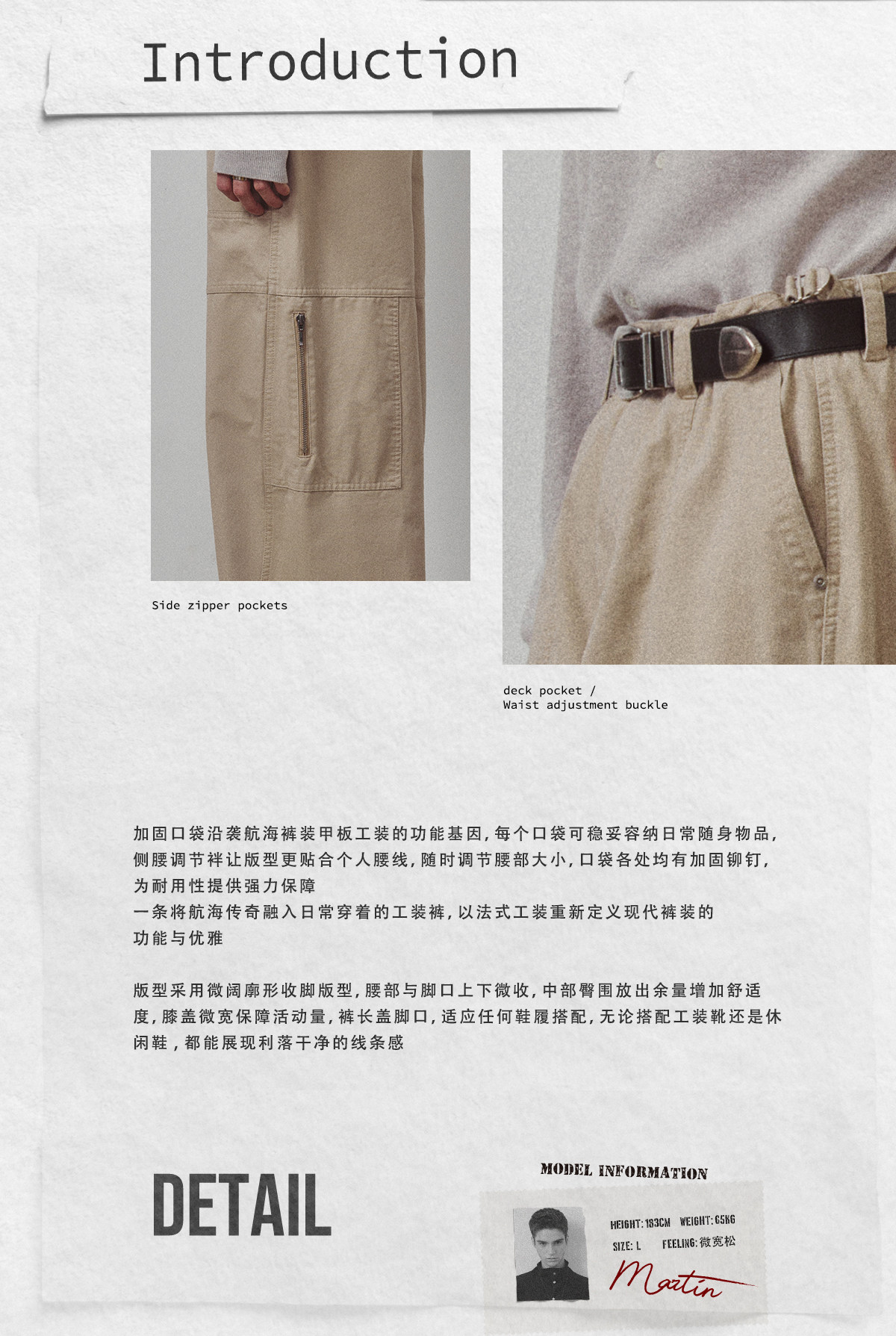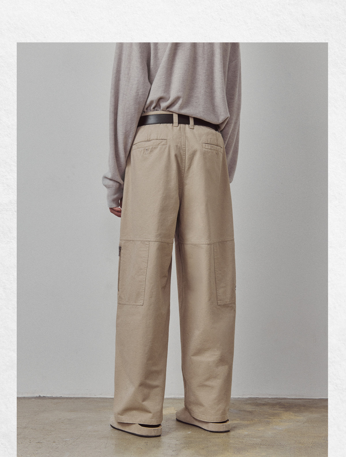 714street高端线BEHALF 酵素水洗全棉 法工甲板袋 侧拉链直筒长裤