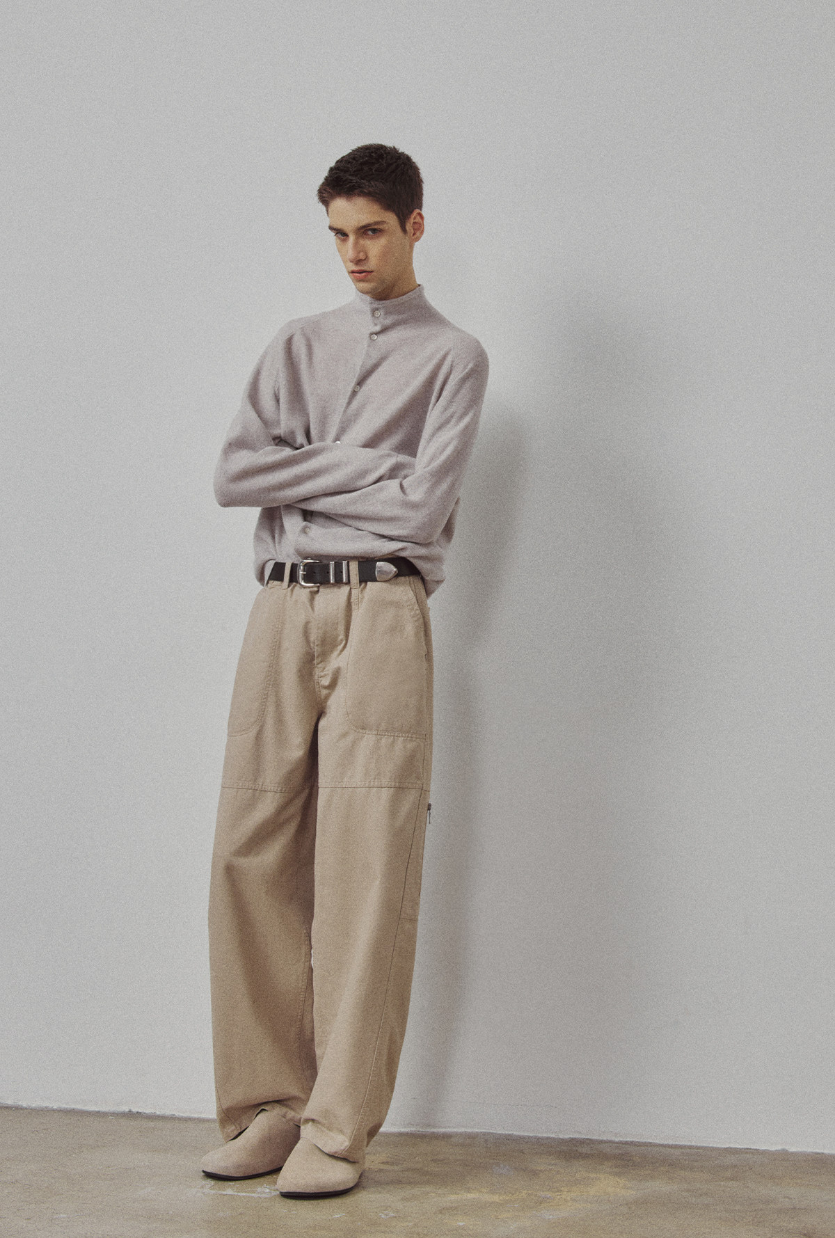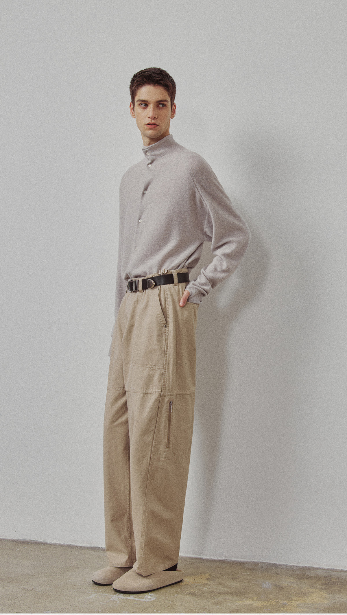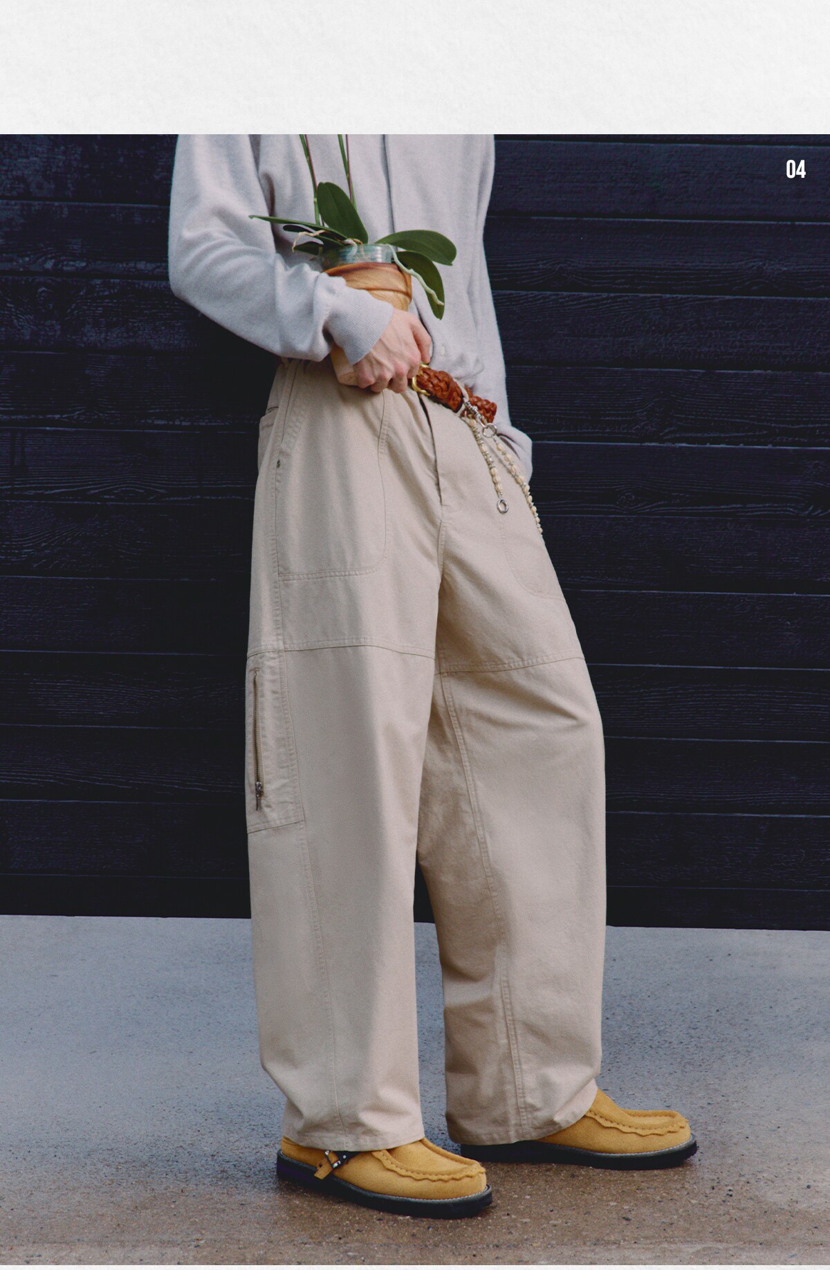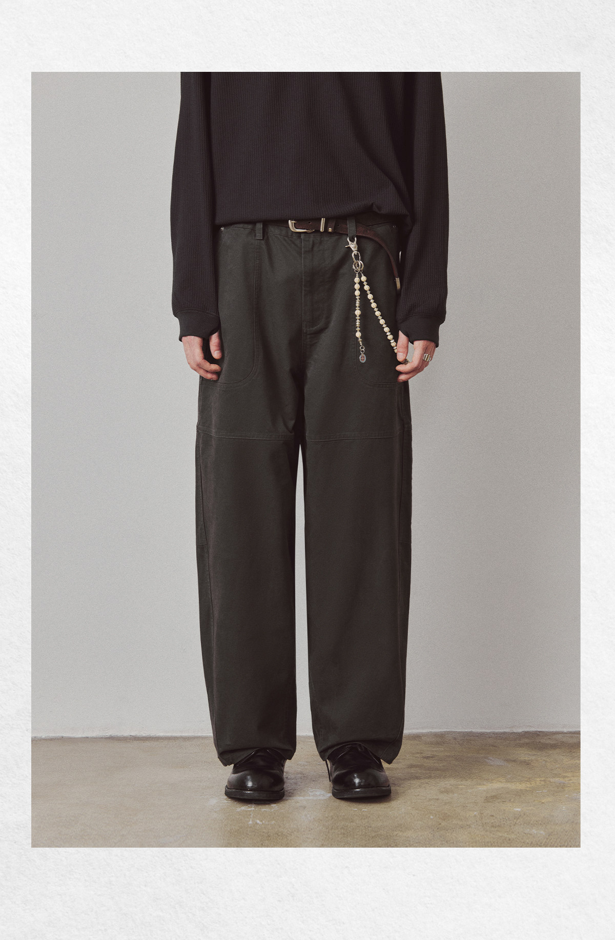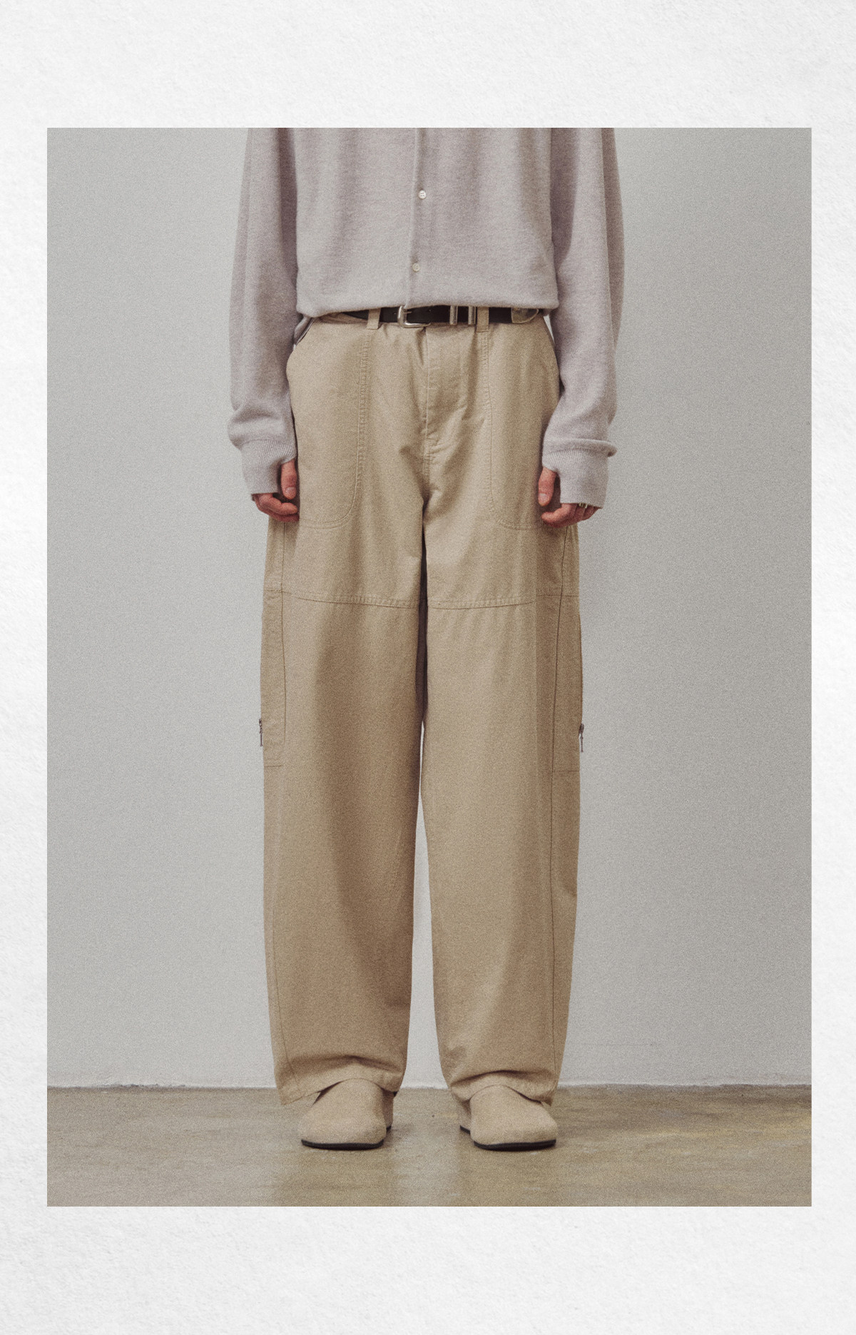 714street高端线BEHALF 酵素水洗全棉 法工甲板袋 侧拉链直筒长裤