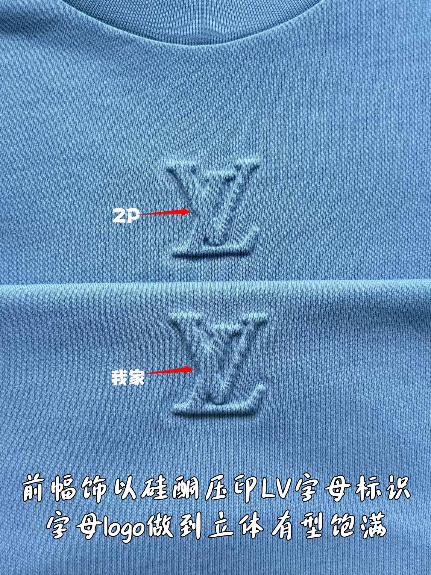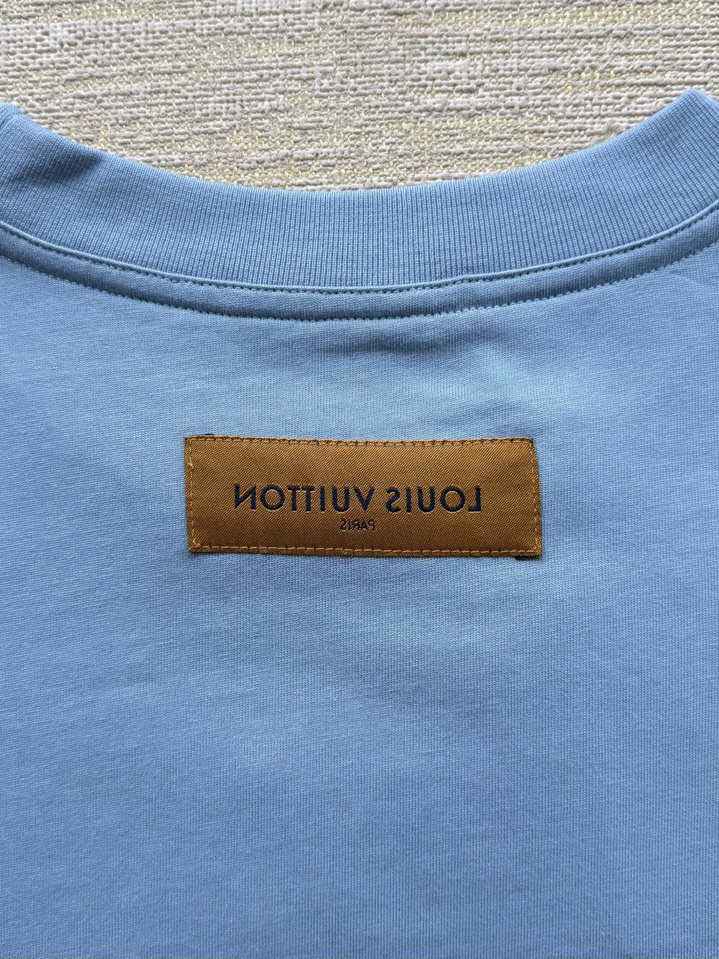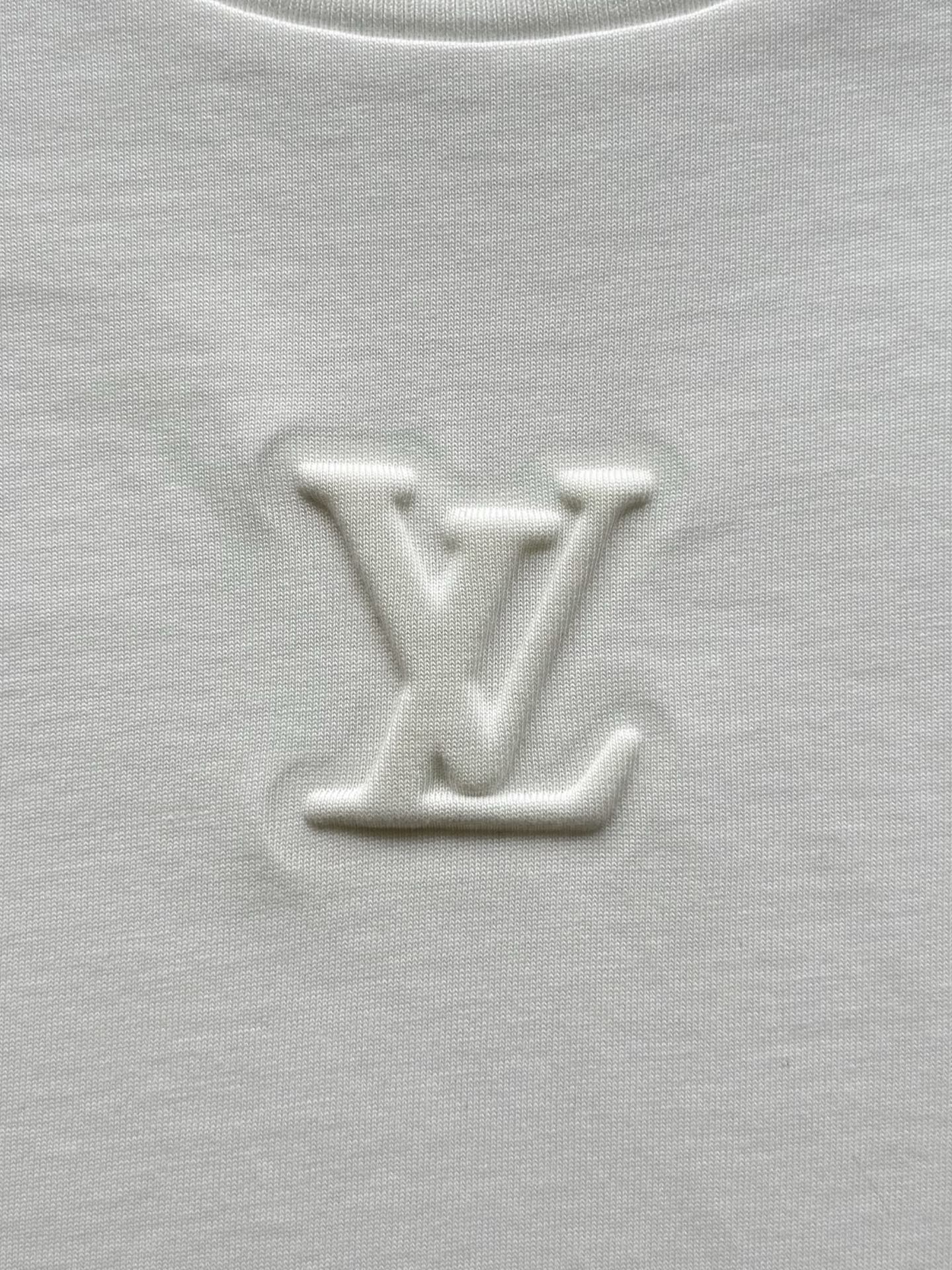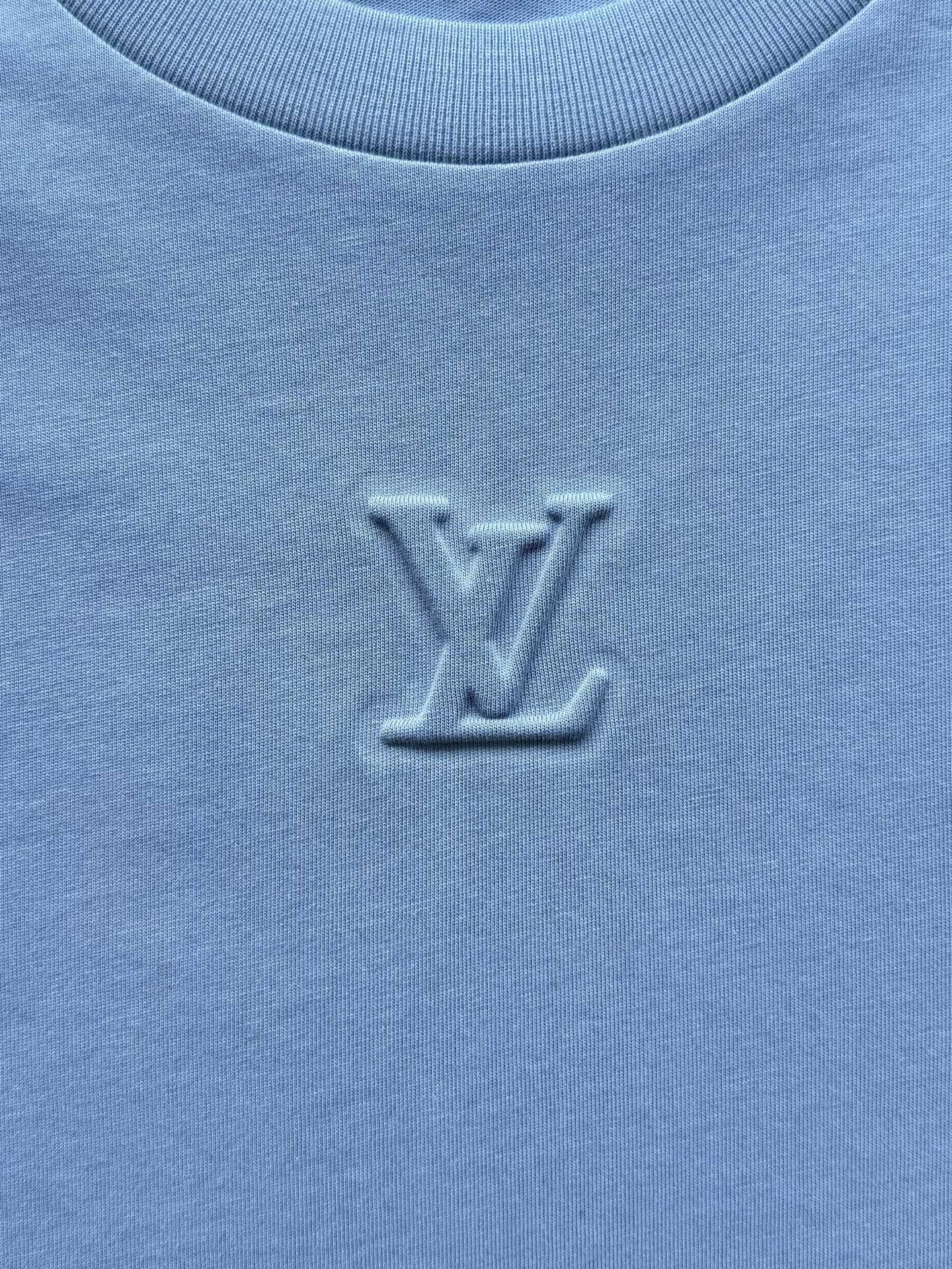 Louis Vuitton25ss压纹字母logo短袖T恤‼️整件衣服5450购买ZP拆解打造,采用定制蓝色纯棉面料,做到100%全棉进口纱线,意大利制造,前幅饰以LV压纹字母logo,做到立体饱满,定织标志性罗纹领口,超紧密度局部编织,真正做到1:1copy 码数:XS S M L