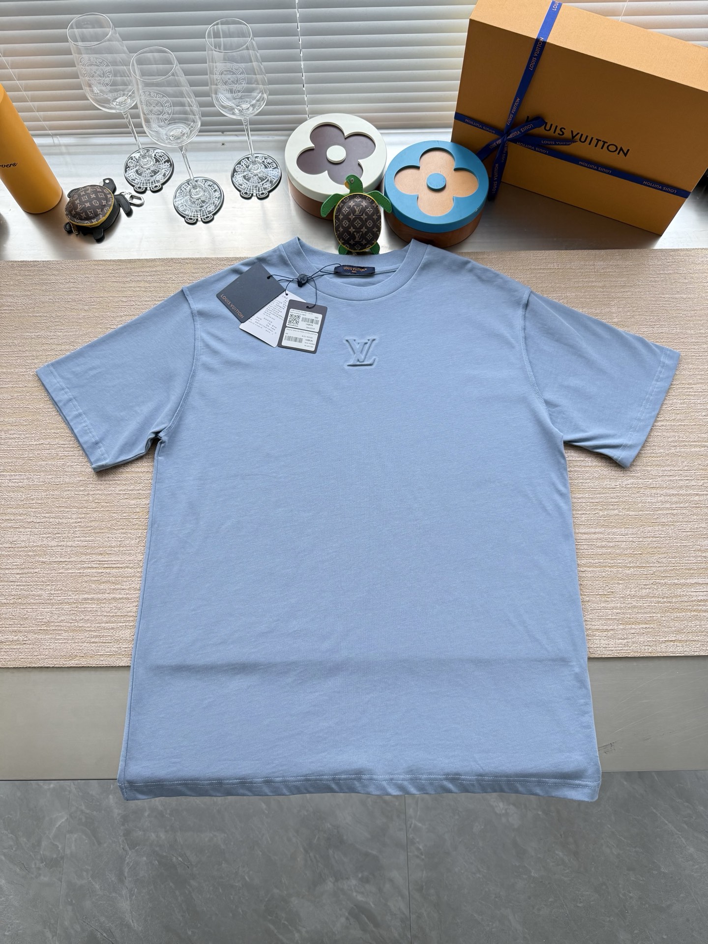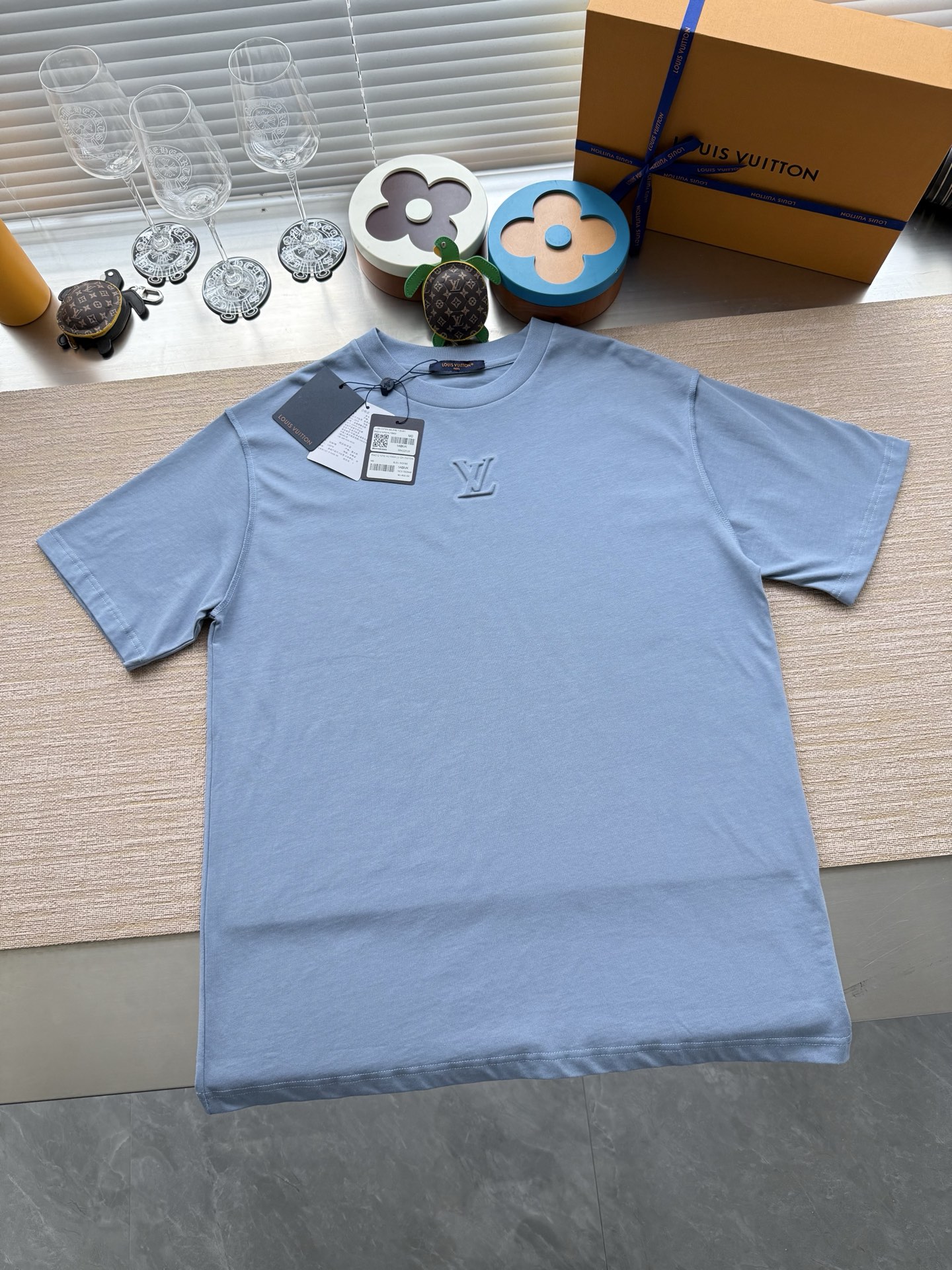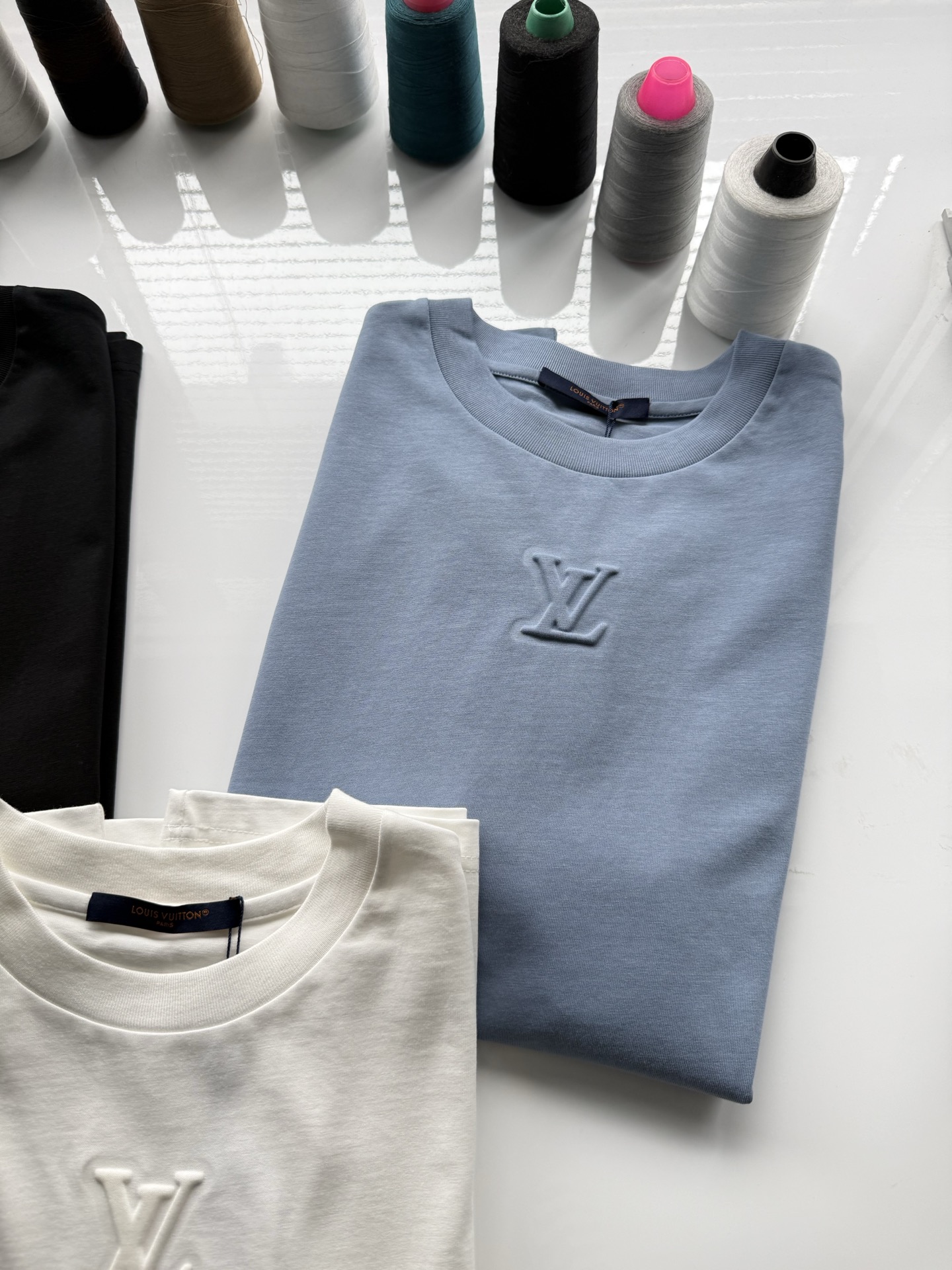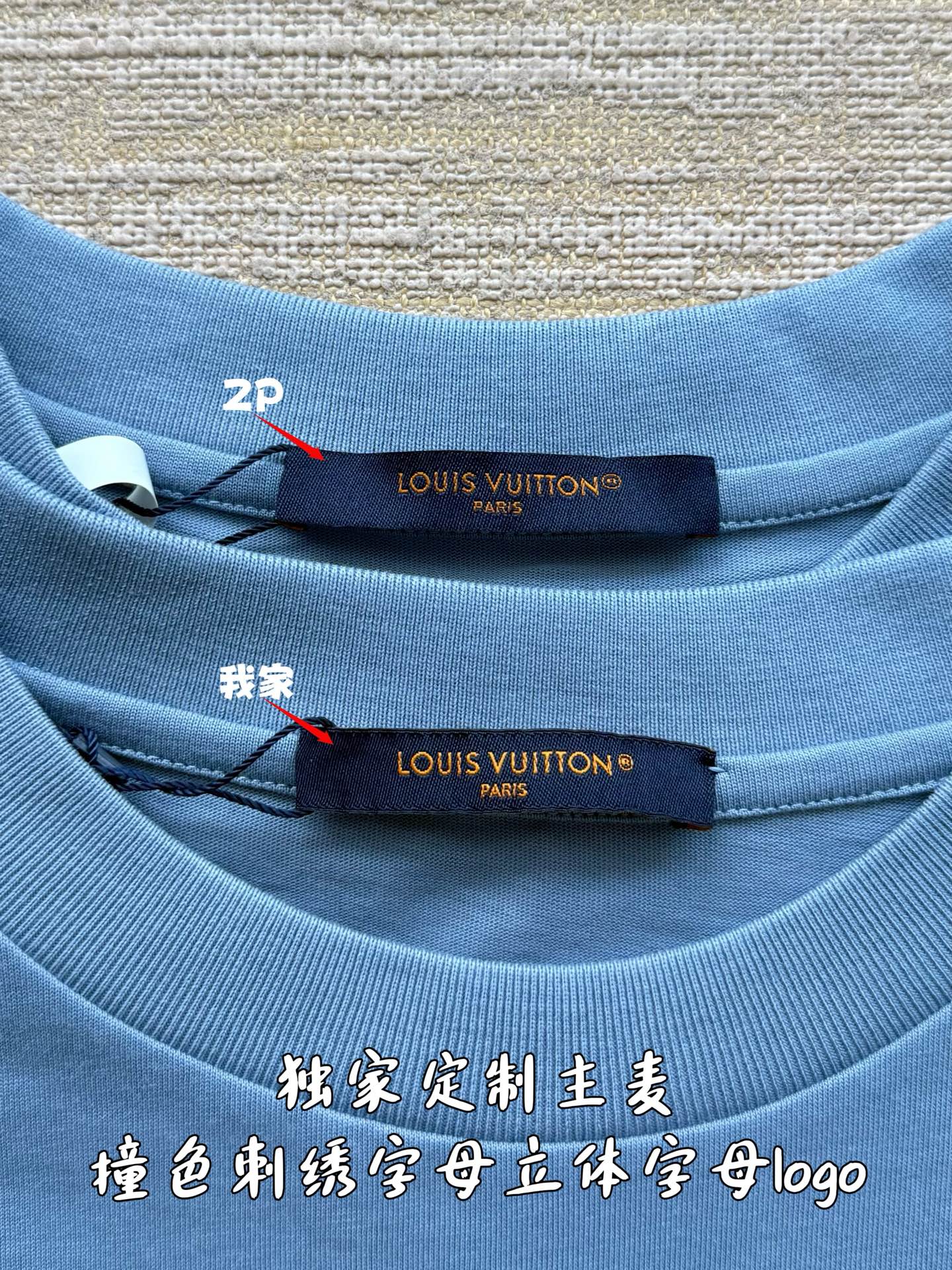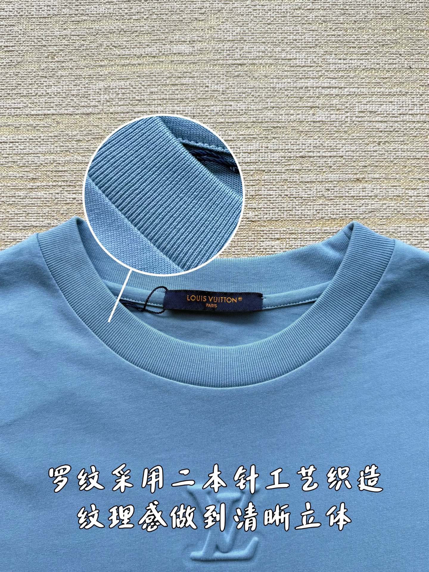 Louis Vuitton25ss压纹字母logo短袖T恤‼️整件衣服5450购买ZP拆解打造,采用定制蓝色纯棉面料,做到100%全棉进口纱线,意大利制造,前幅饰以LV压纹字母logo,做到立体饱满,定织标志性罗纹领口,超紧密度局部编织,真正做到1:1copy 码数:XS S M L