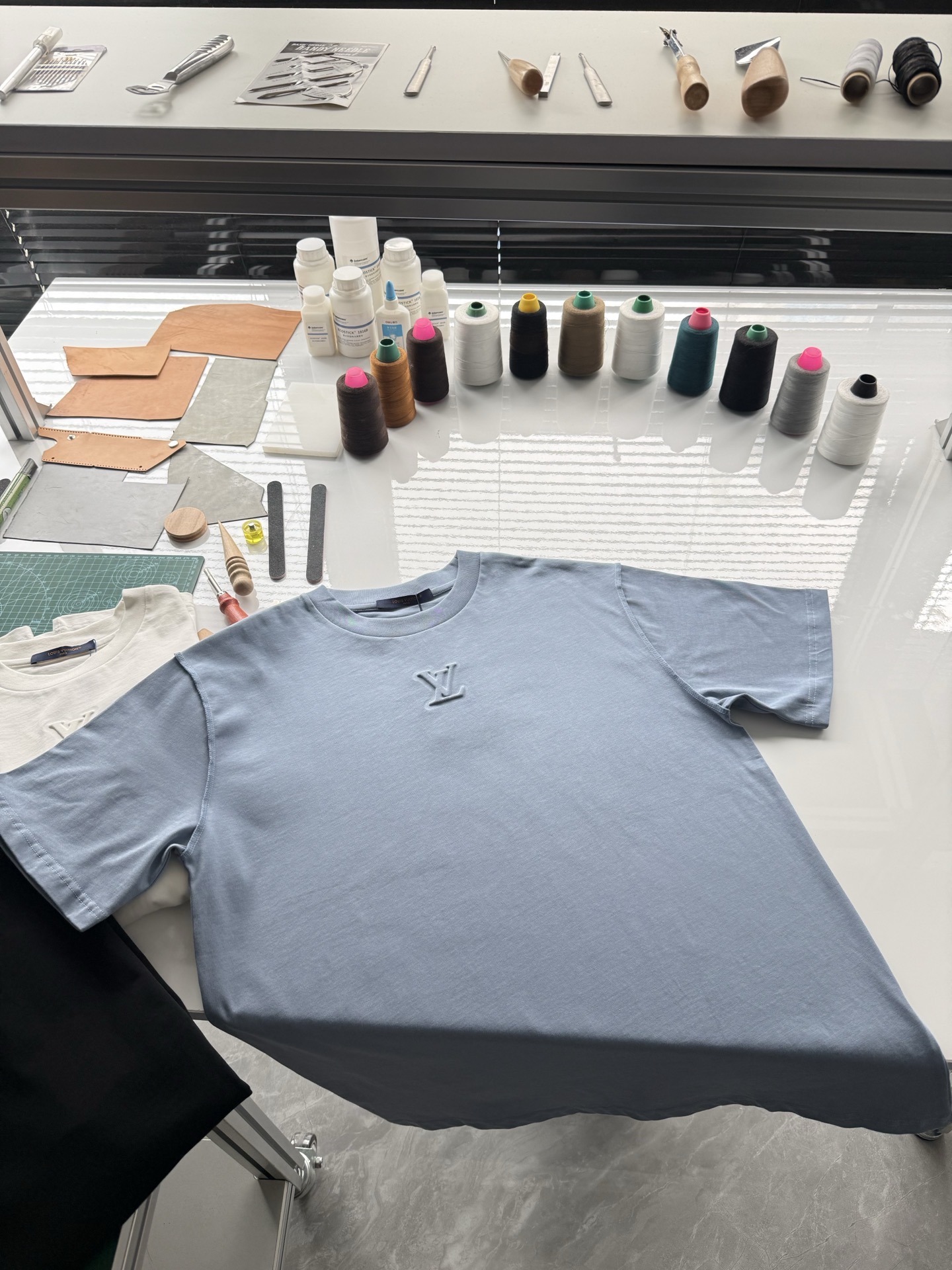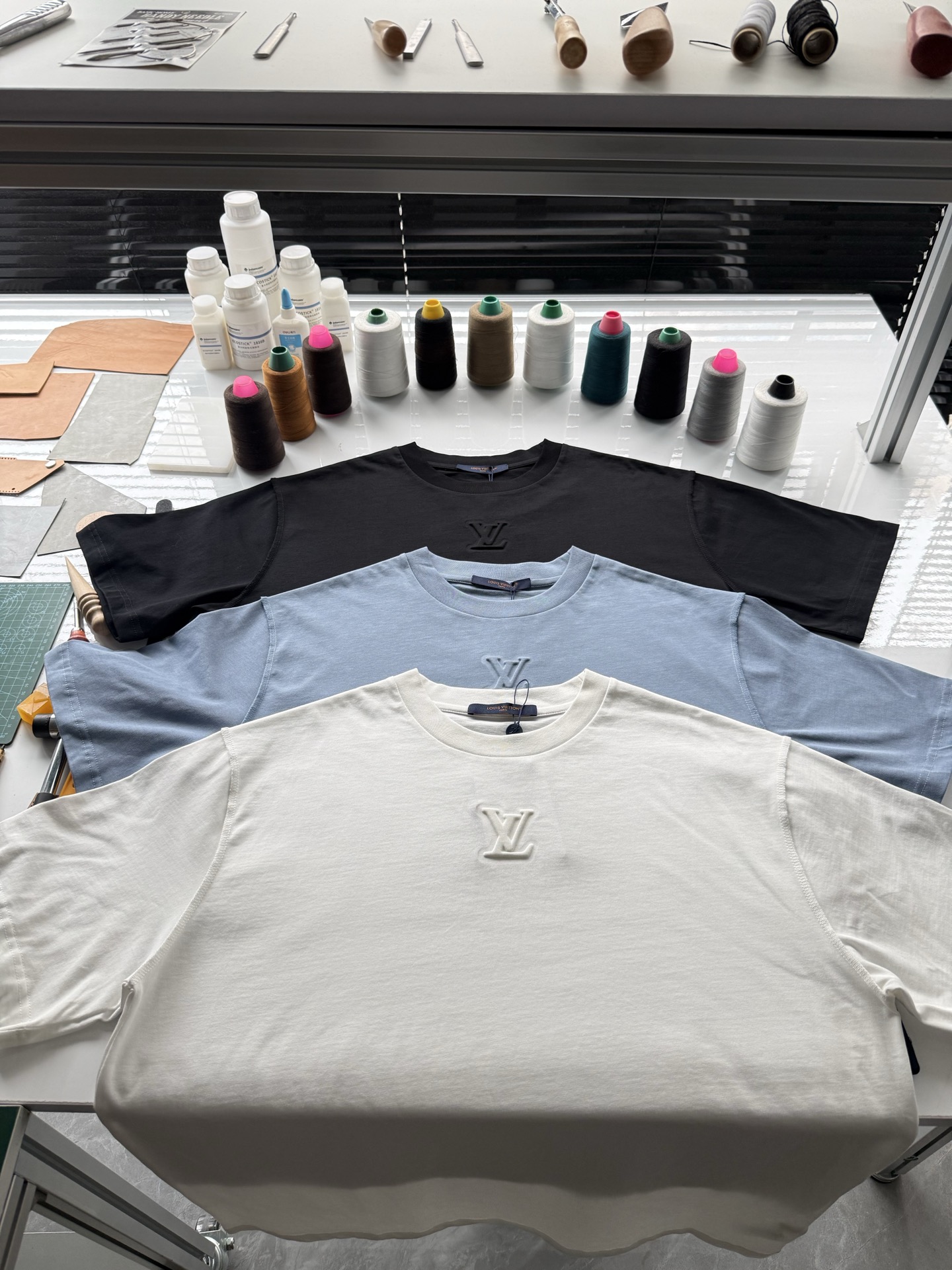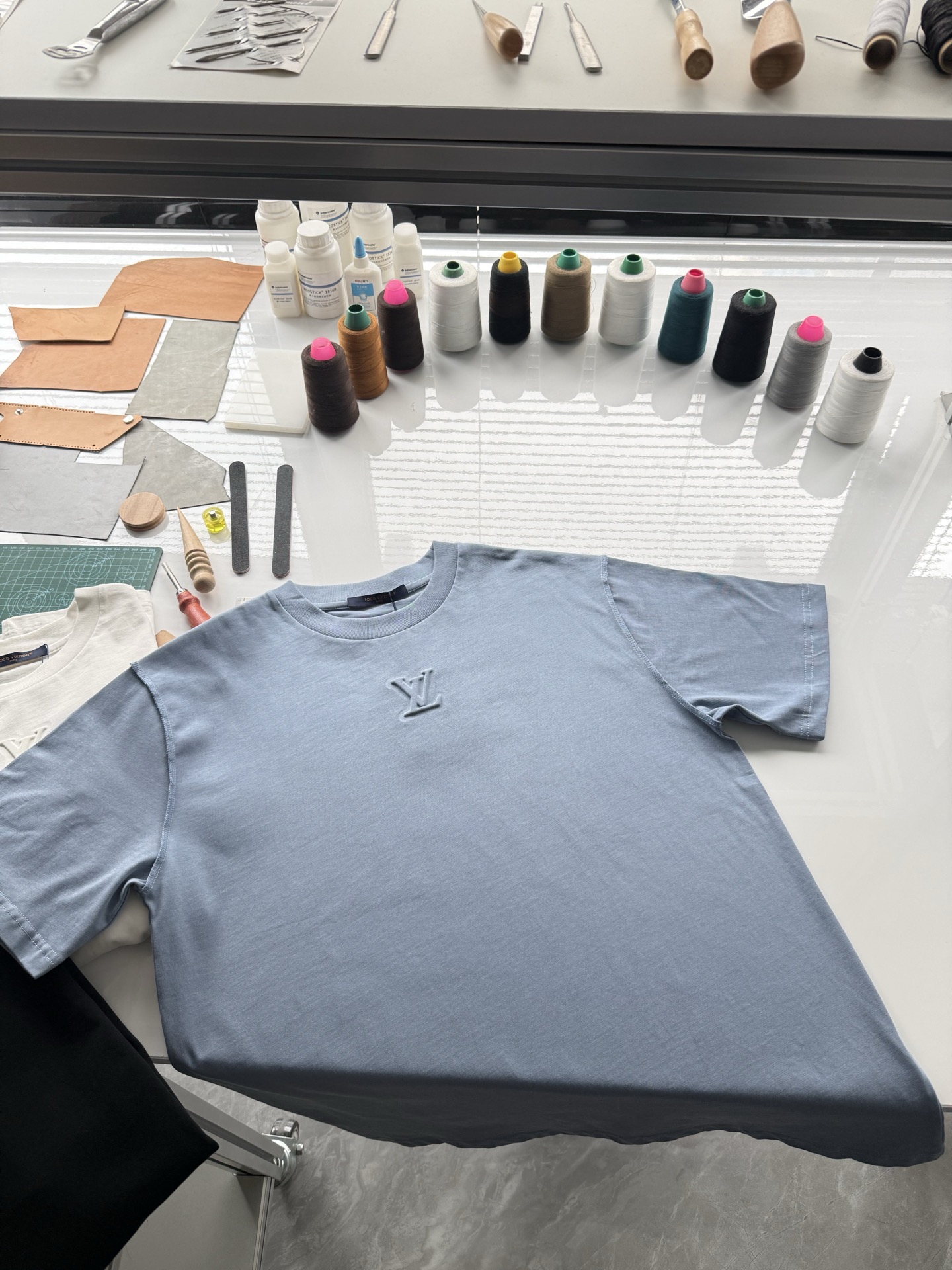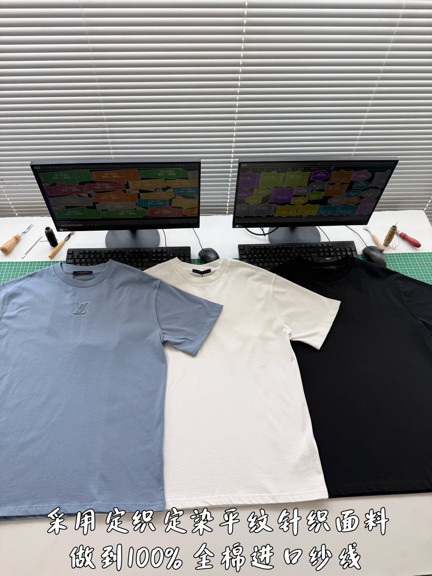 Louis Vuitton25ss压纹字母logo短袖T恤‼️整件衣服5450购买ZP拆解打造,采用定制蓝色纯棉面料,做到100%全棉进口纱线,意大利制造,前幅饰以LV压纹字母logo,做到立体饱满,定织标志性罗纹领口,超紧密度局部编织,真正做到1:1copy 码数:XS S M L