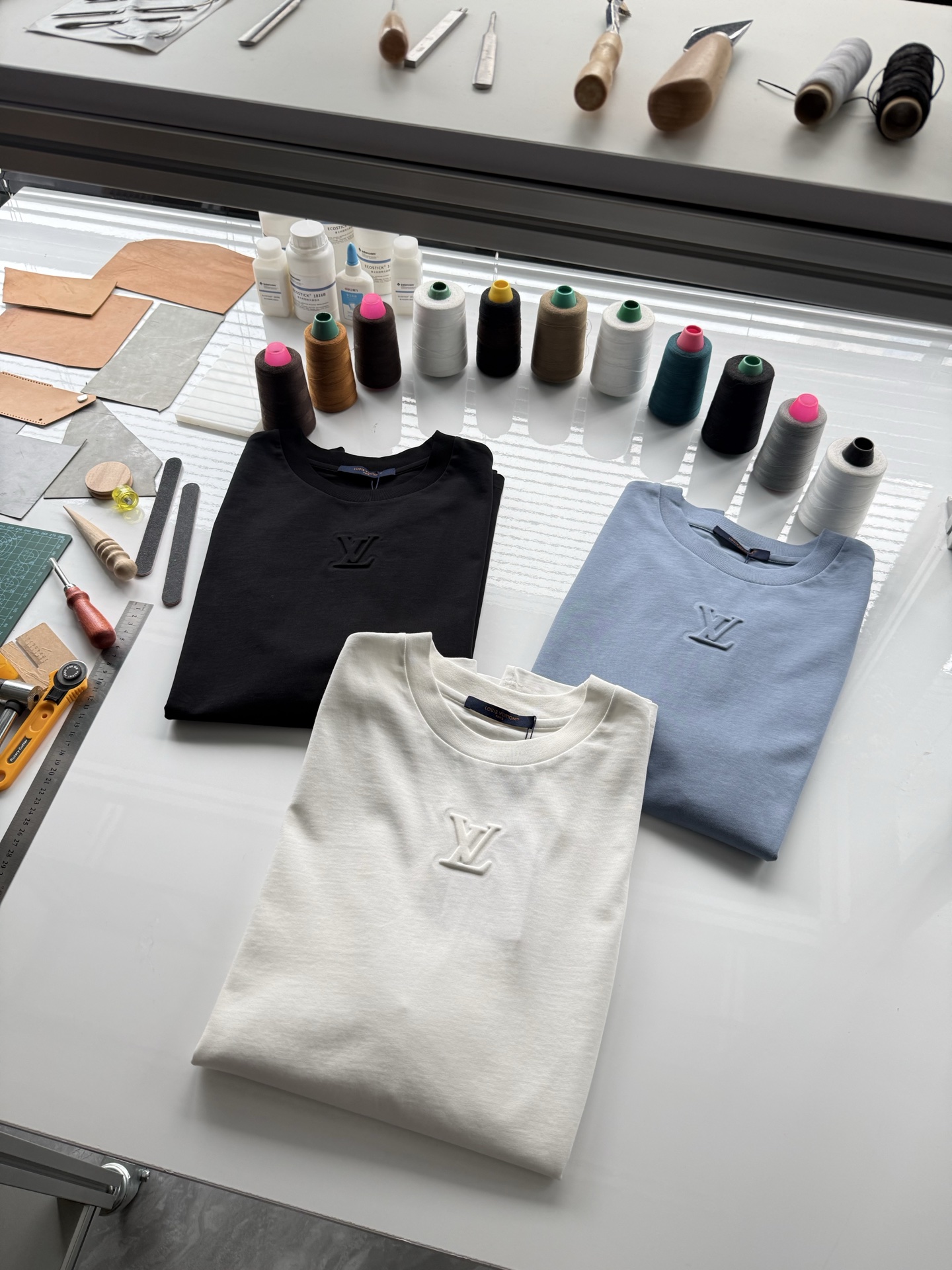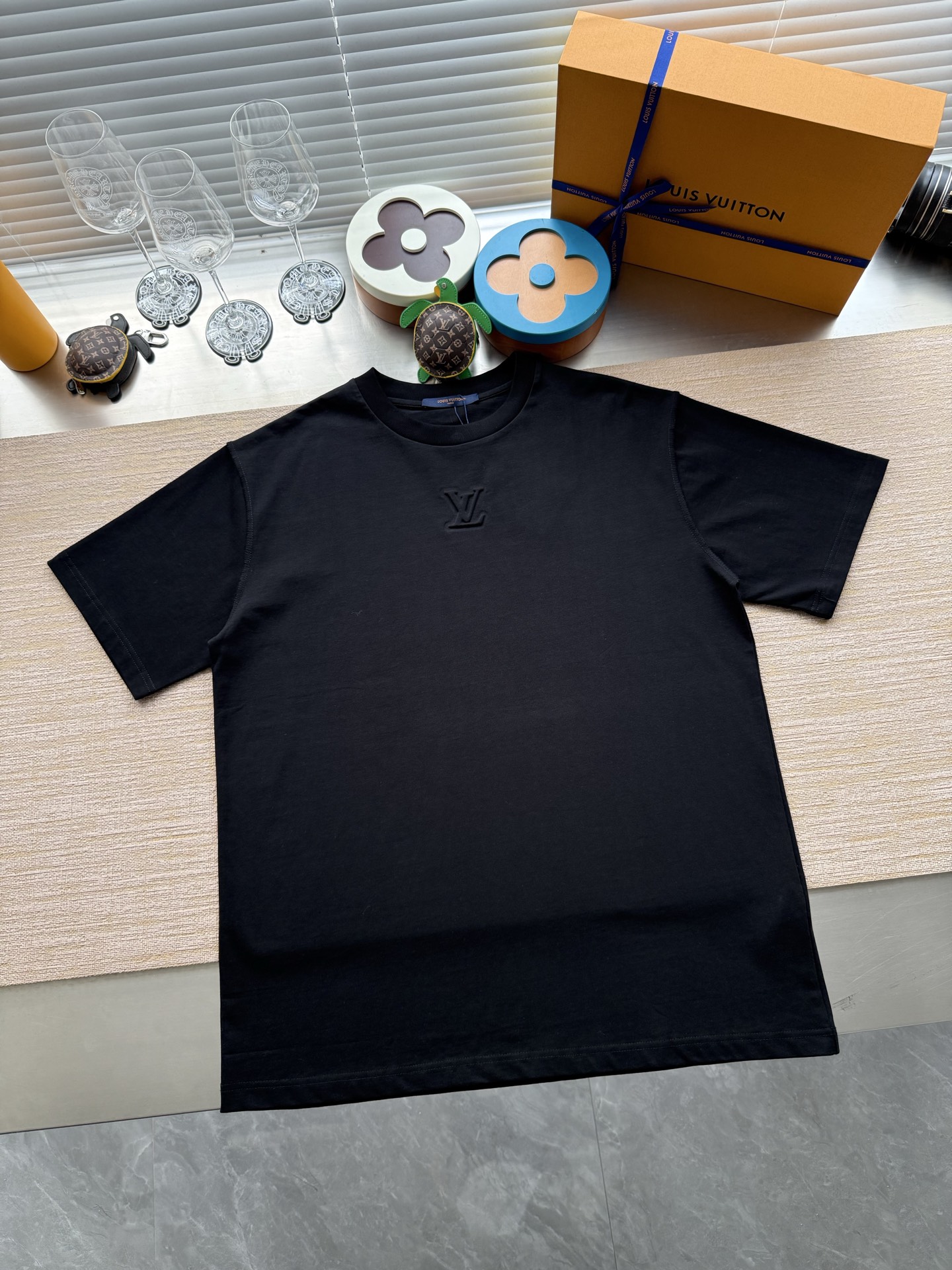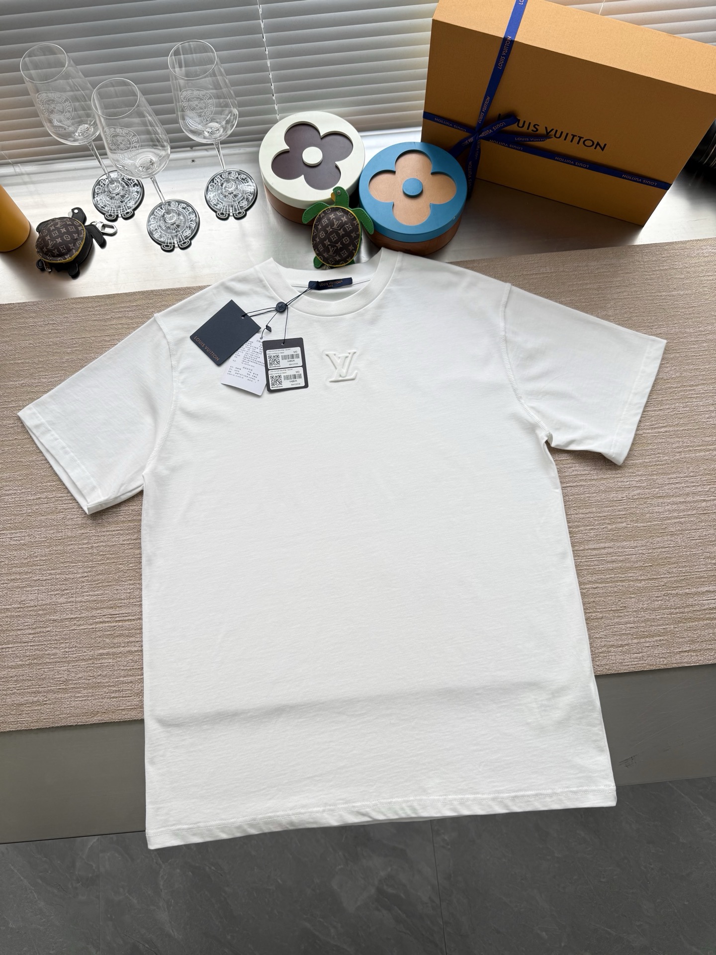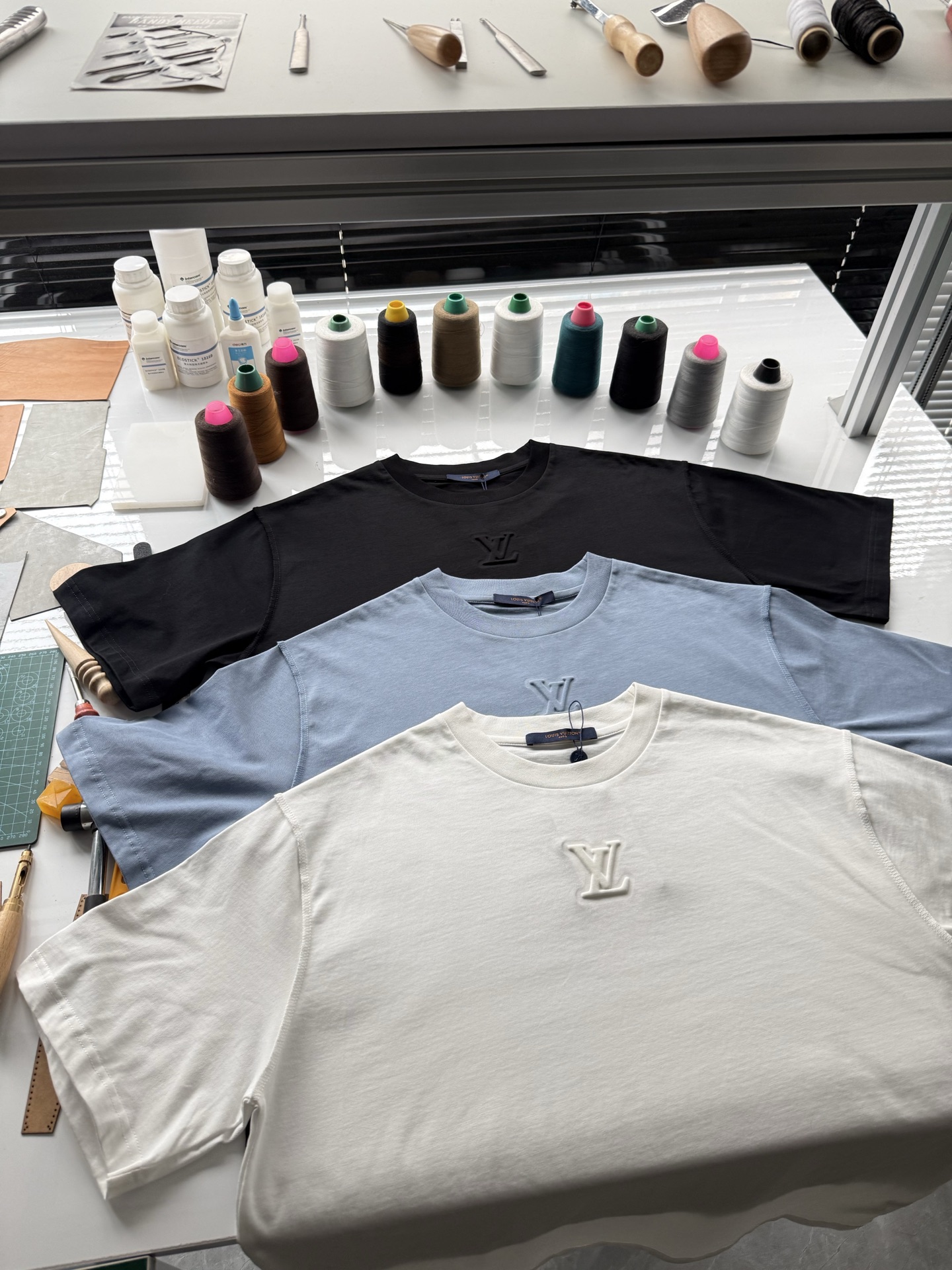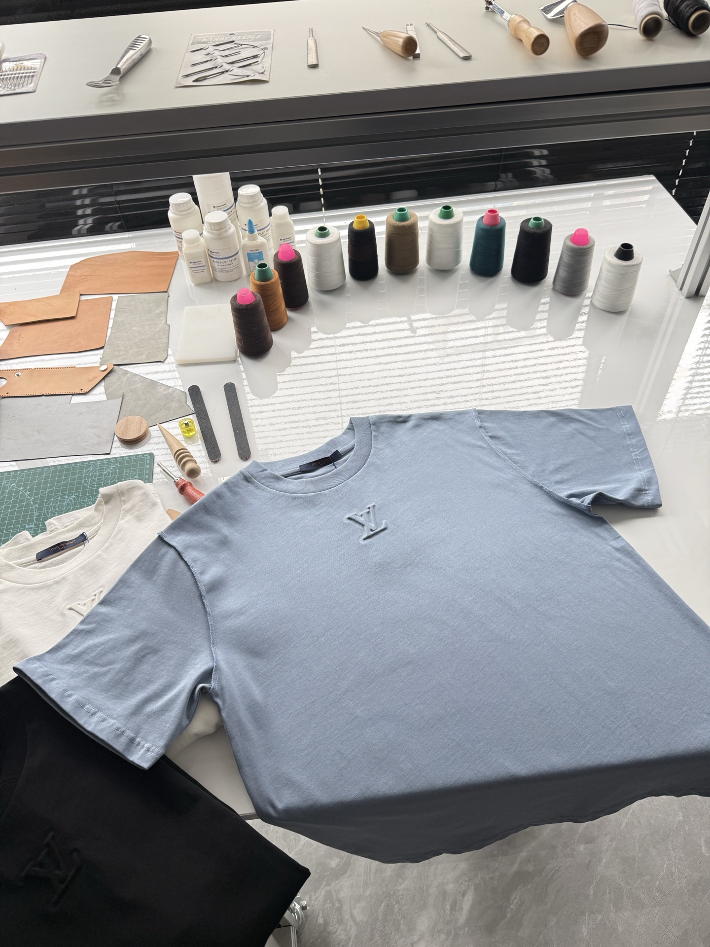 Louis Vuitton25ss压纹字母logo短袖T恤‼️整件衣服5450购买ZP拆解打造,采用定制蓝色纯棉面料,做到100%全棉进口纱线,意大利制造,前幅饰以LV压纹字母logo,做到立体饱满,定织标志性罗纹领口,超紧密度局部编织,真正做到1:1copy 码数:XS S M L