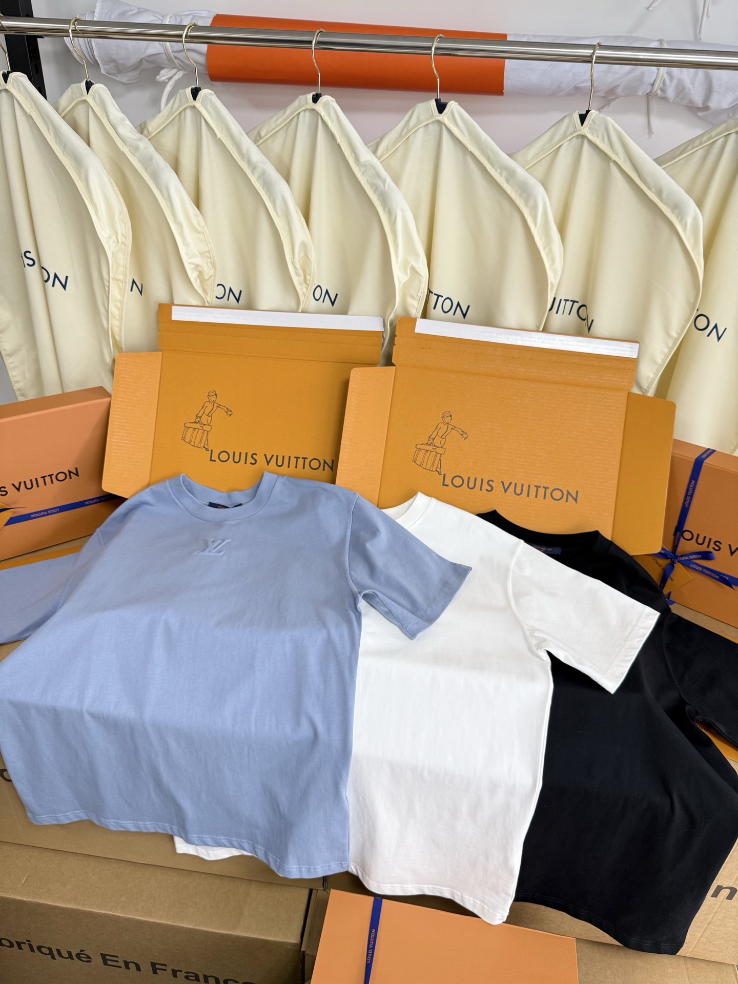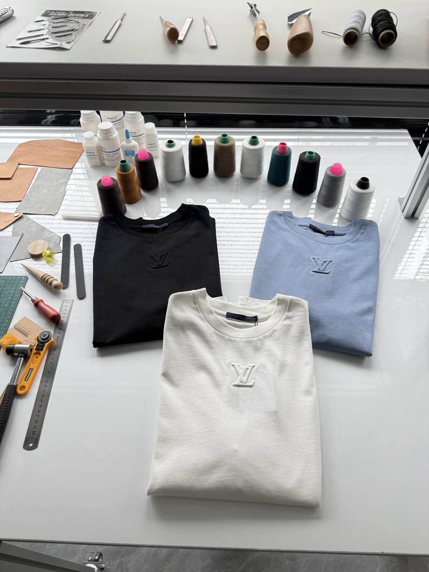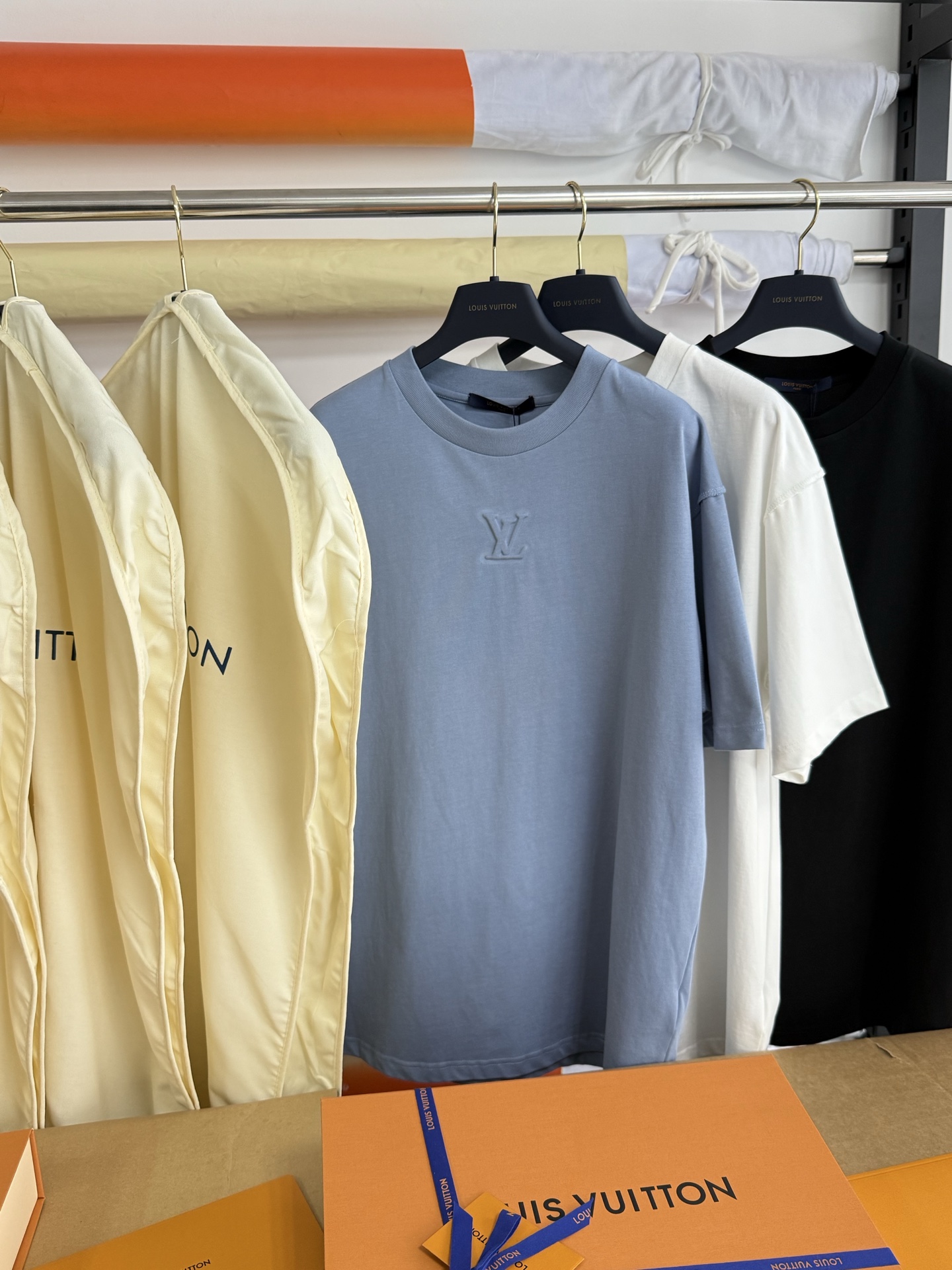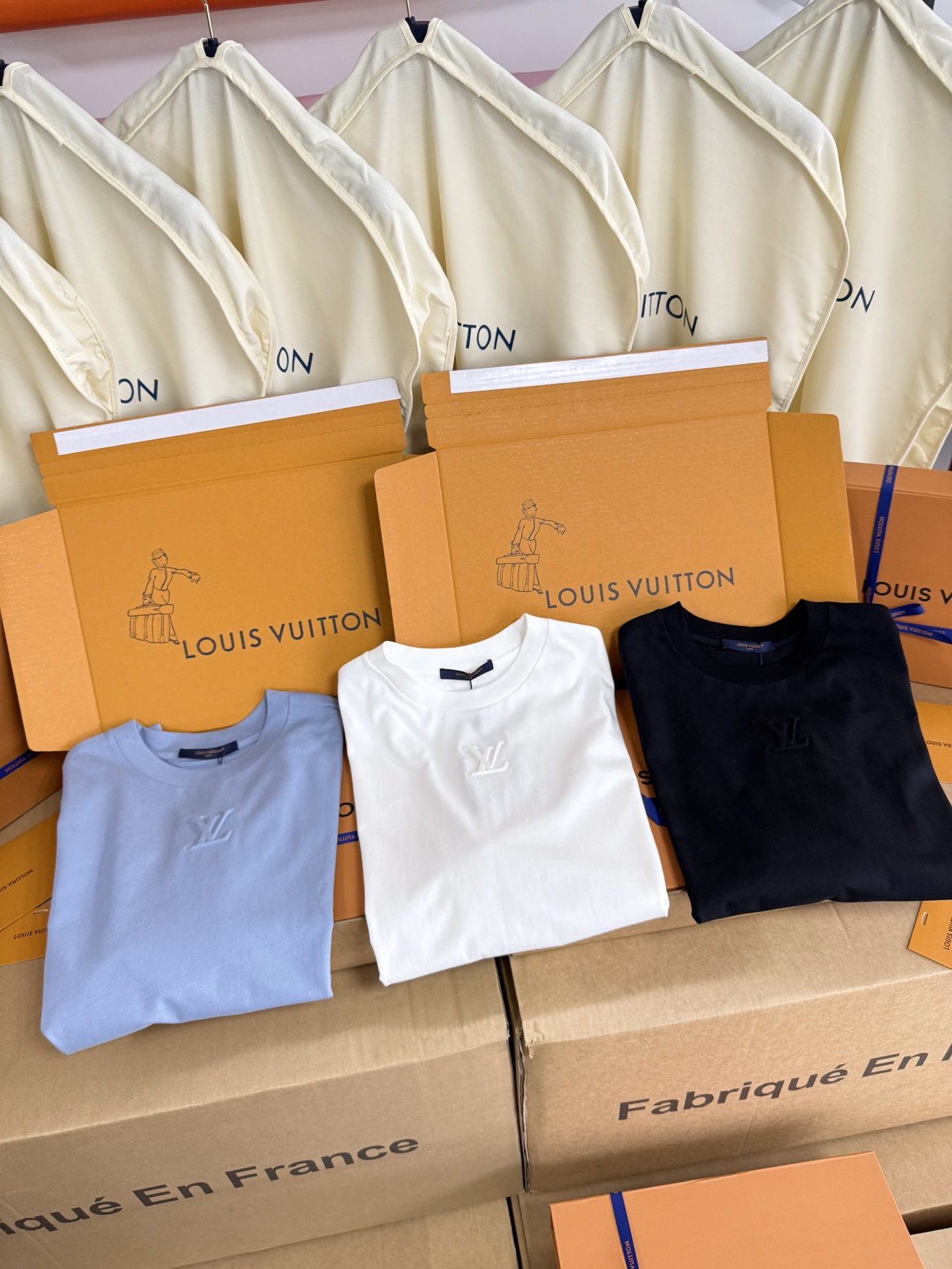 Louis Vuitton25ss压纹字母logo短袖T恤‼️整件衣服5450购买ZP拆解打造,采用定制蓝色纯棉面料,做到100%全棉进口纱线,意大利制造,前幅饰以LV压纹字母logo,做到立体饱满,定织标志性罗纹领口,超紧密度局部编织,真正做到1:1copy 码数:XS S M L