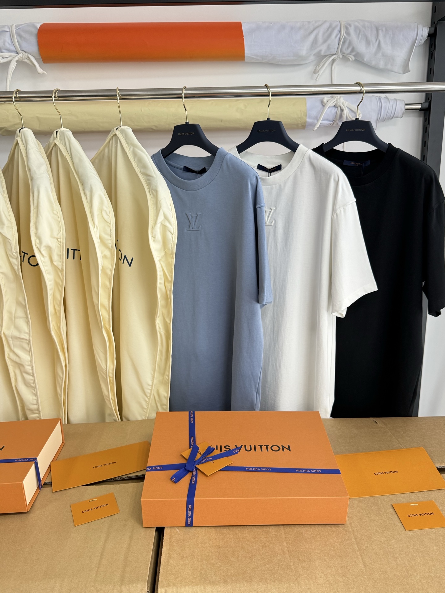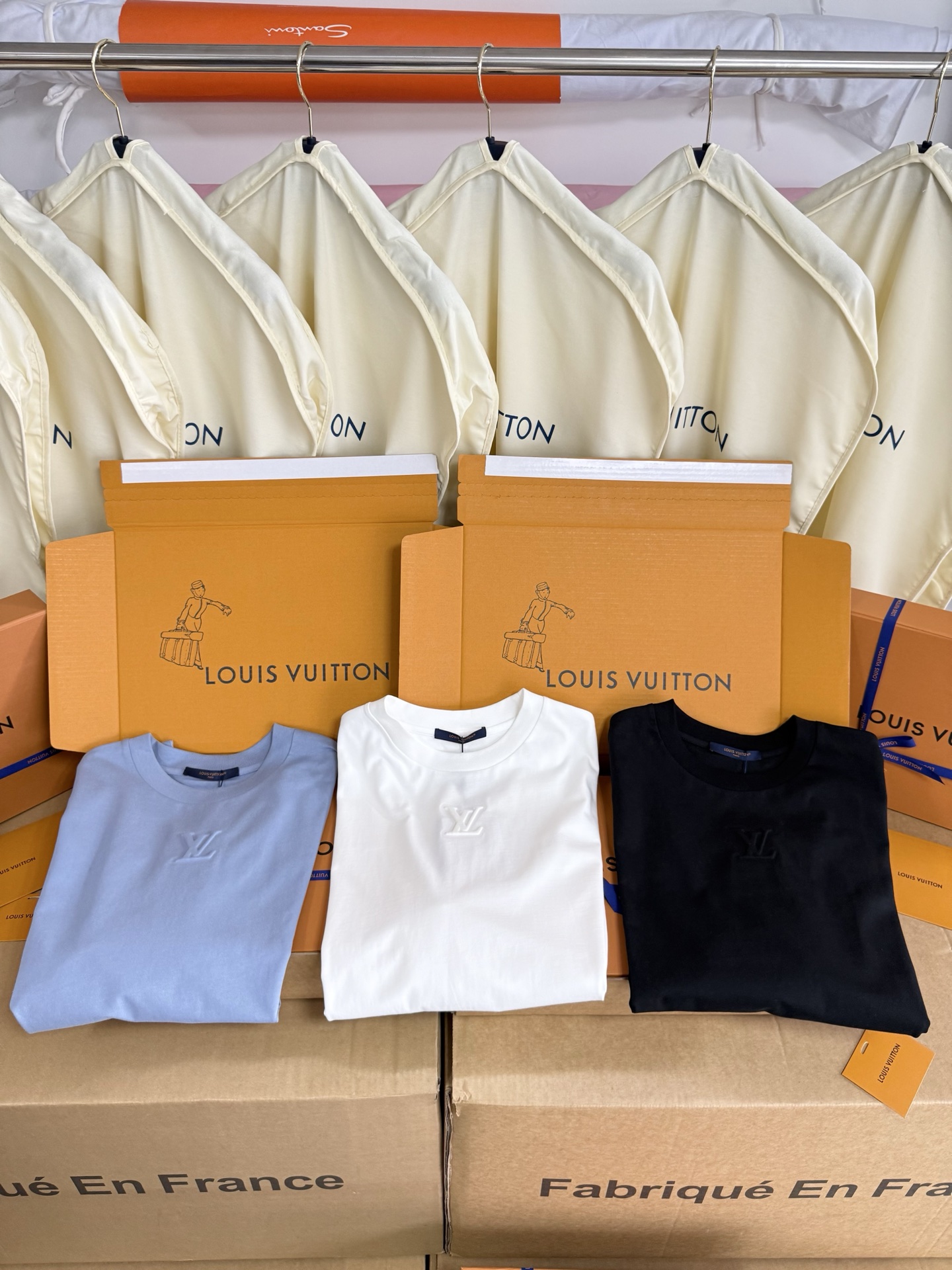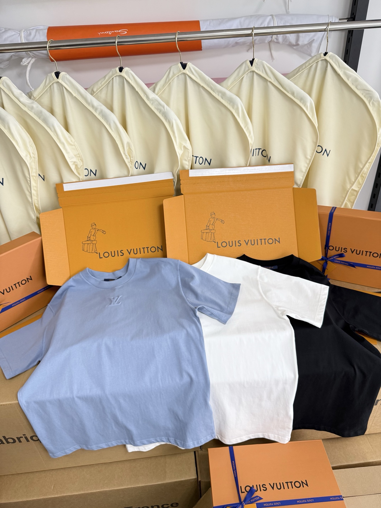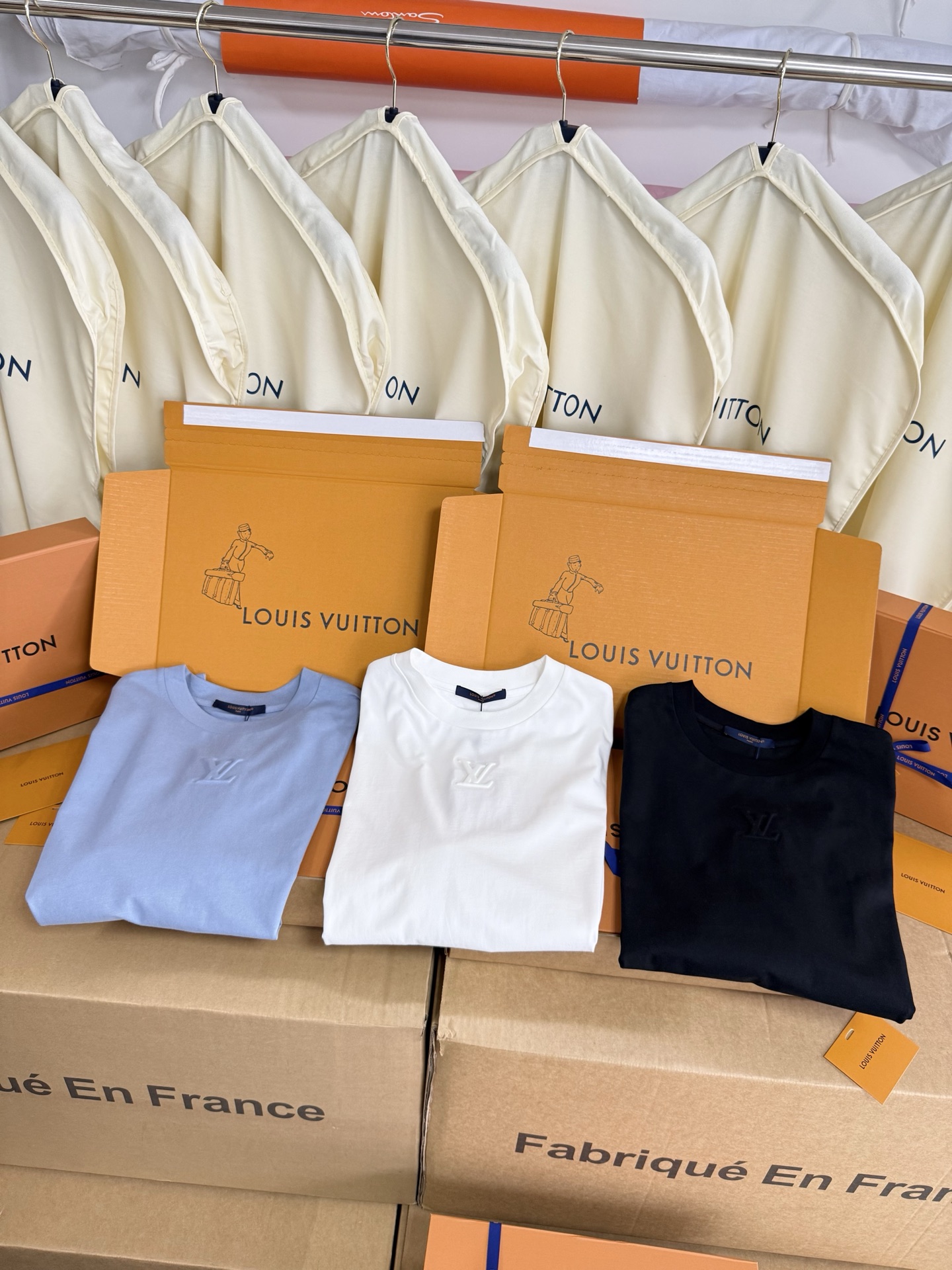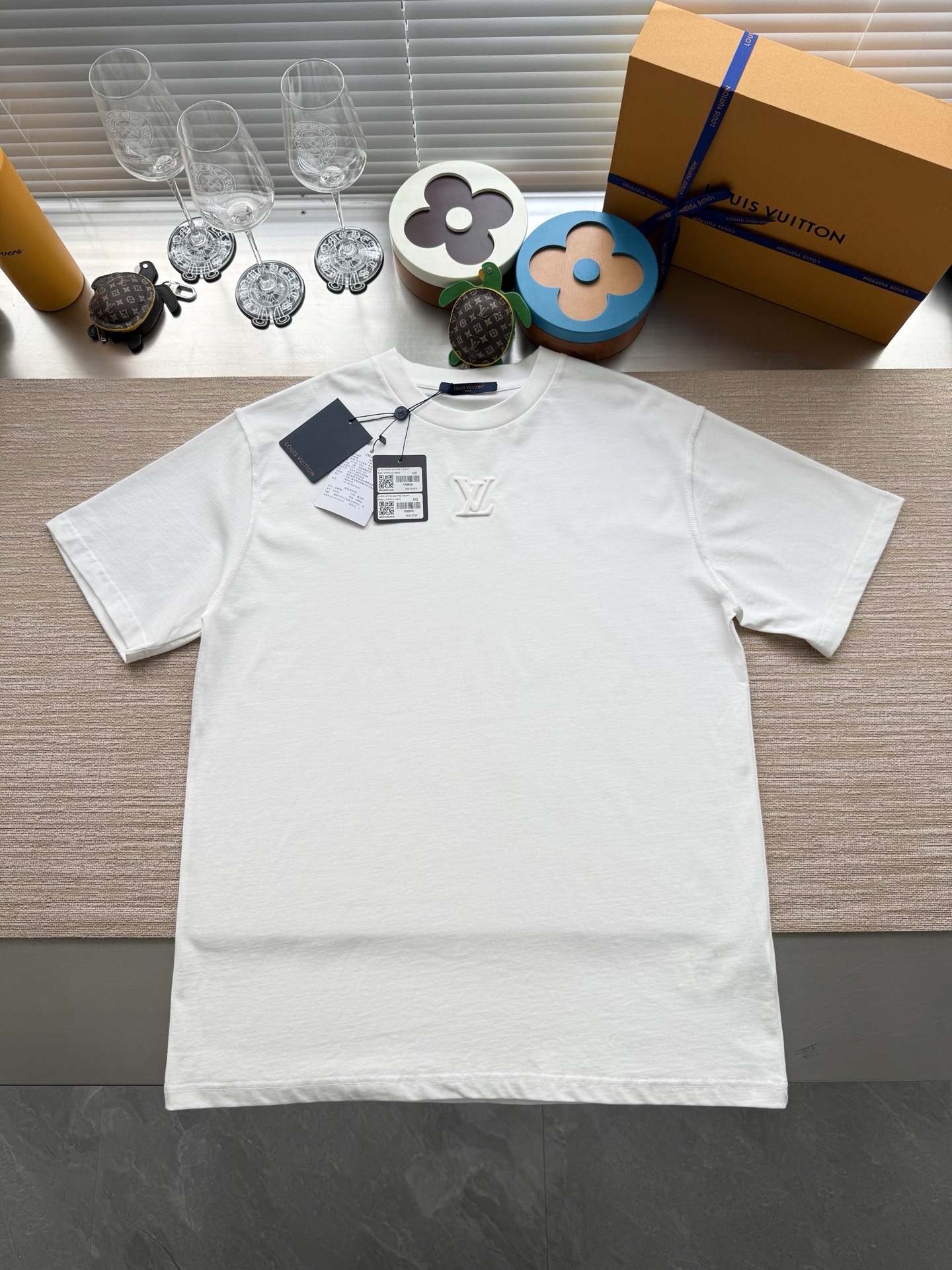 Louis Vuitton25ss压纹字母logo短袖T恤‼️整件衣服5450购买ZP拆解打造,采用定制蓝色纯棉面料,做到100%全棉进口纱线,意大利制造,前幅饰以LV压纹字母logo,做到立体饱满,定织标志性罗纹领口,超紧密度局部编织,真正做到1:1copy 码数:XS S M L