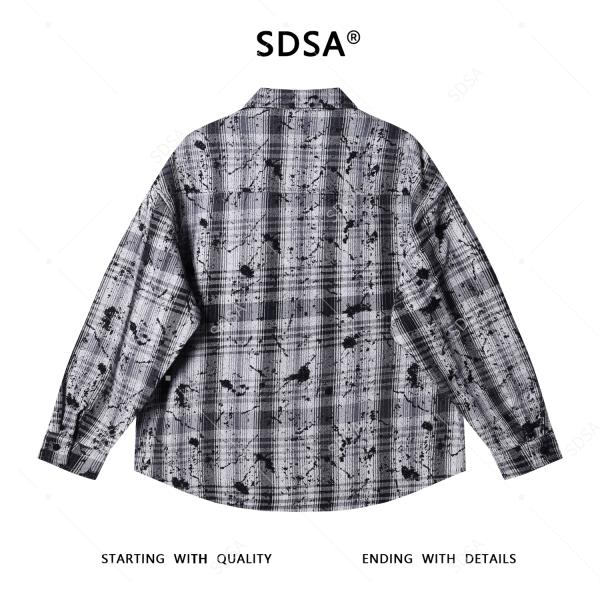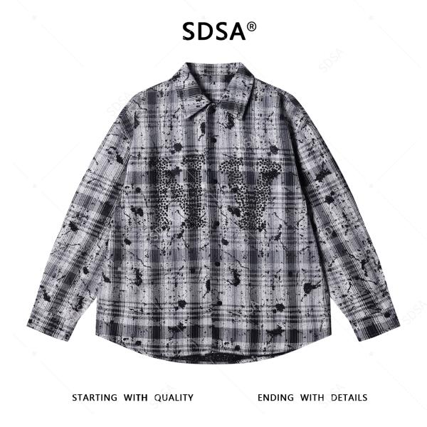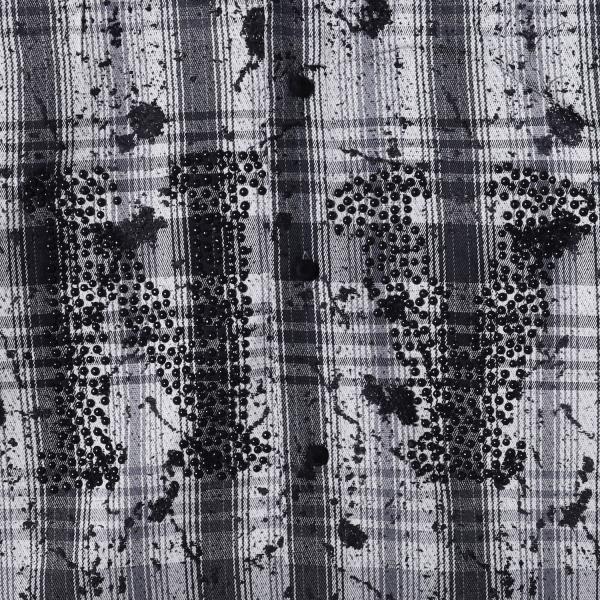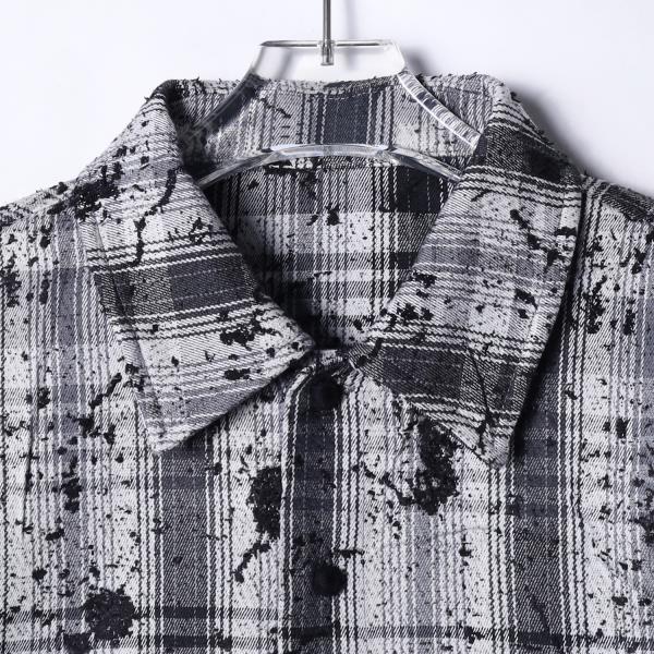 C56211SDSA男士秋冬新款痞帅男装潮牌撞色格纹立体珠子字母设计长袖衬衫