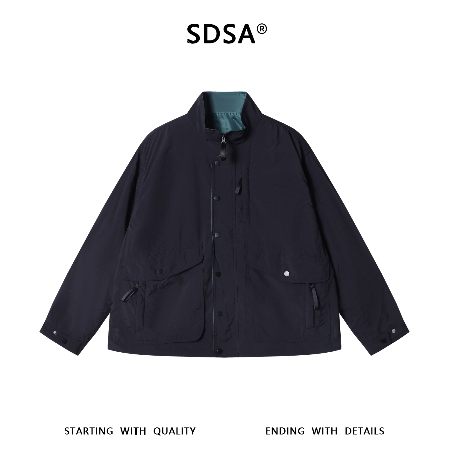 SDSA男装2026新款高贵轻奢韩版简约纯色大口袋立领夹克外套百搭
