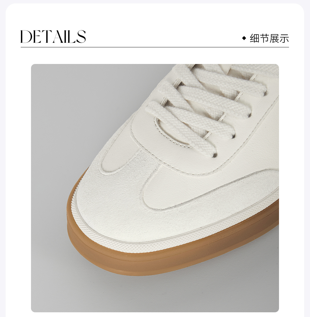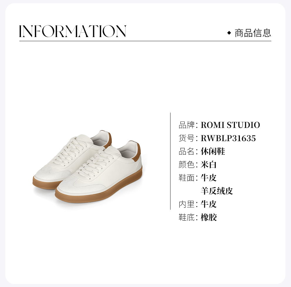 ROMI STUDIO“休闲漫步”小牛皮羊反绒拼色平底德训鞋 RWBLP31635