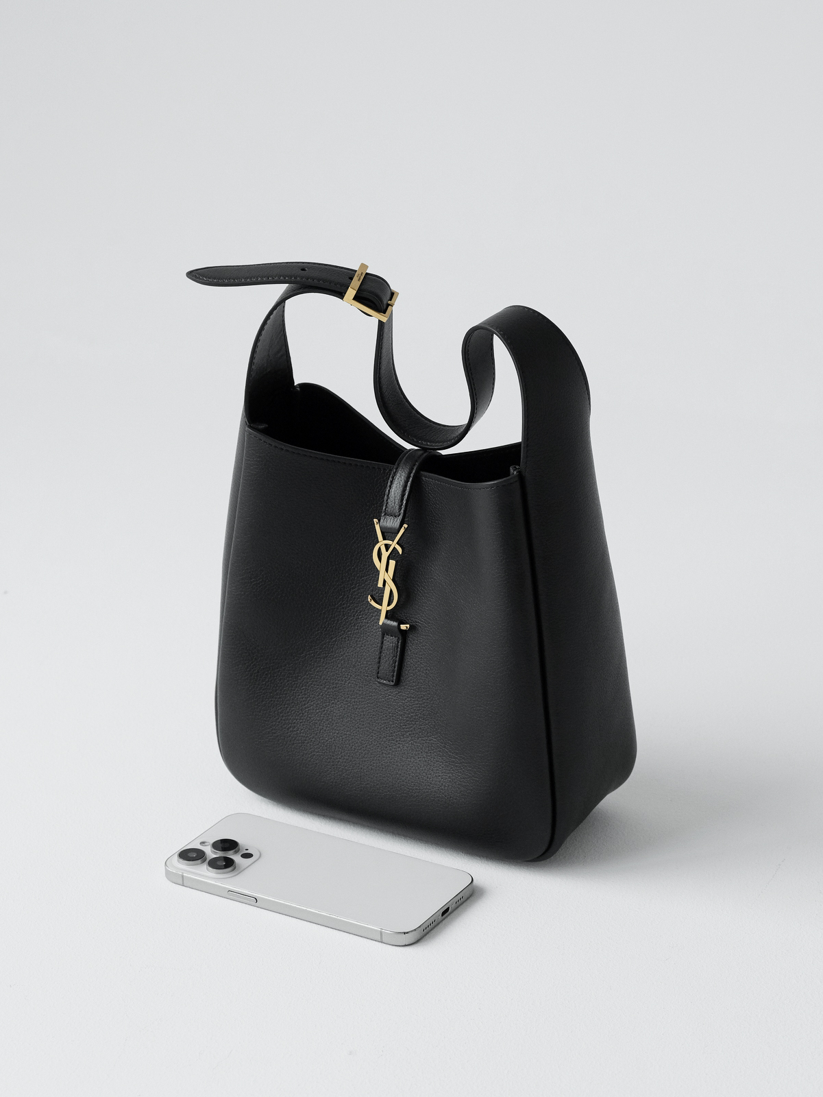 GZ241预售中-圣罗兰 YSL LE5A7金色logo钩扣开合 柔软粒面牛皮 Hobo流浪包手提单肩包 小号