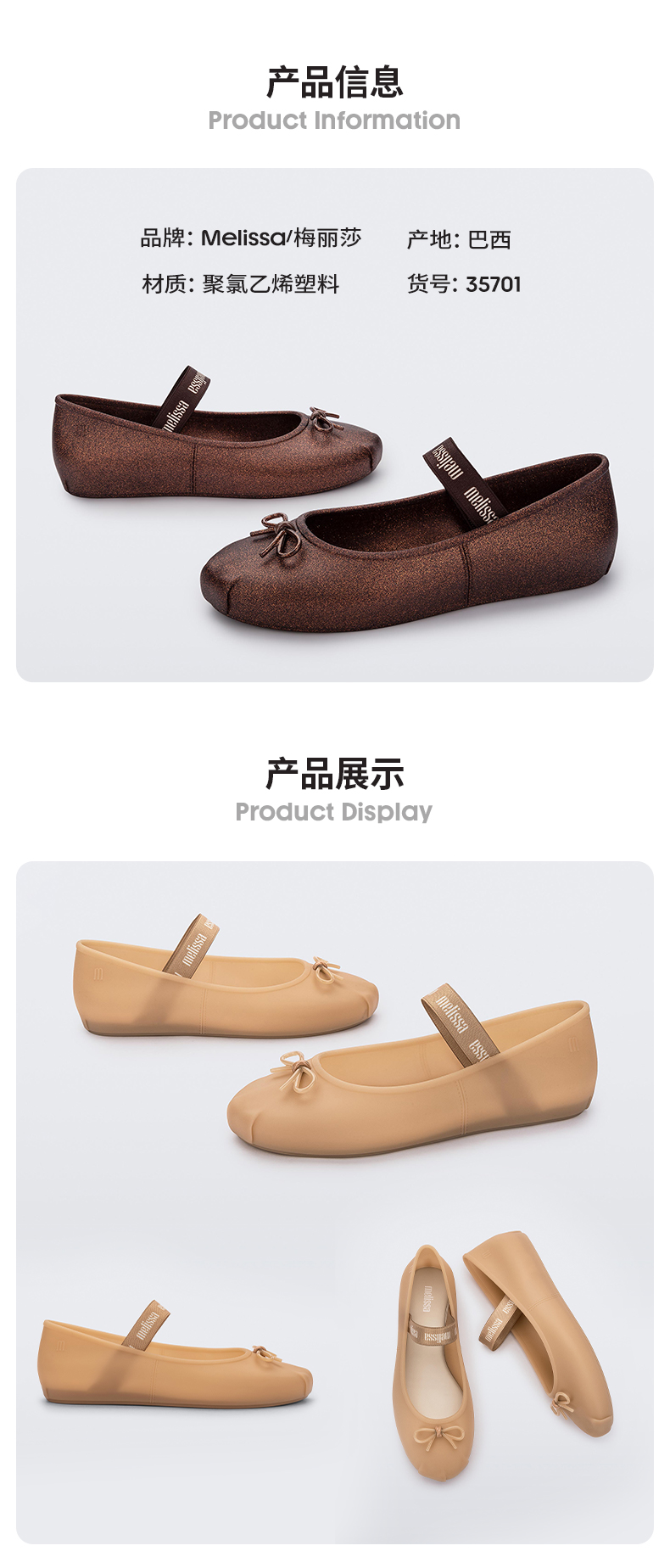 Melissa/梅丽莎 Sophie蝴蝶结轻奢柔软单鞋芭蕾鞋女35701