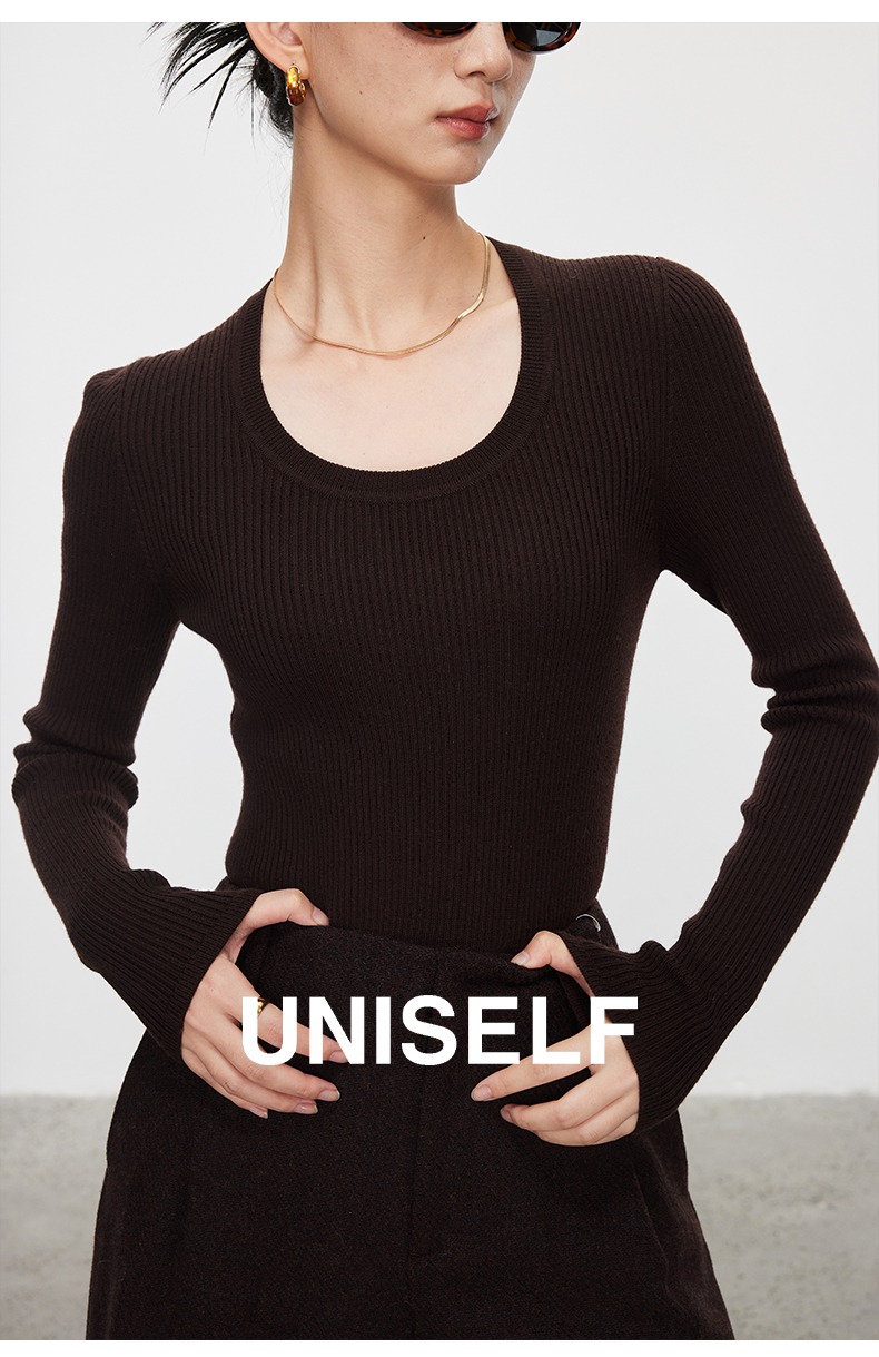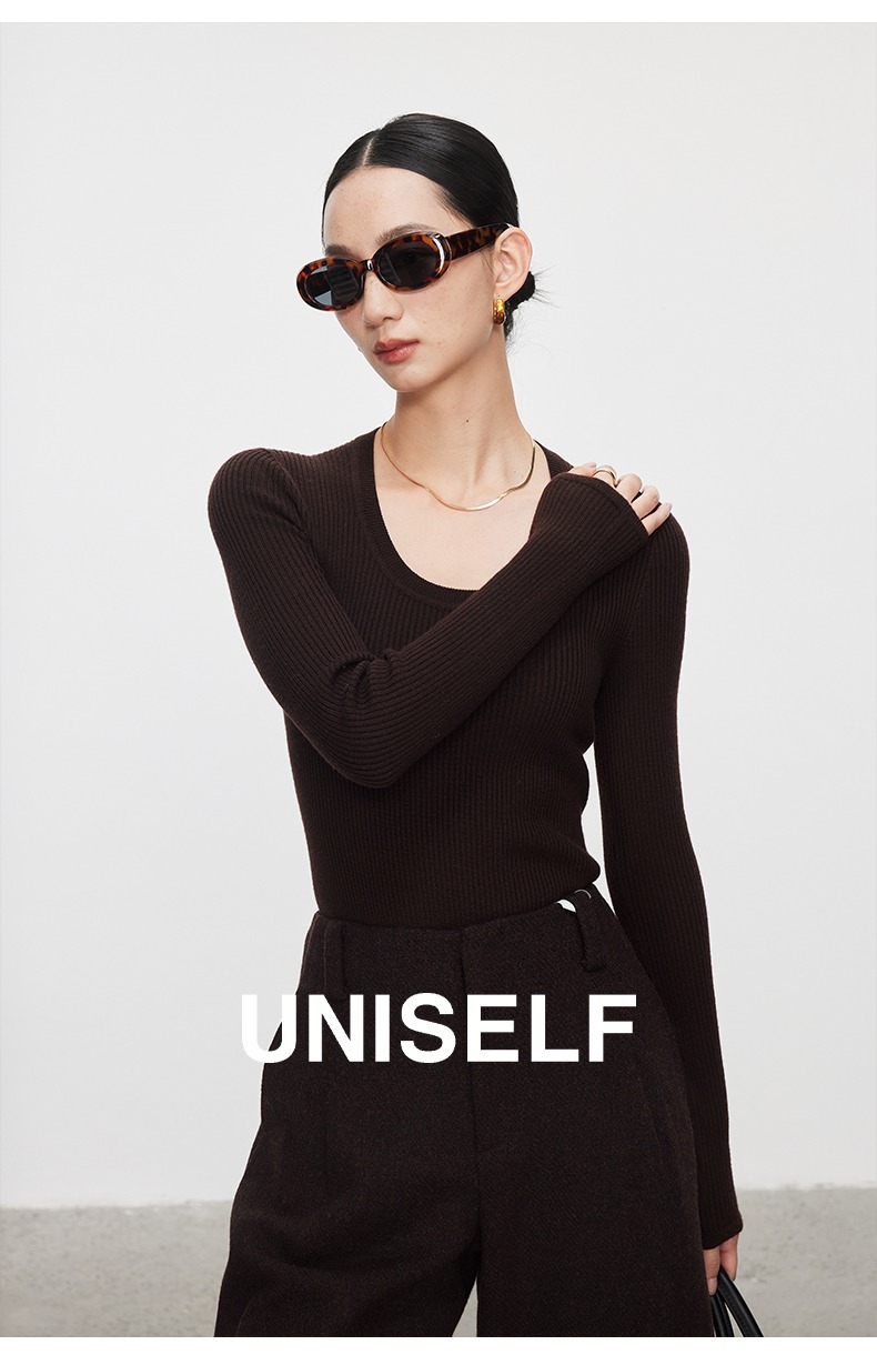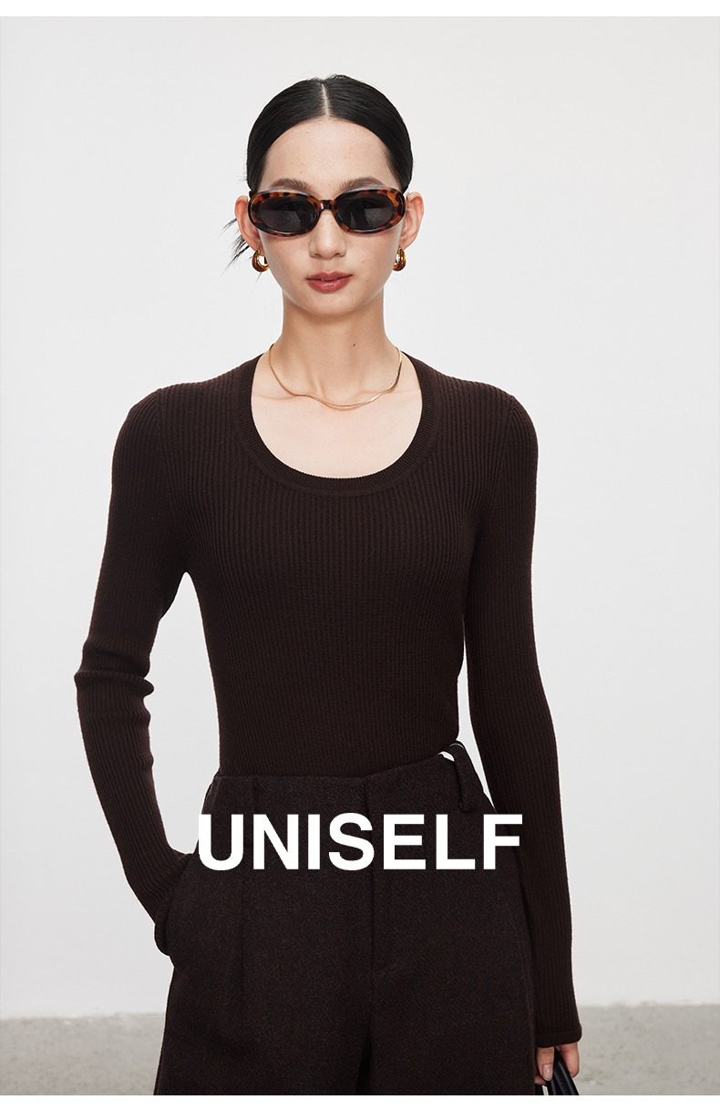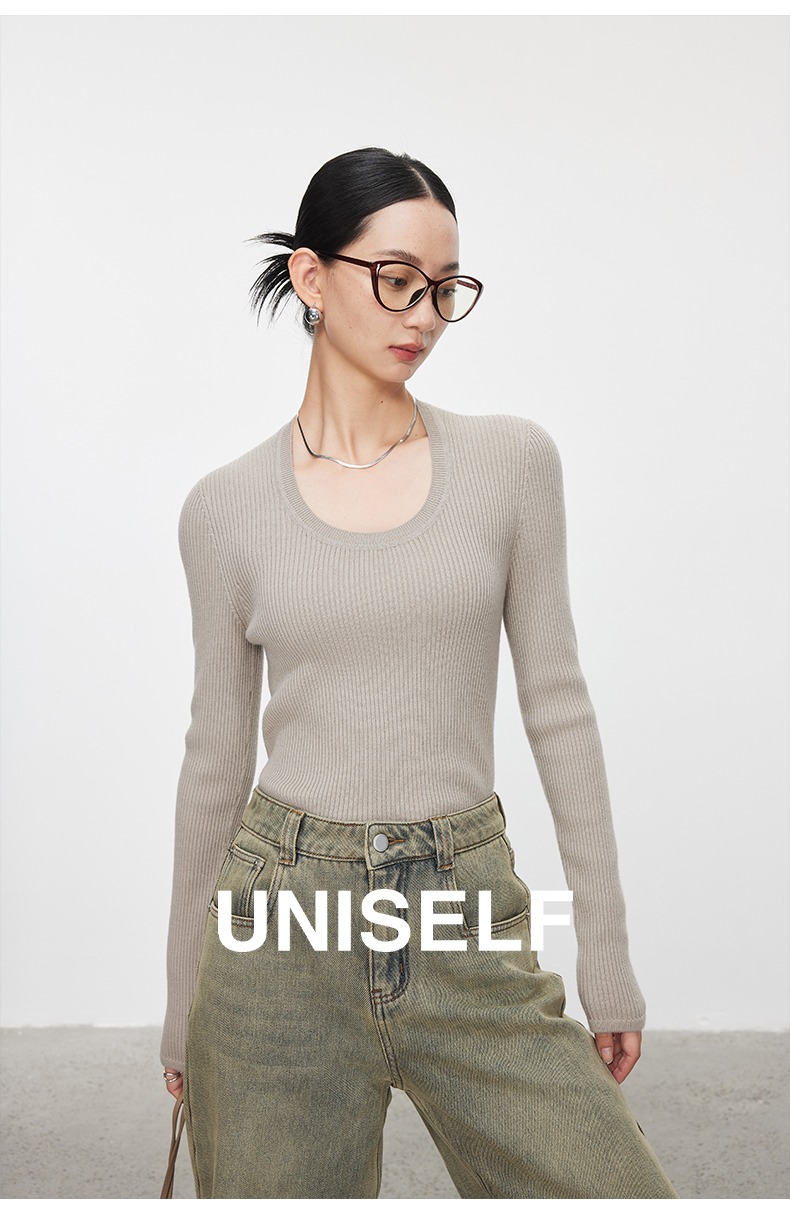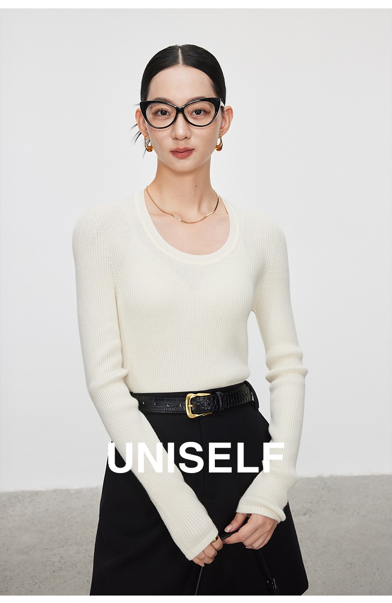 全羊毛水滴领打底上衣女2023冬季新款修身百搭长袖针织衫