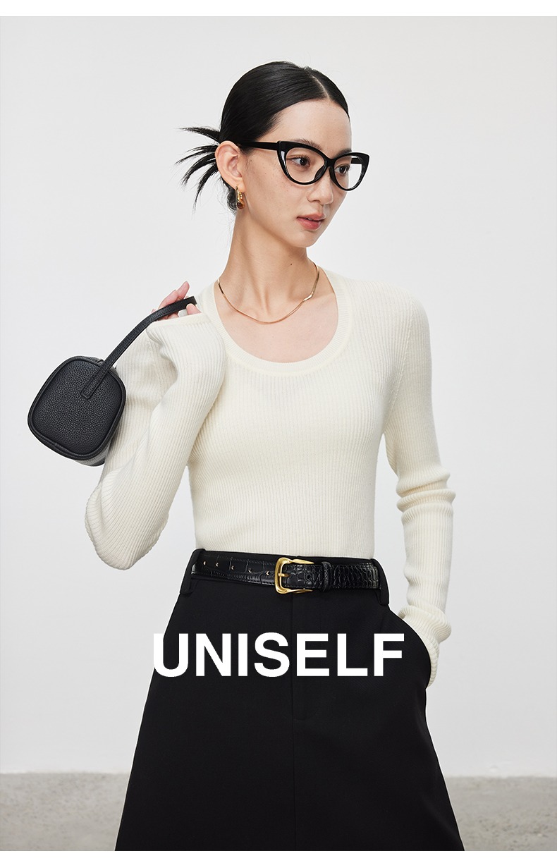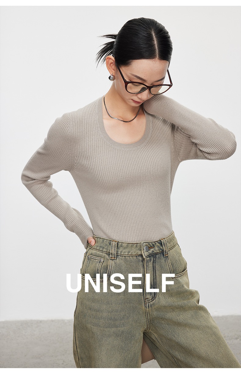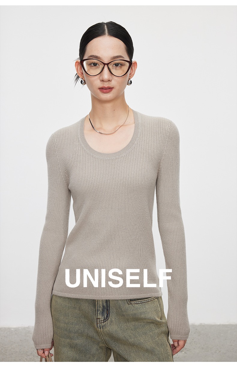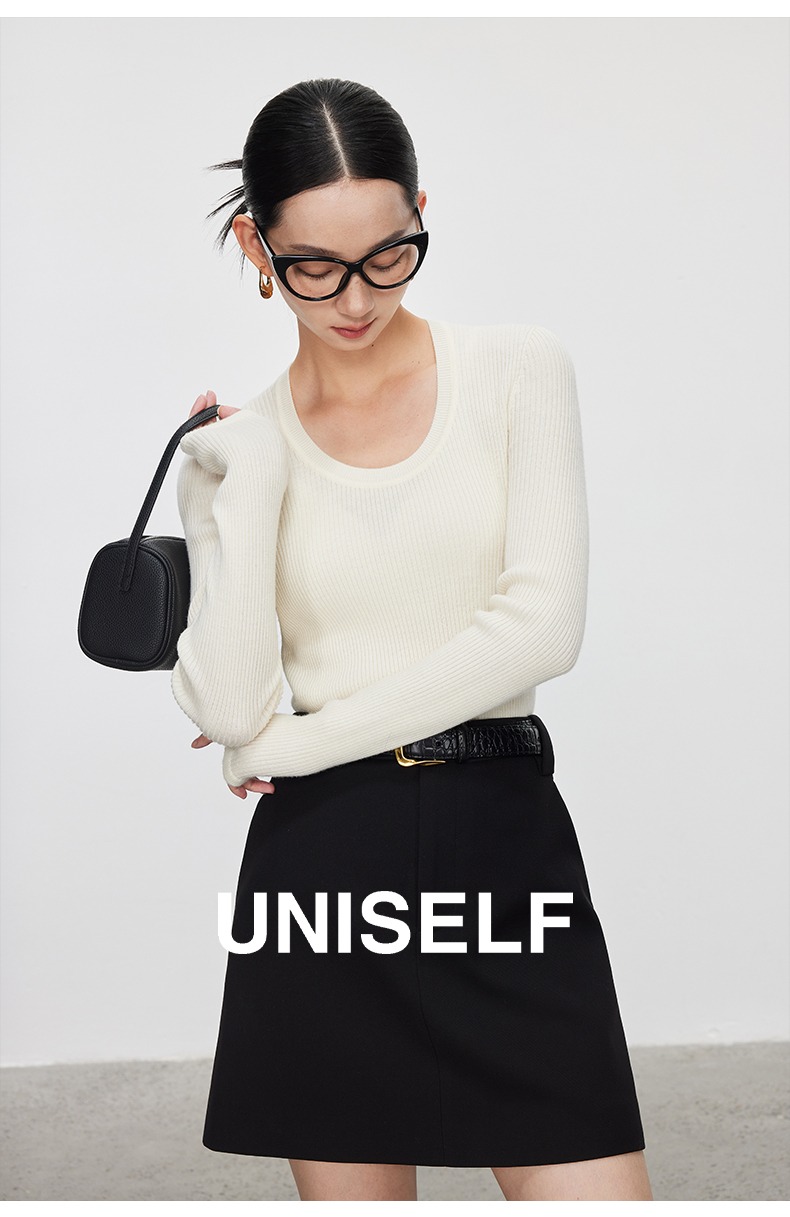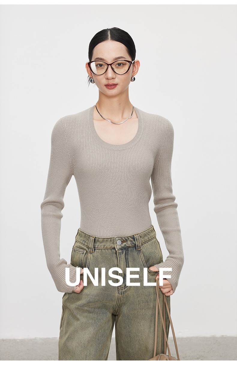 全羊毛水滴领打底上衣女2023冬季新款修身百搭长袖针织衫