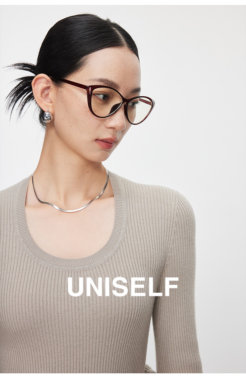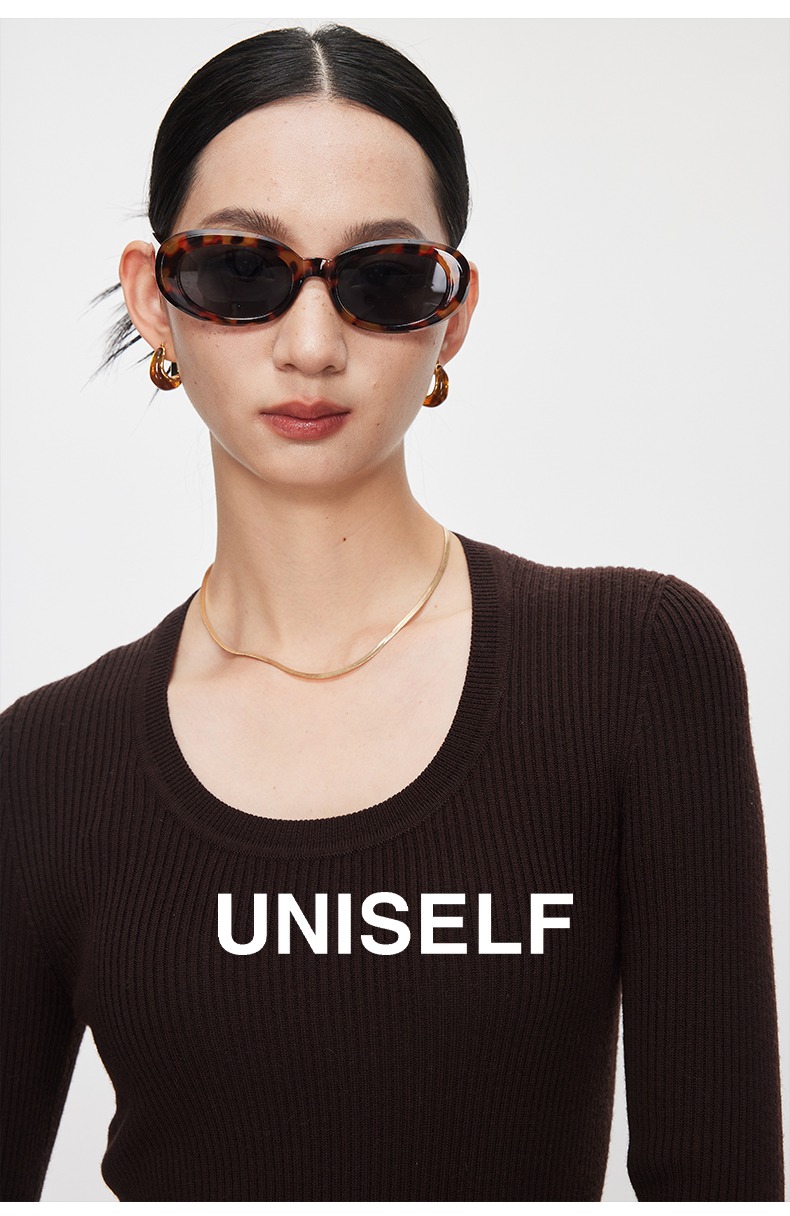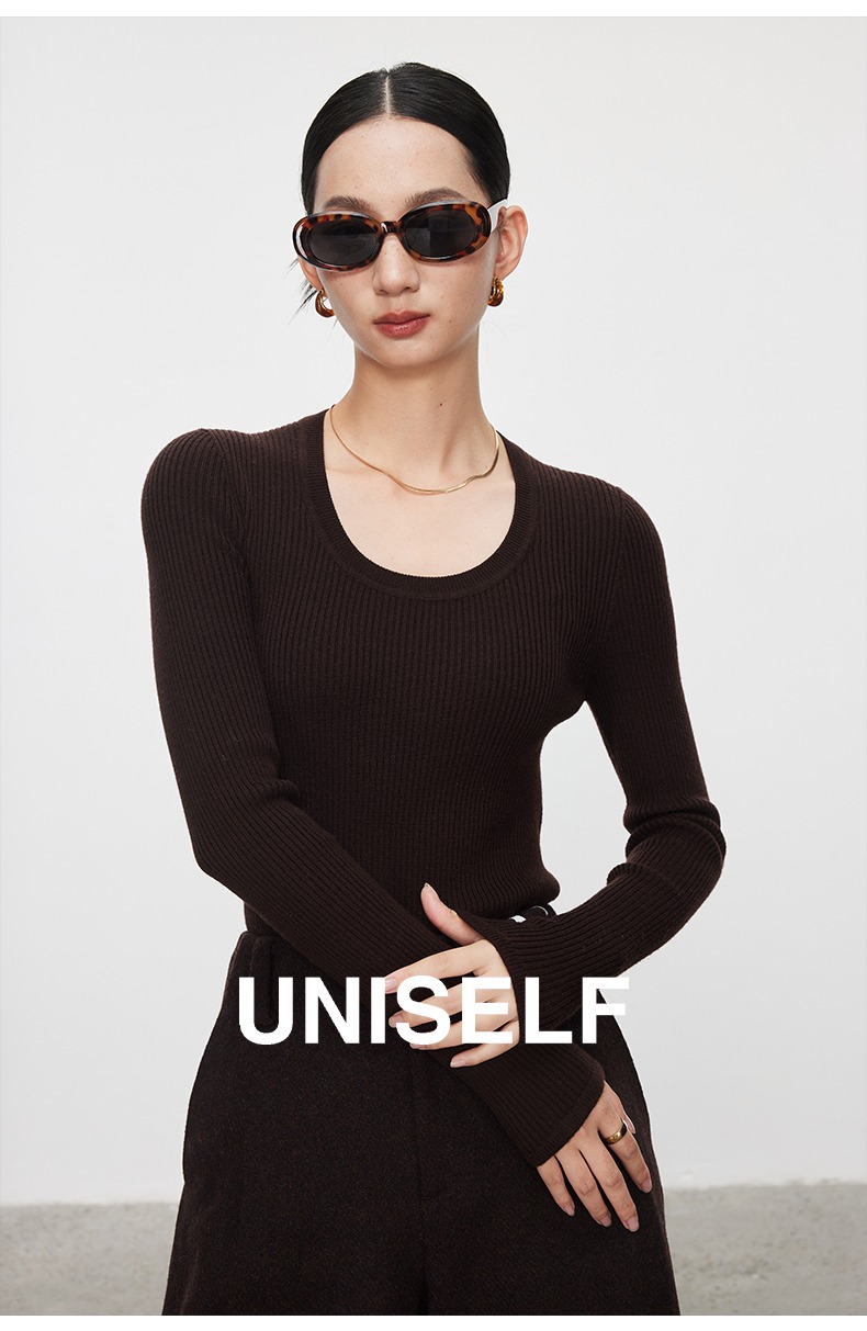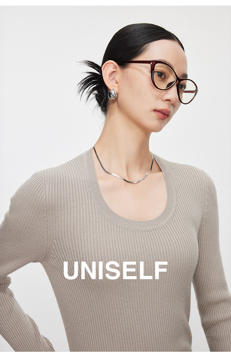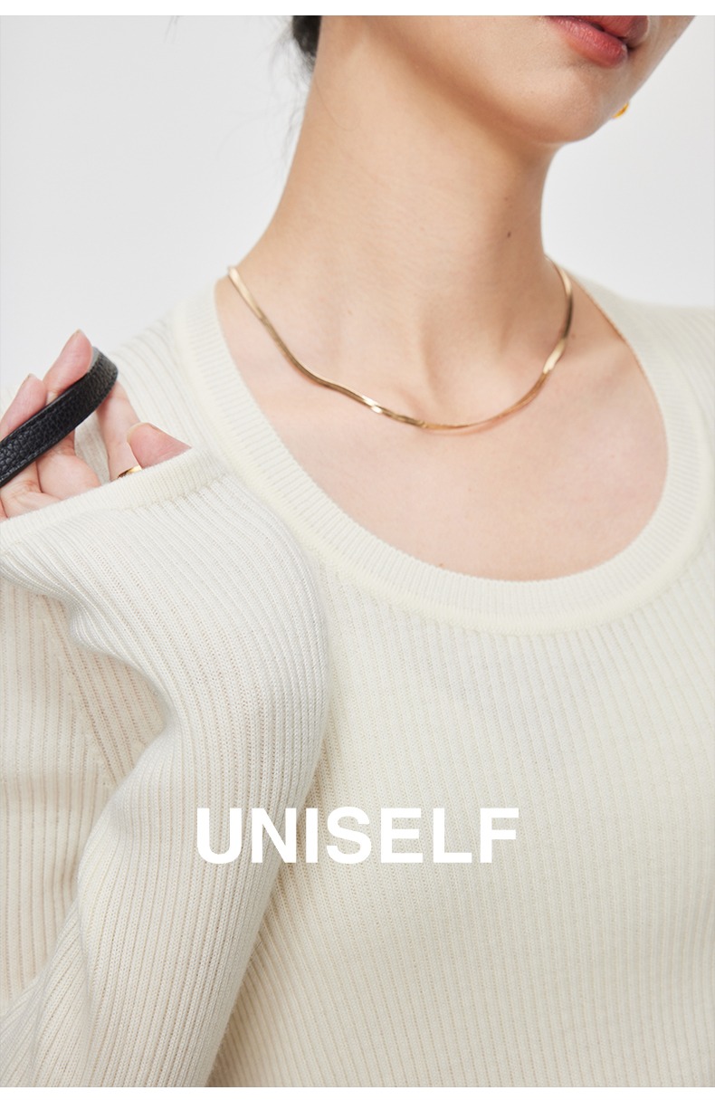 全羊毛水滴领打底上衣女2023冬季新款修身百搭长袖针织衫