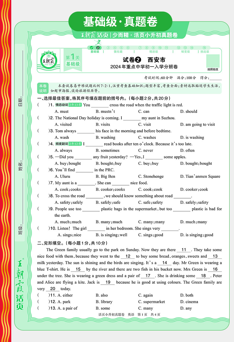 2025王朝霞活页小升初真题卷语数英各地真题试卷综合能力验收卷
