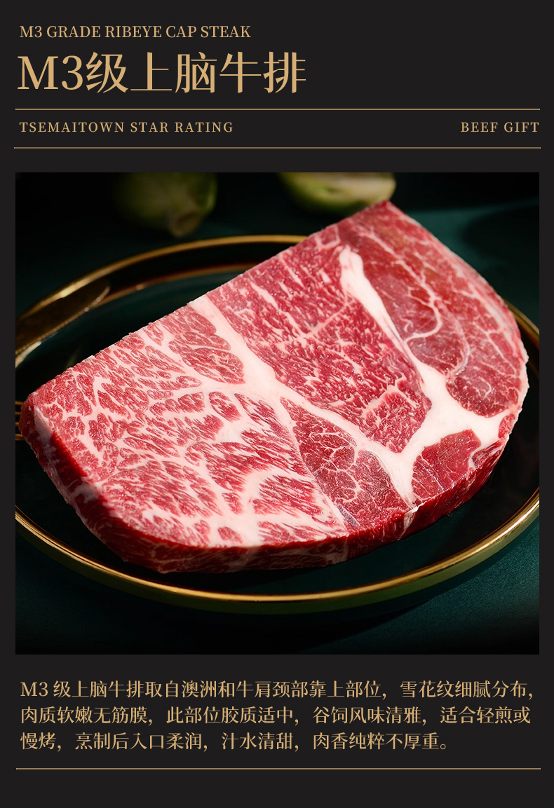 【顺丰特快】澳洲进口精选原切顶级牛排 肉质鲜嫩多汁 独特礼盒设计 - AXMT