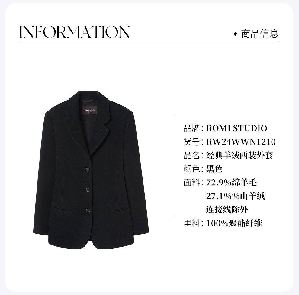 ROMI STUDIO“棕标甄选”山羊绒绵羊毛混纺经典西装外套RW24WWN1210