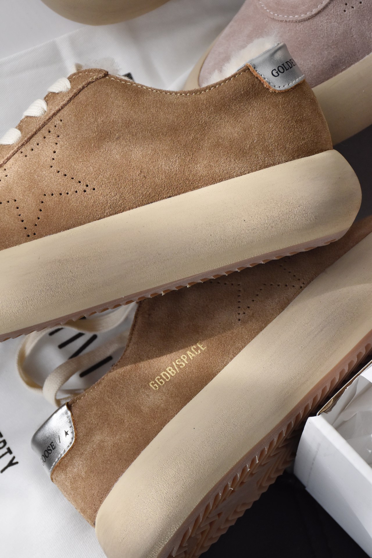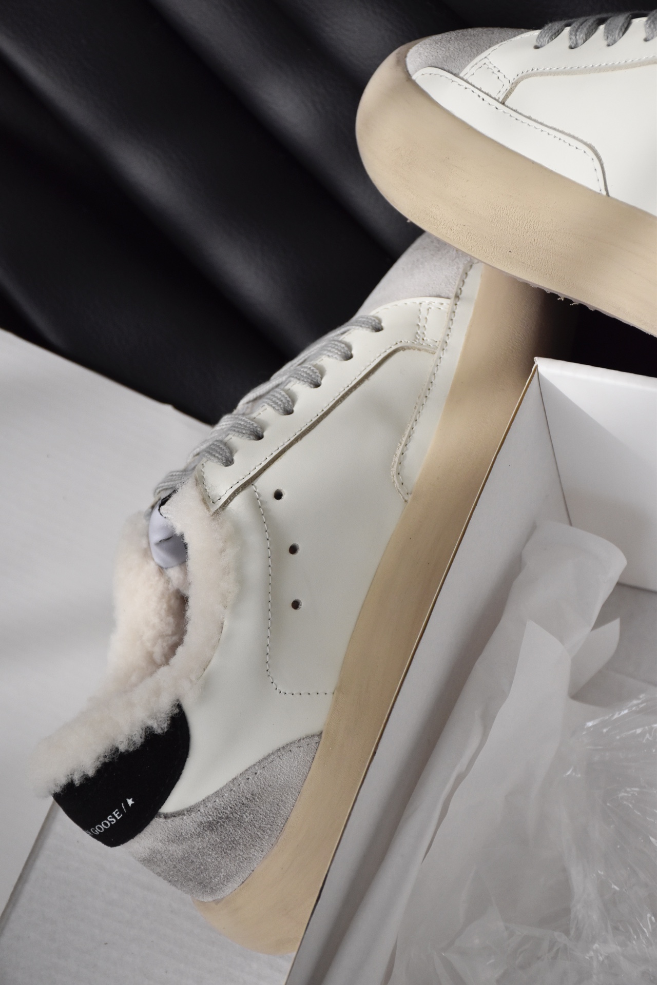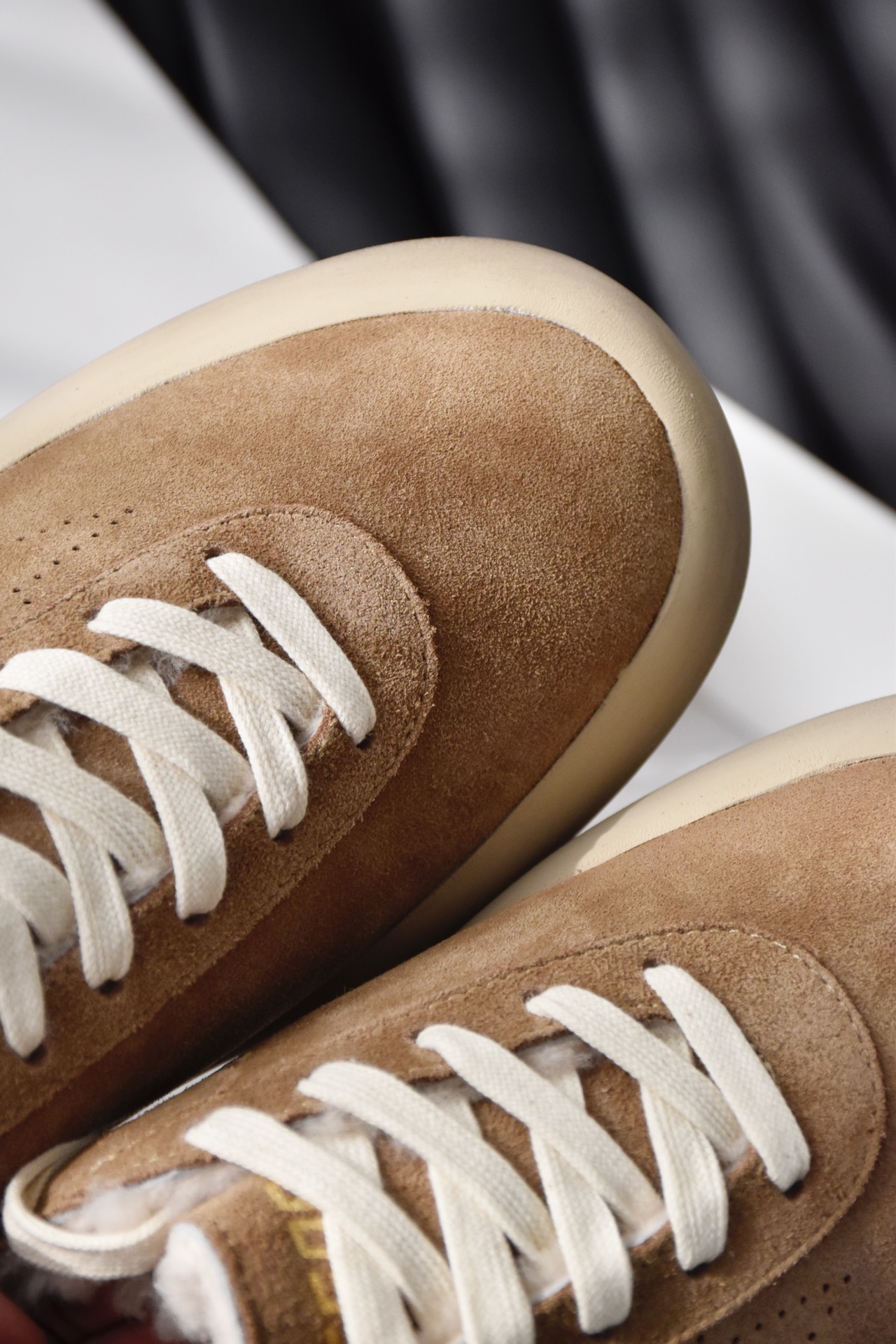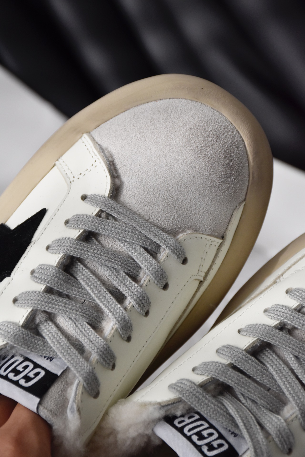 鞋面采用的依旧是定制的进口羊京皮+牛皮+格利特星星,所以无论是整面的质感,还是触感都非常的出色,搭配轻微的手工打磨做旧,越穿越软越舒服 越旧越好看