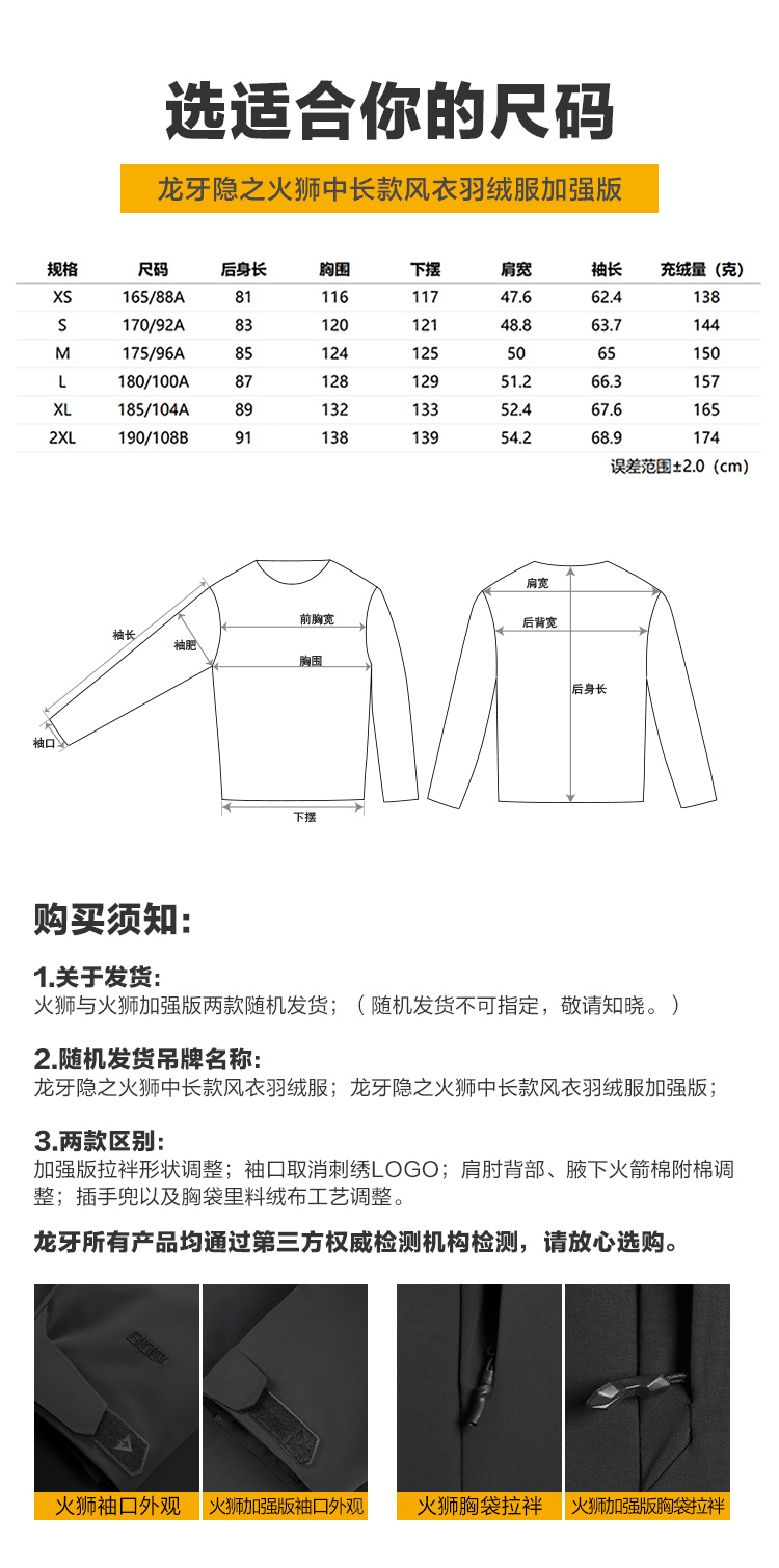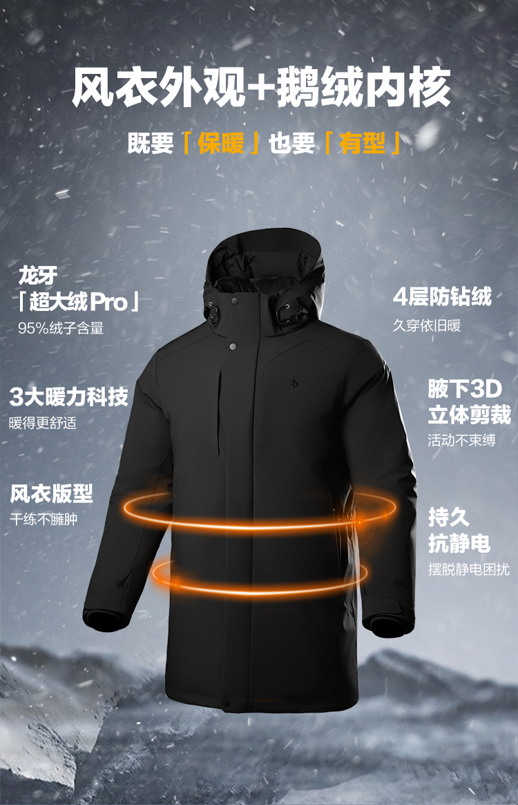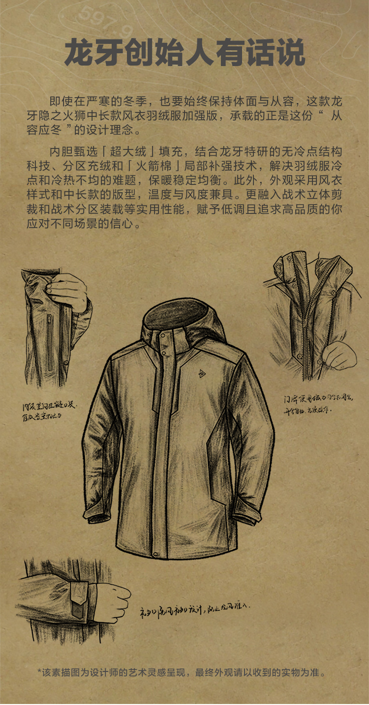 【龙牙上新】加强版龙牙隐之火狮中长款风衣羽绒服加强版