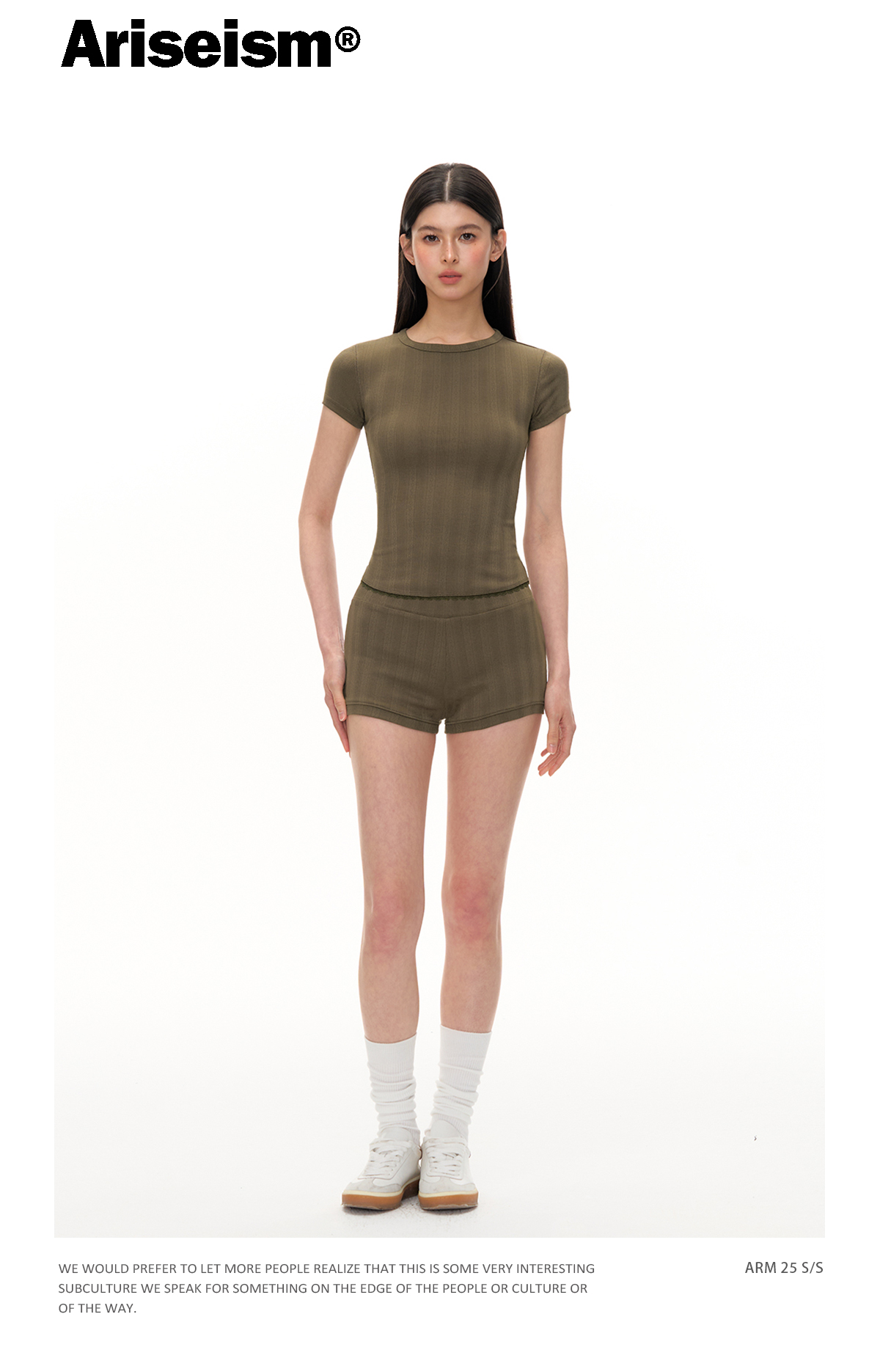 Ariseism 美式复古短袖+短裤女两件套套装女夏季新款