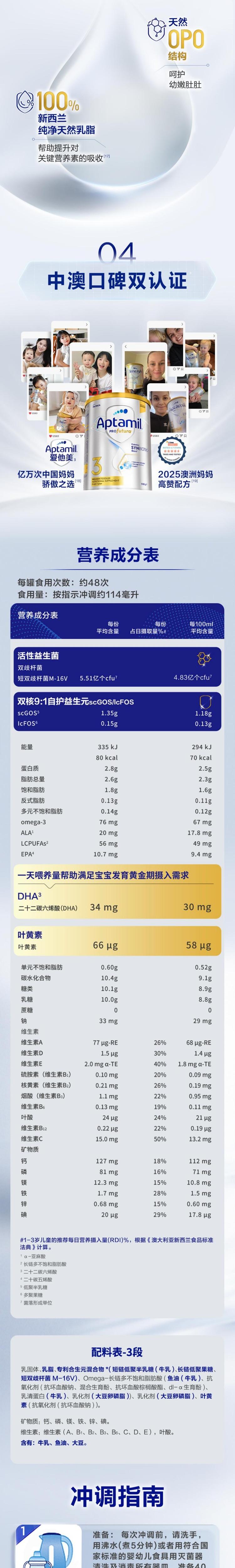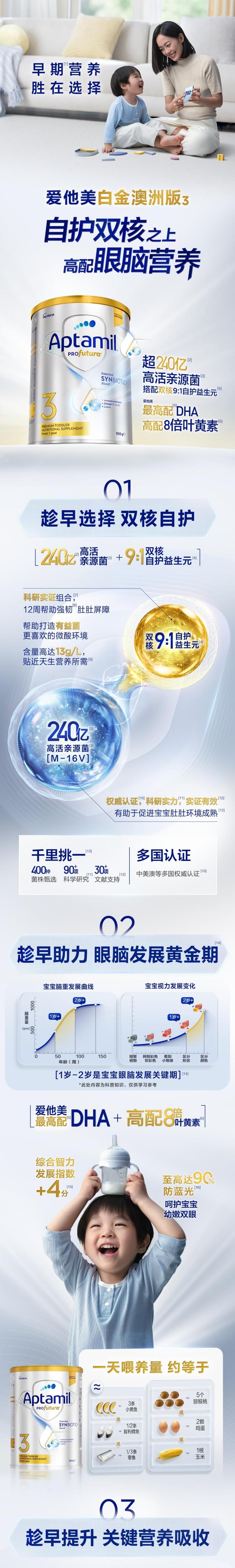 【品牌直供】澳洲Aptamil爱他美 白金版幼儿配方奶粉 3段 1-3周岁 900g【超过6罐请分开下单】