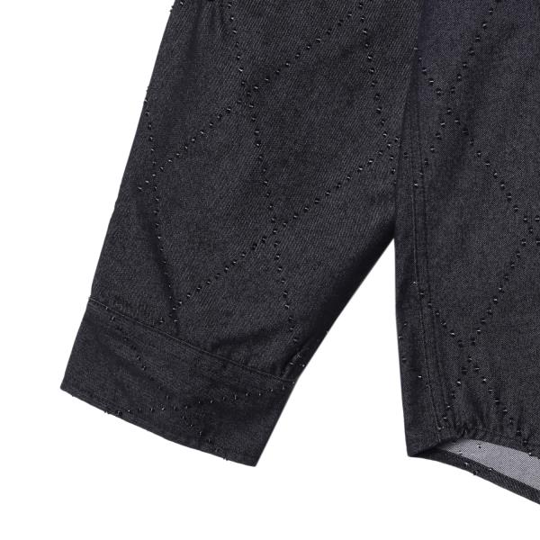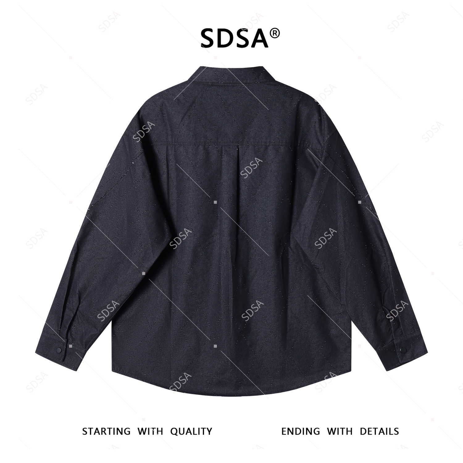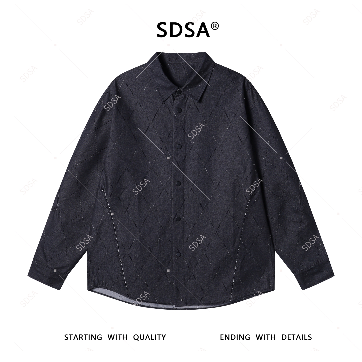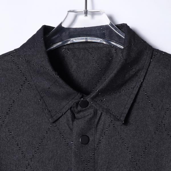 53223SDSA男士2025新款轻奢痞帅男装美式烫钻菱形纽扣开衫衬衫百搭衬衣