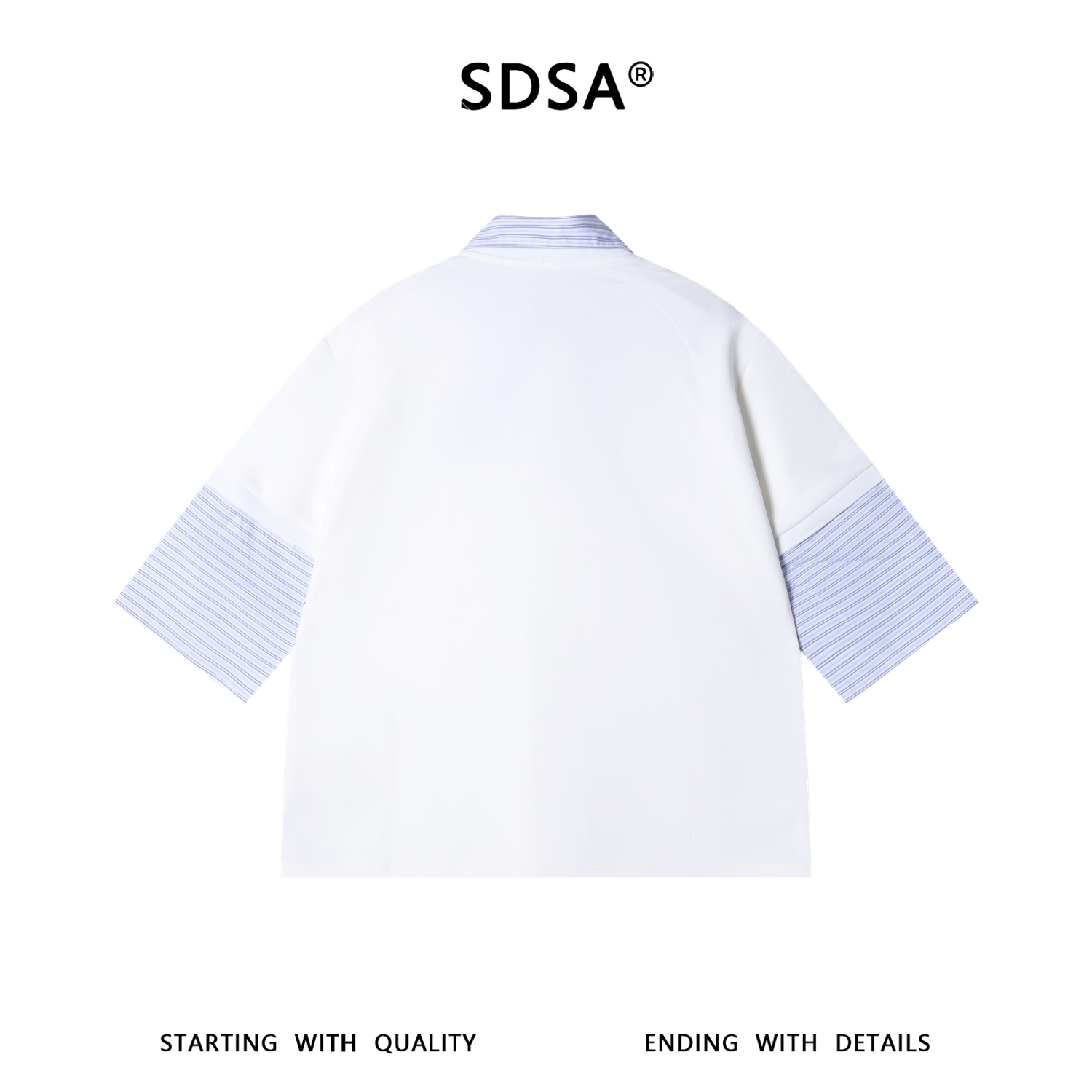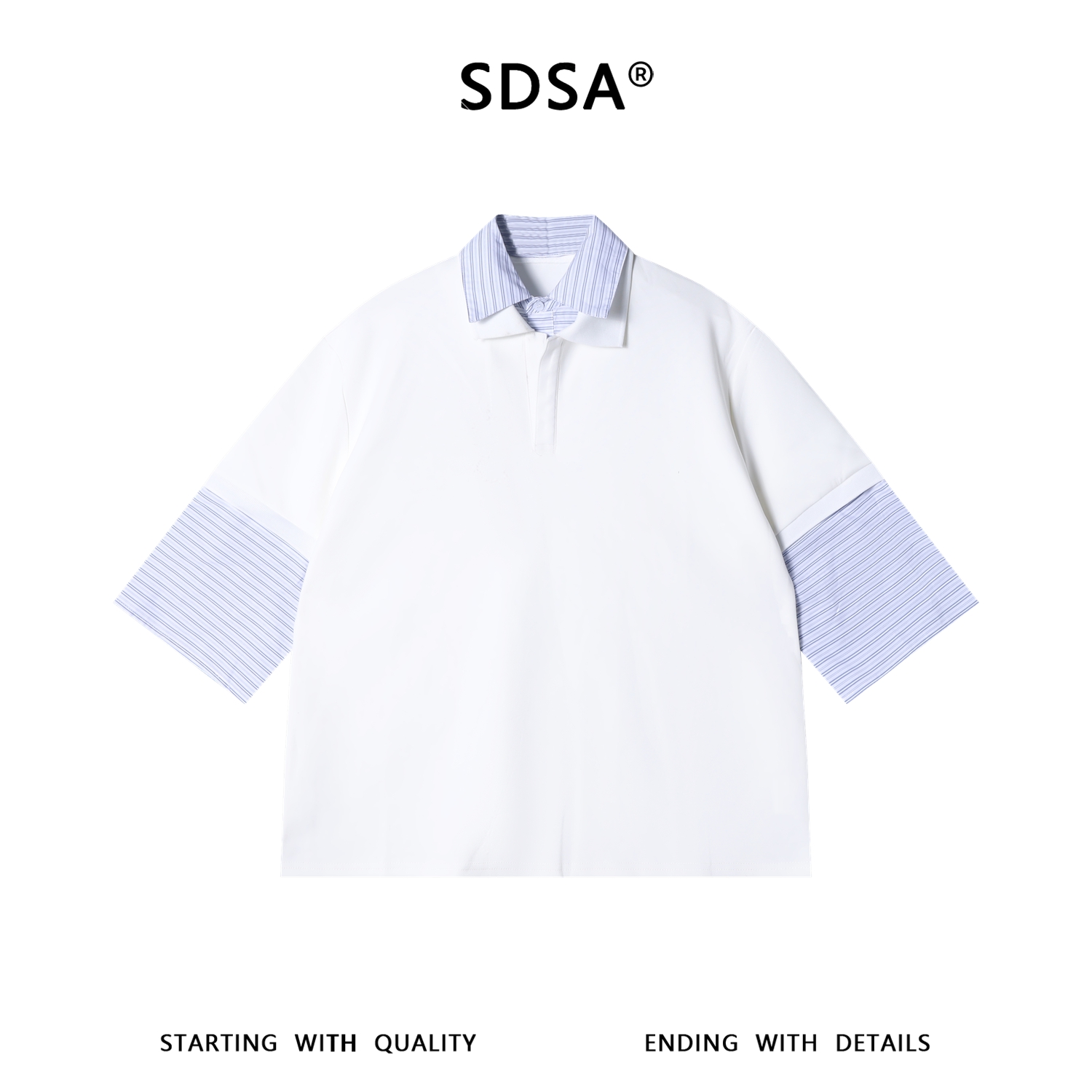 SDSA男装2026新款高贵轻奢假两件条纹拼接翻领小众设计感宽松短袖