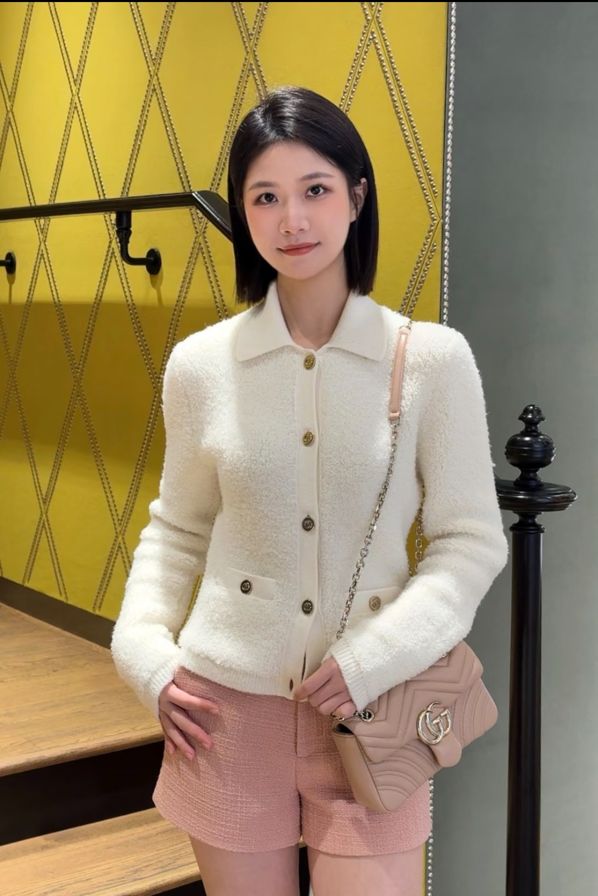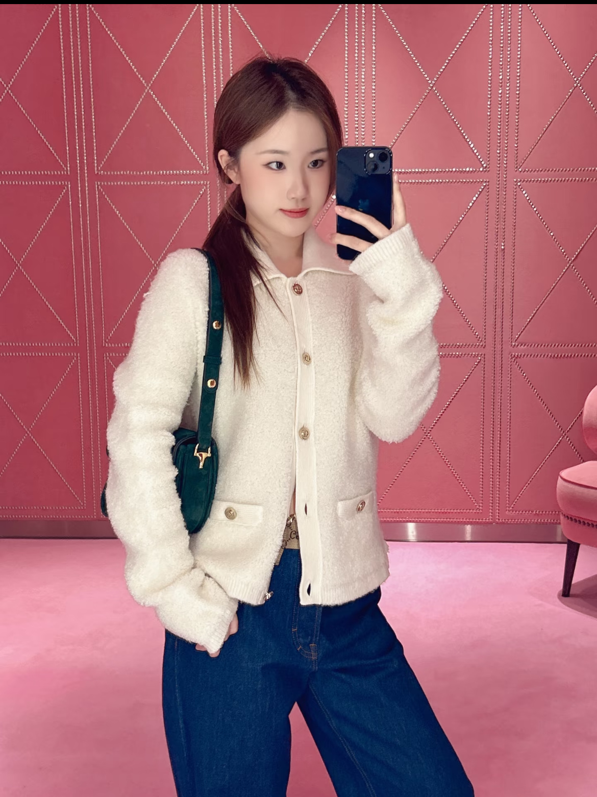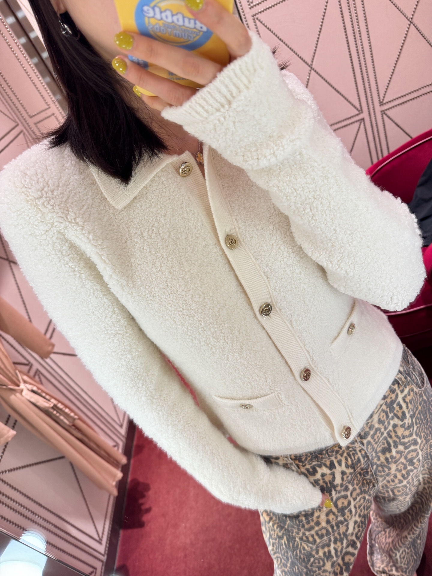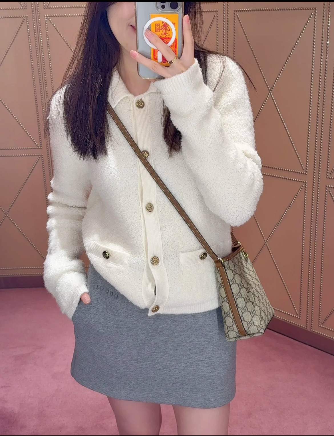 新品 软软糯糯的白色针织外套, 白月光穿搭,简简单单超级耐看,具有柔软保暖的舒适感,上身效果简直绝绝子,细节拿捏的死死的,定织定染纱线🧶高克重高密度,独特的纹理更是赋予了衣服复古又贵气的质感,超级显白,真的是一整个爱住😍上身之后真的会被惊艳到,巨巨巨好看💥长袖毛衣可单穿也可以当作小开衫穿🎀超级有质感👏🏻精致女生必备💕码数SML