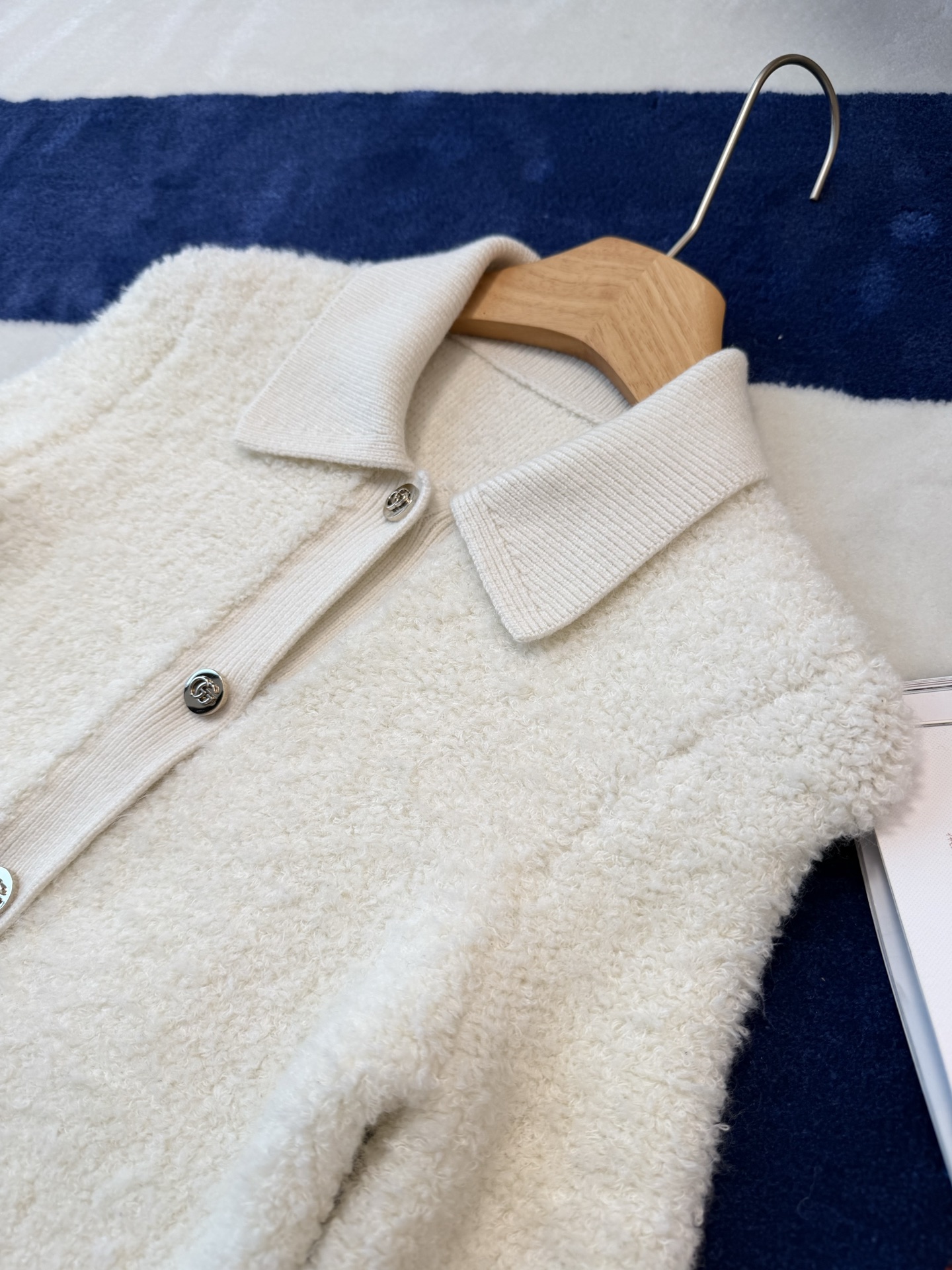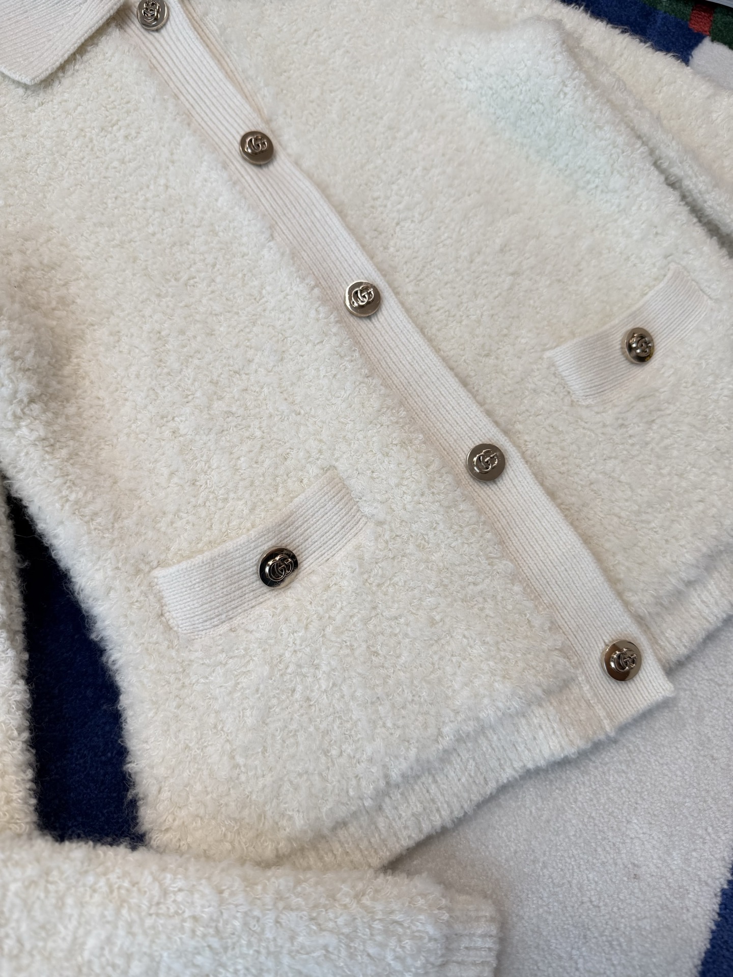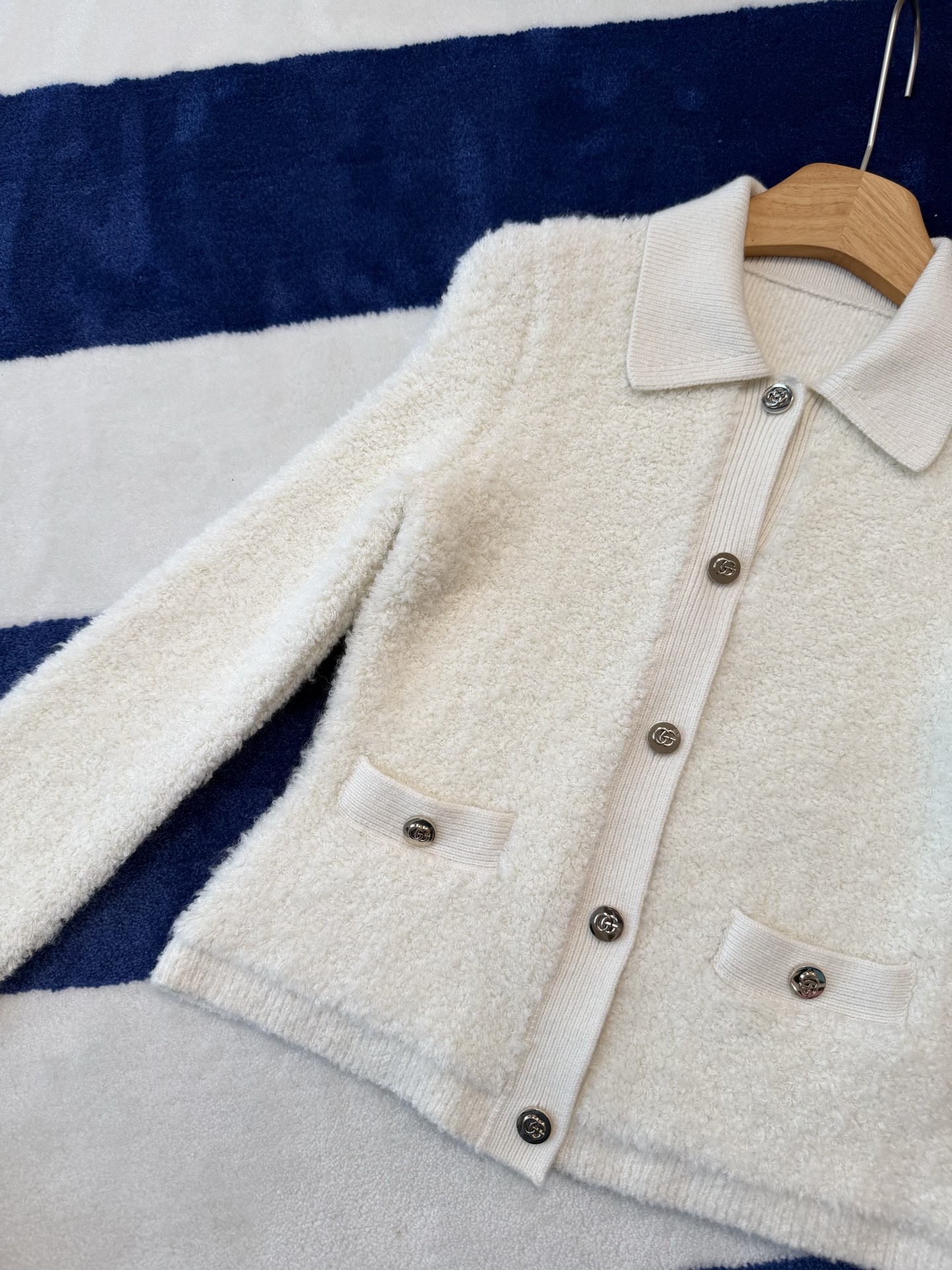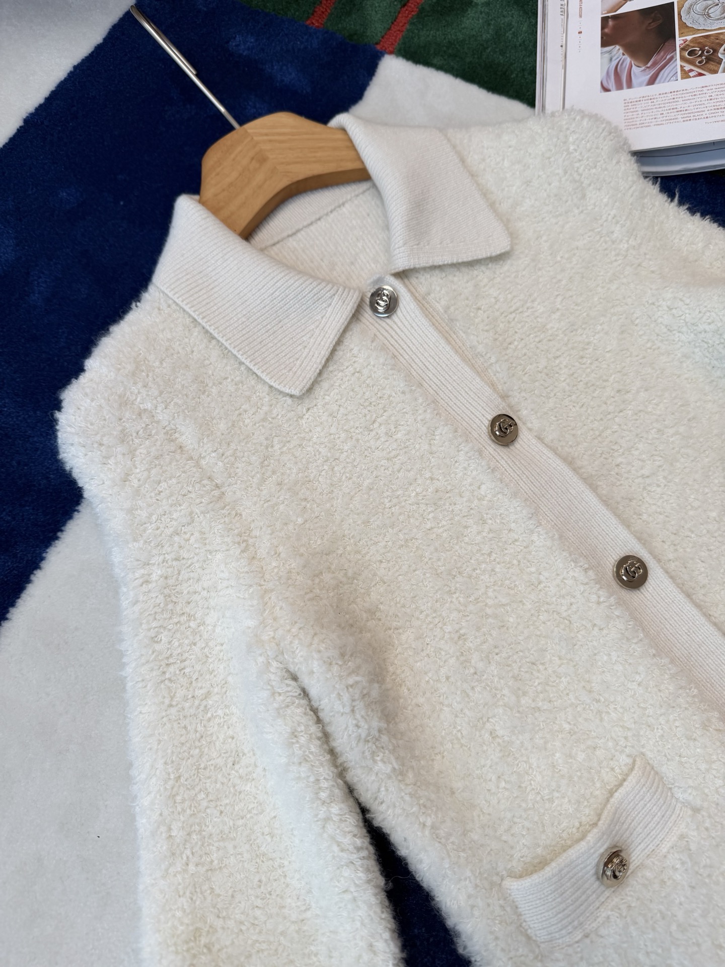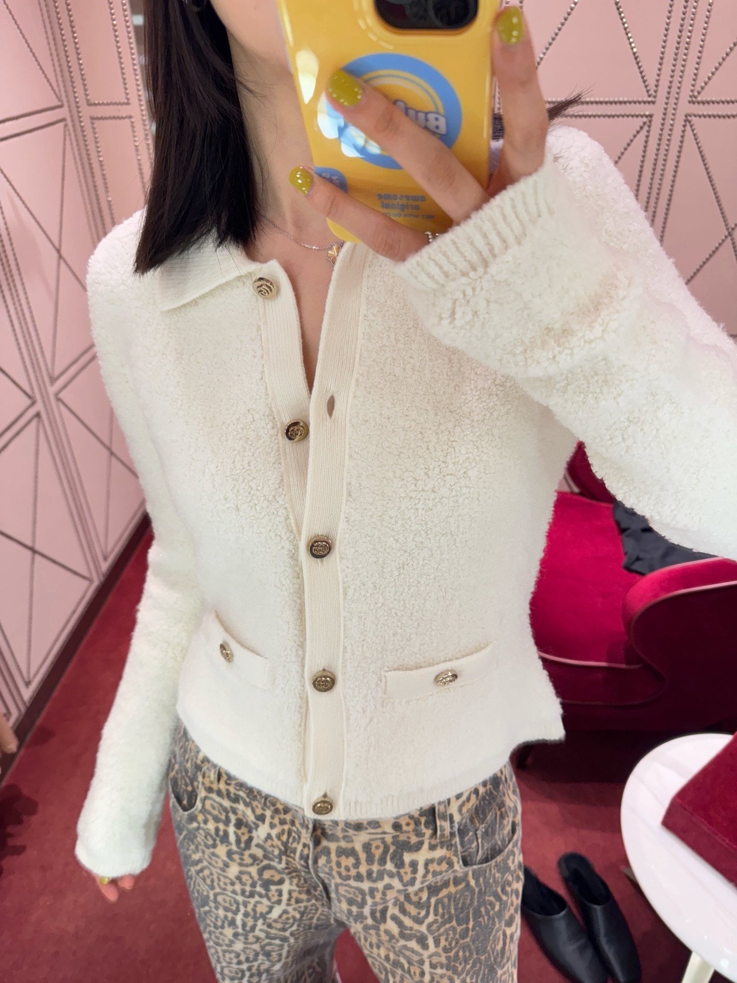 新品 软软糯糯的白色针织外套, 白月光穿搭,简简单单超级耐看,具有柔软保暖的舒适感,上身效果简直绝绝子,细节拿捏的死死的,定织定染纱线🧶高克重高密度,独特的纹理更是赋予了衣服复古又贵气的质感,超级显白,真的是一整个爱住😍上身之后真的会被惊艳到,巨巨巨好看💥长袖毛衣可单穿也可以当作小开衫穿🎀超级有质感👏🏻精致女生必备💕码数SML