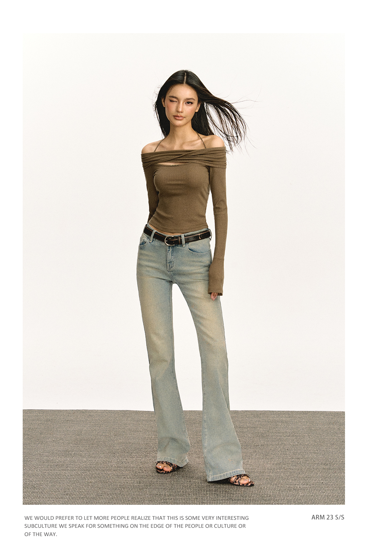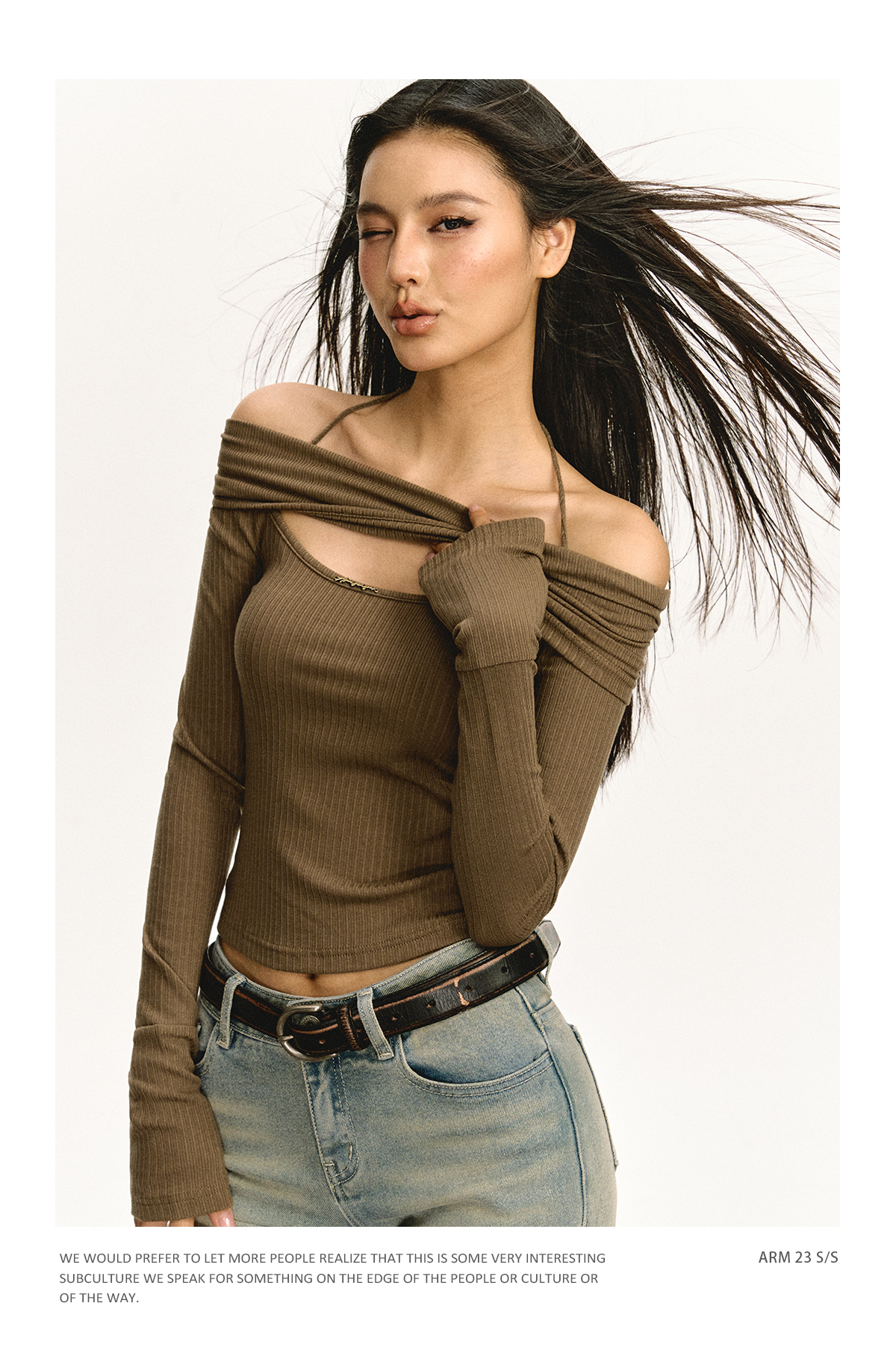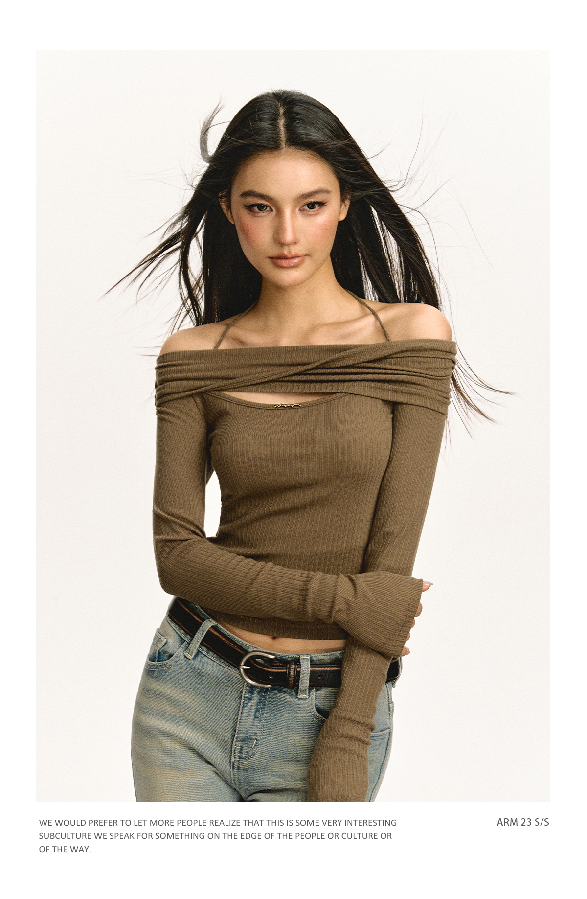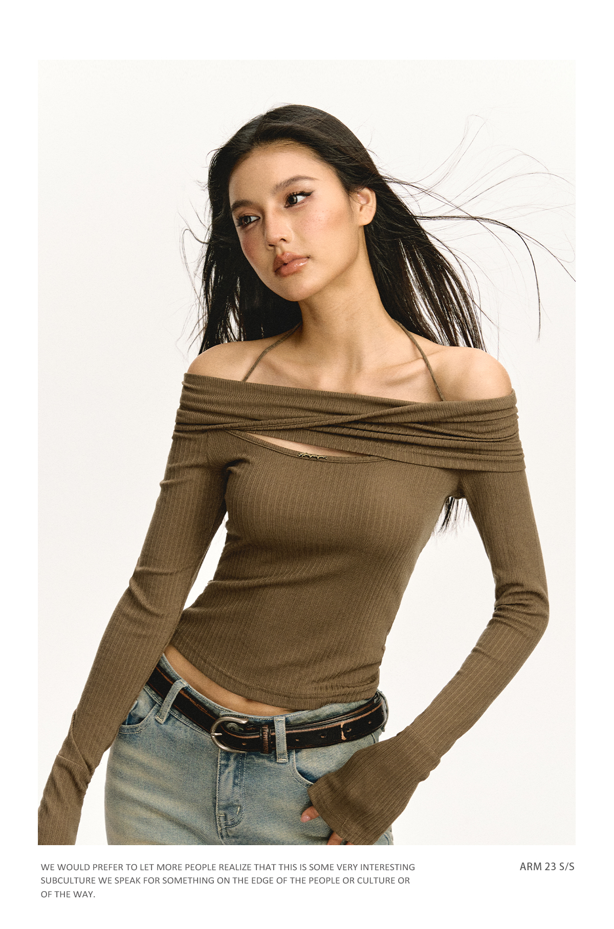 Ariseism 美式复古设计感修身露肩针织开衫女春季新款修身上衣