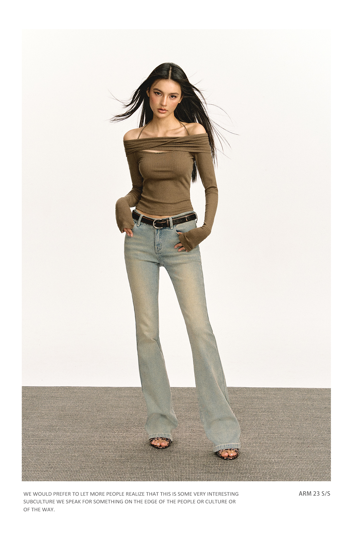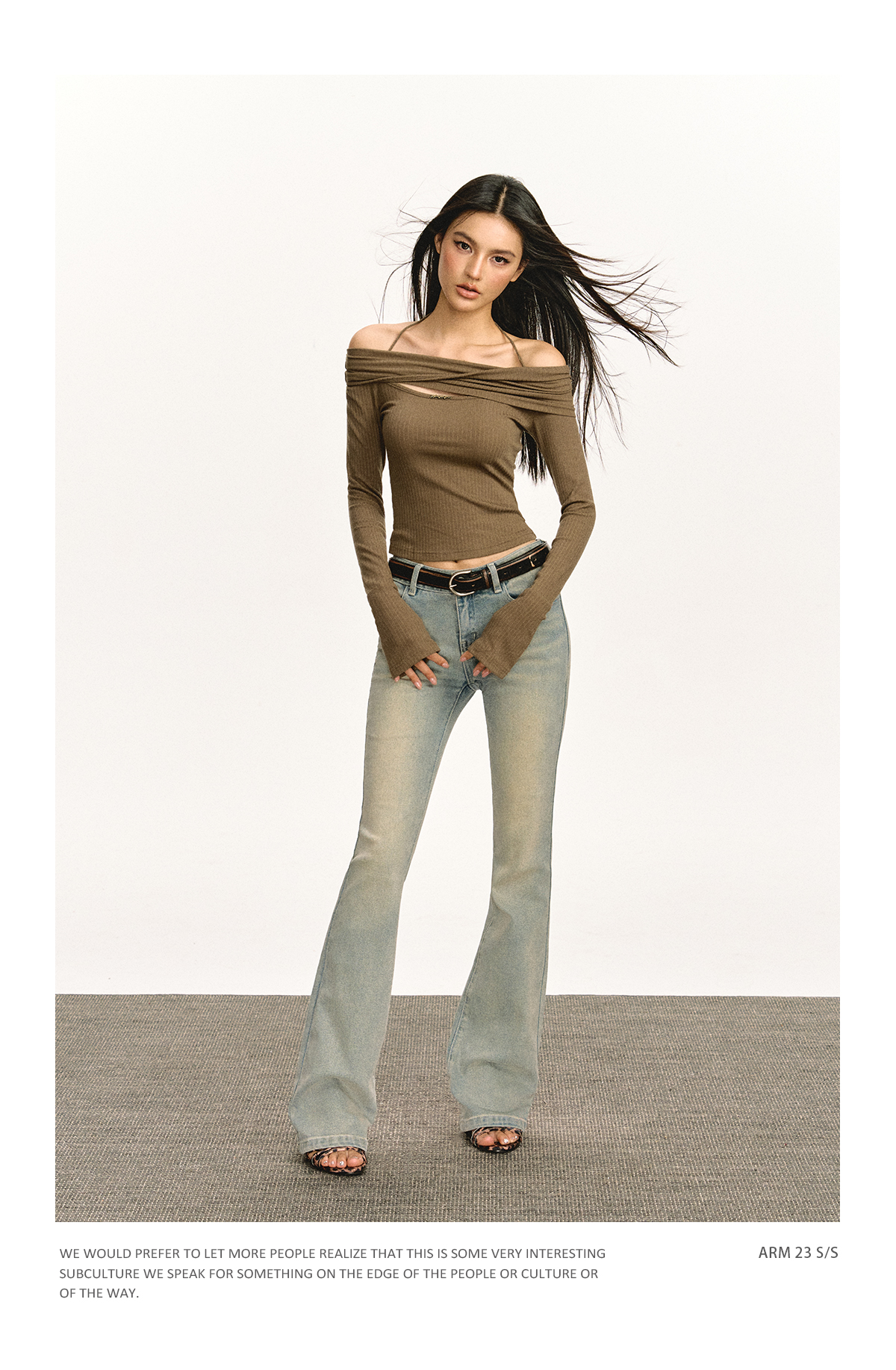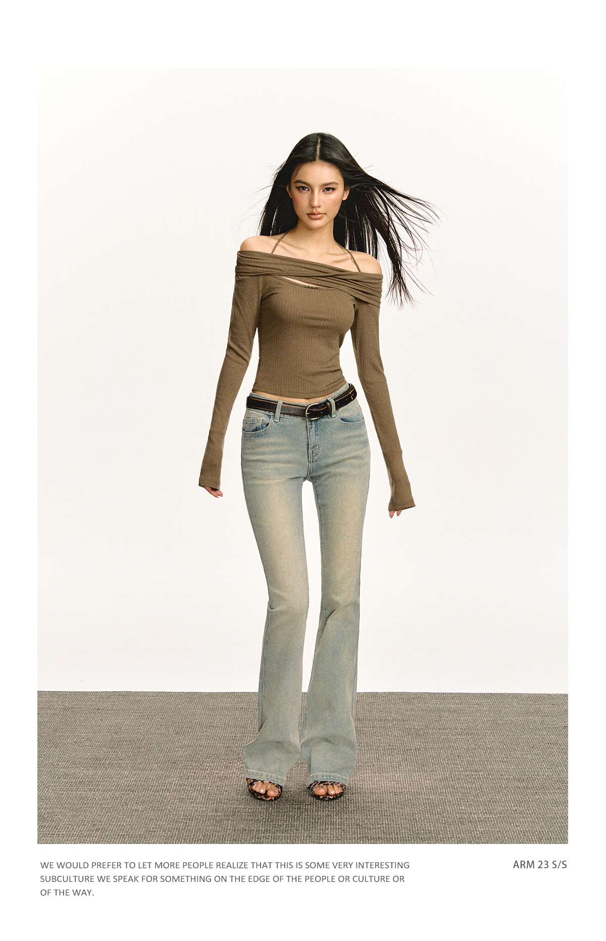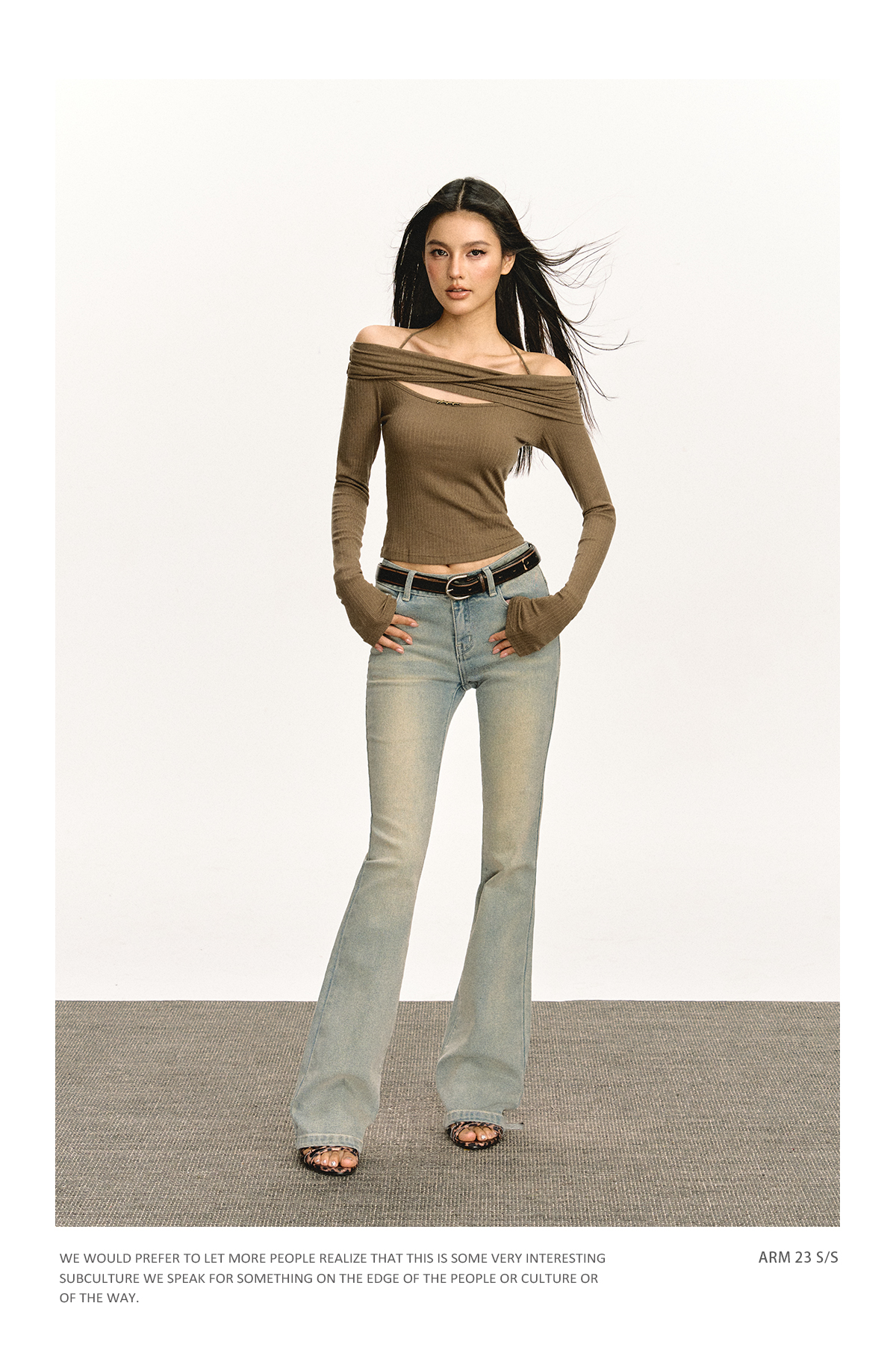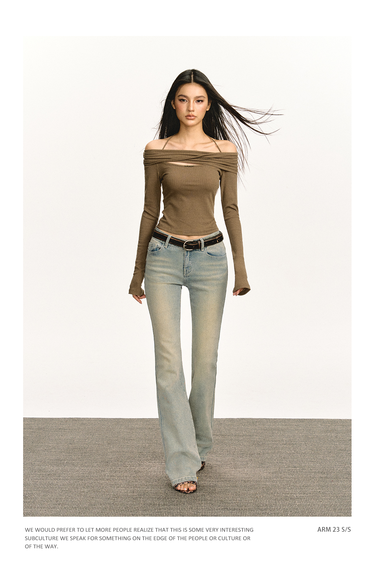 Ariseism 美式复古设计感修身露肩针织开衫女春季新款修身上衣