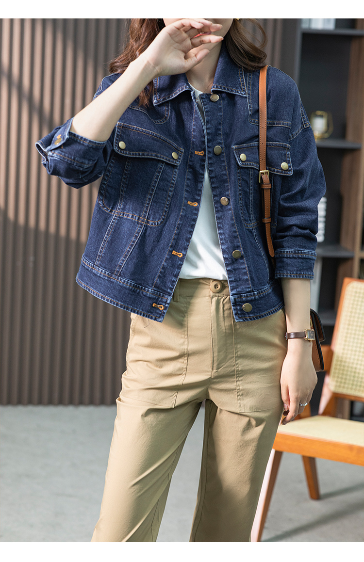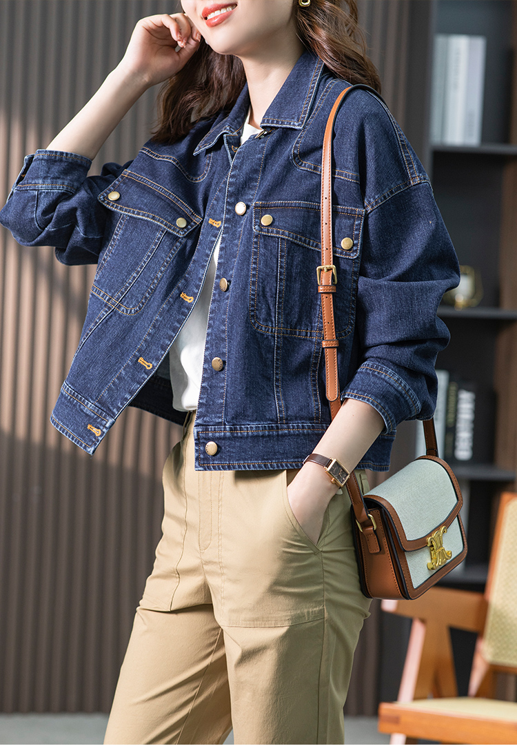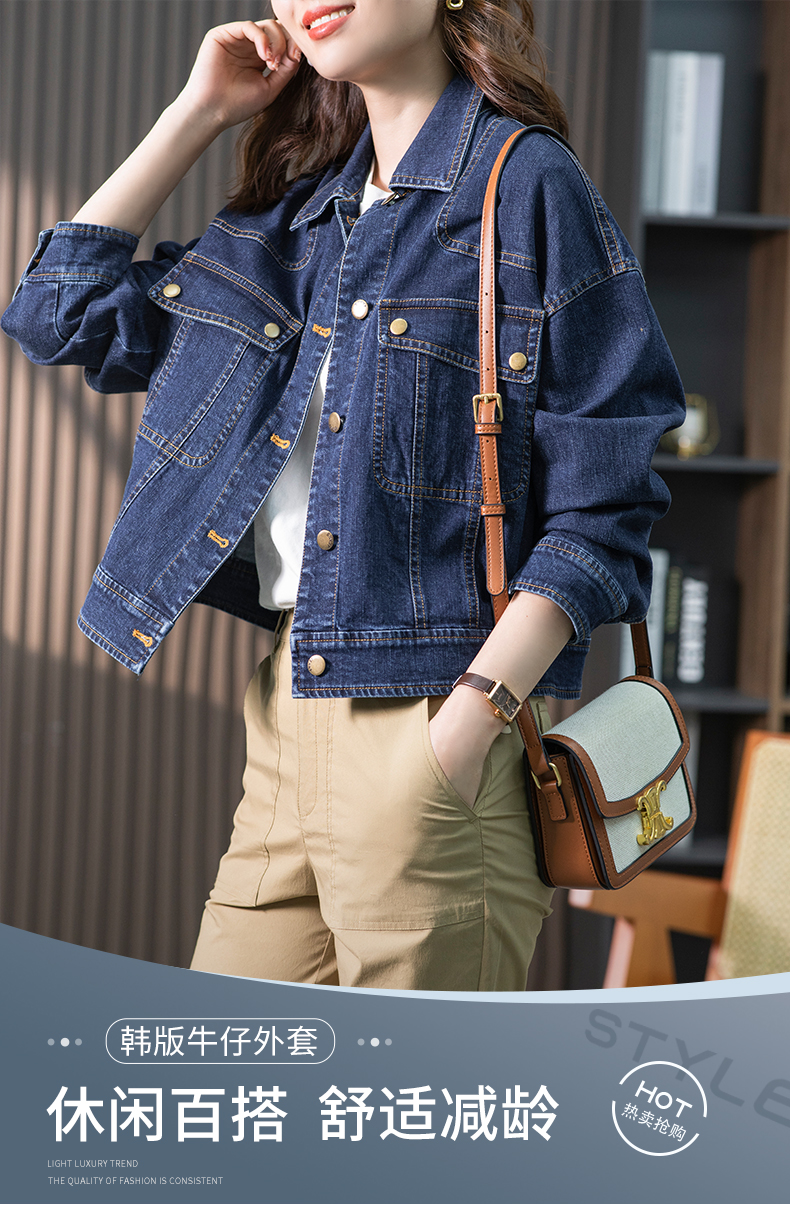 85032原形蓝色牛仔短外套女2024秋装新款韩版休闲小个子通勤短款上衣