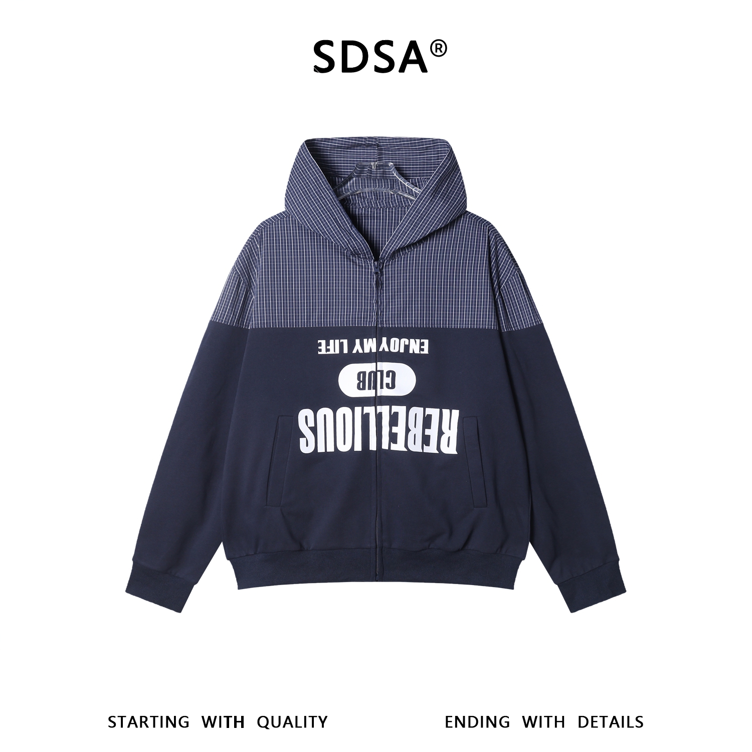 36002SDSA秋冬新款痞帅男装美式拼接撞色印花字母拉链连帽卫衣开衫百搭