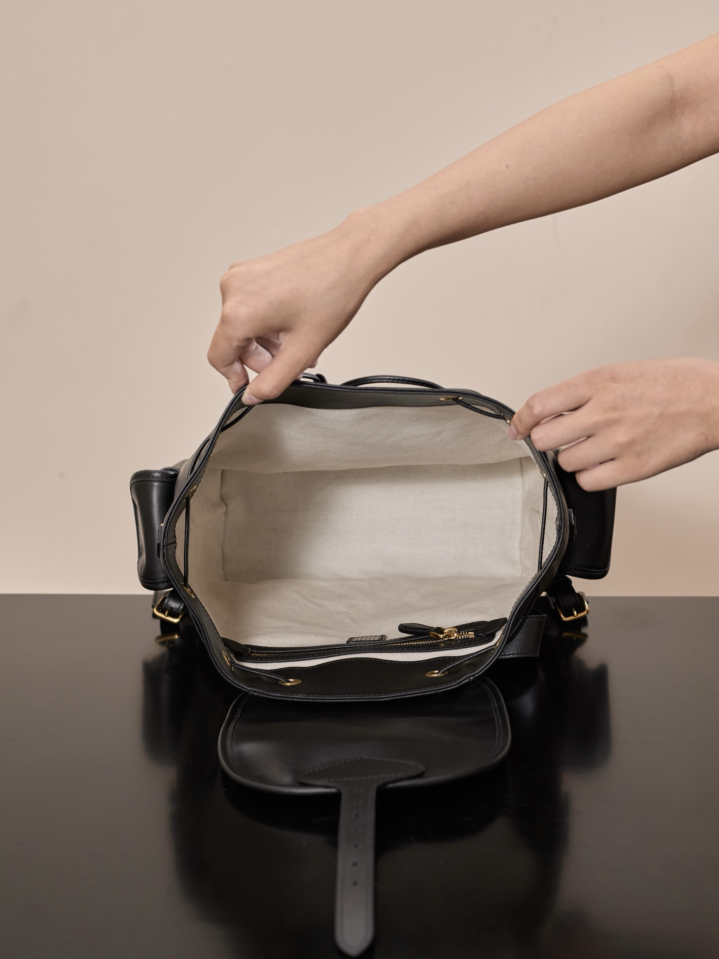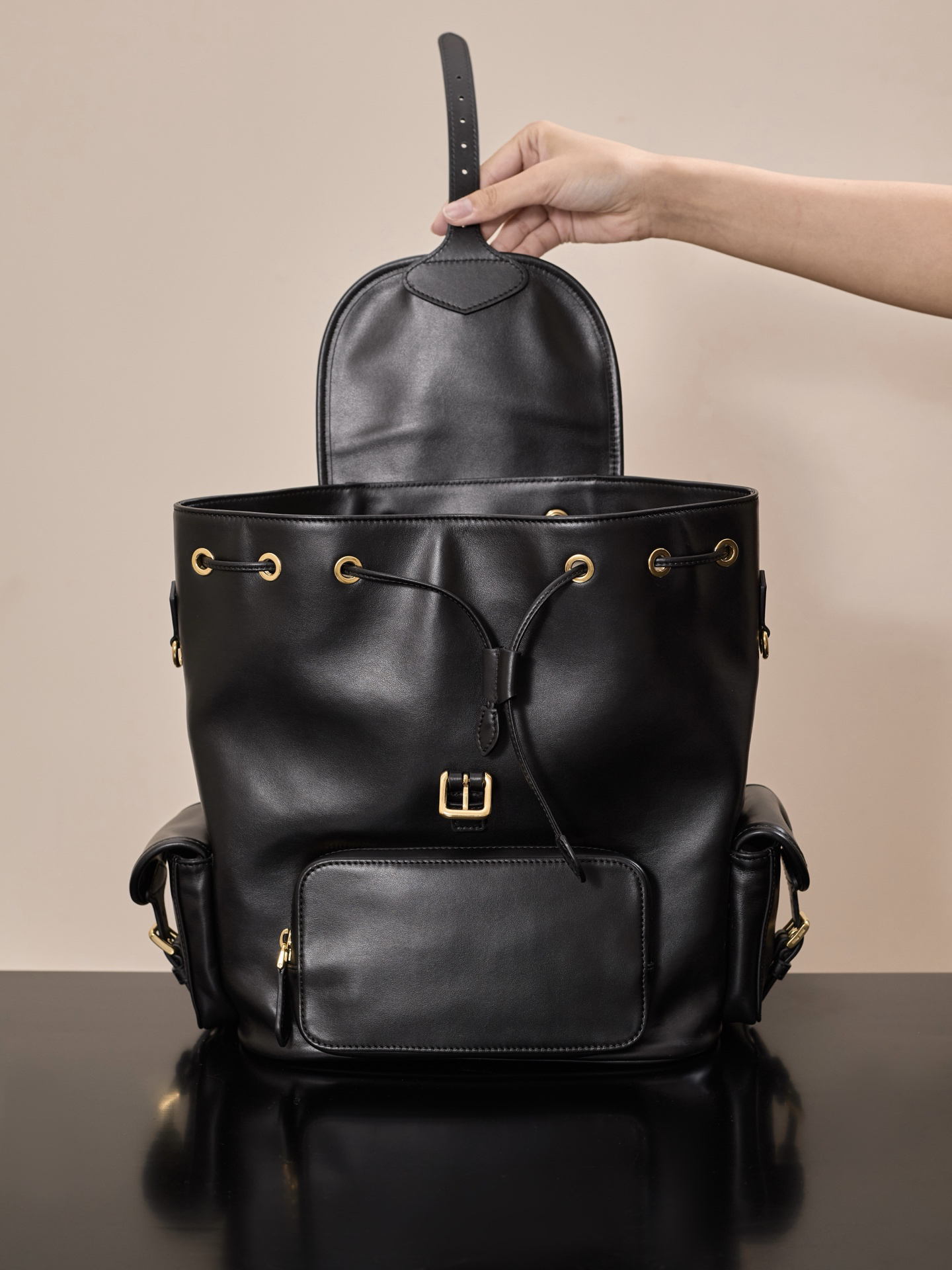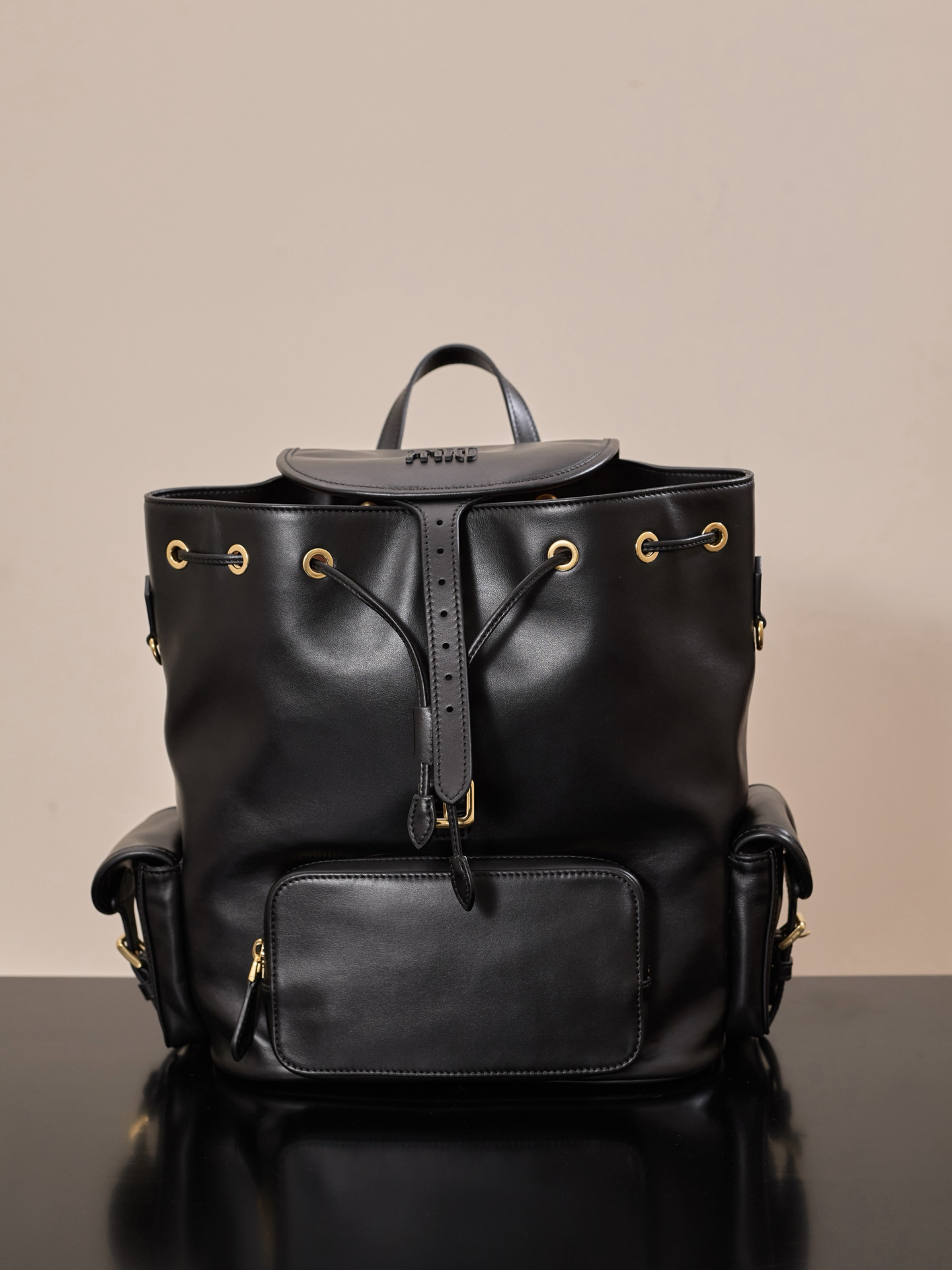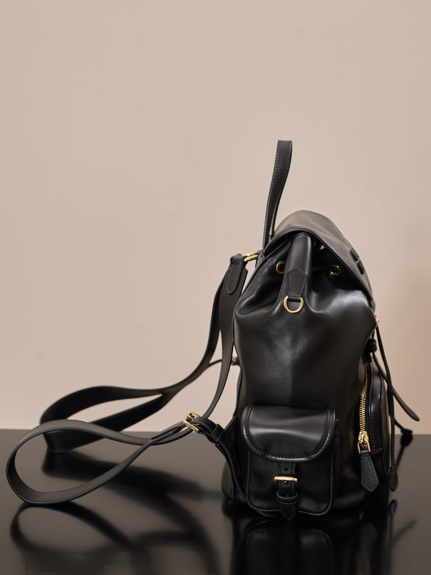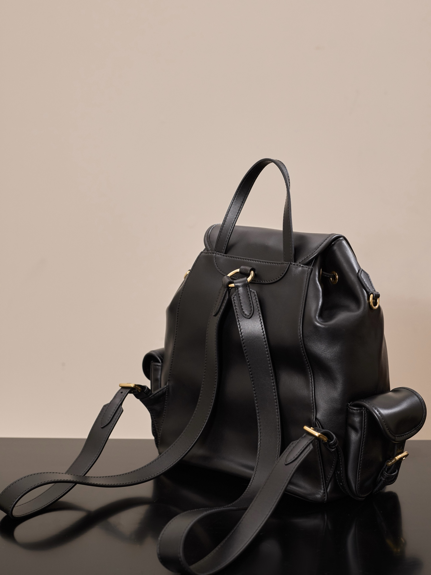 牛皮革双肩包 ˚ෆ*₊黑色