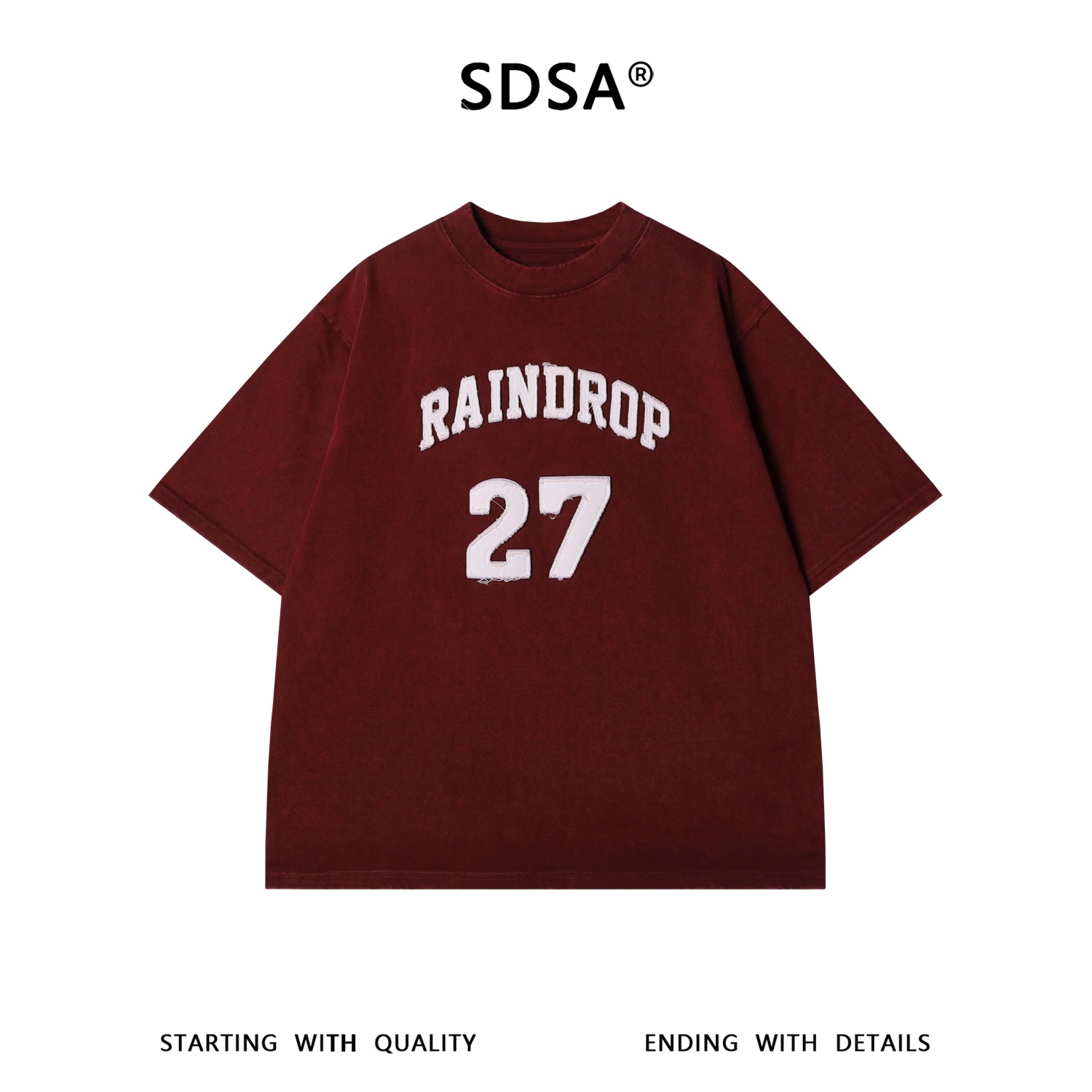 SDSA男装2026新款高贵轻奢美式毛边贴布字母数字做旧圆领短袖T恤
