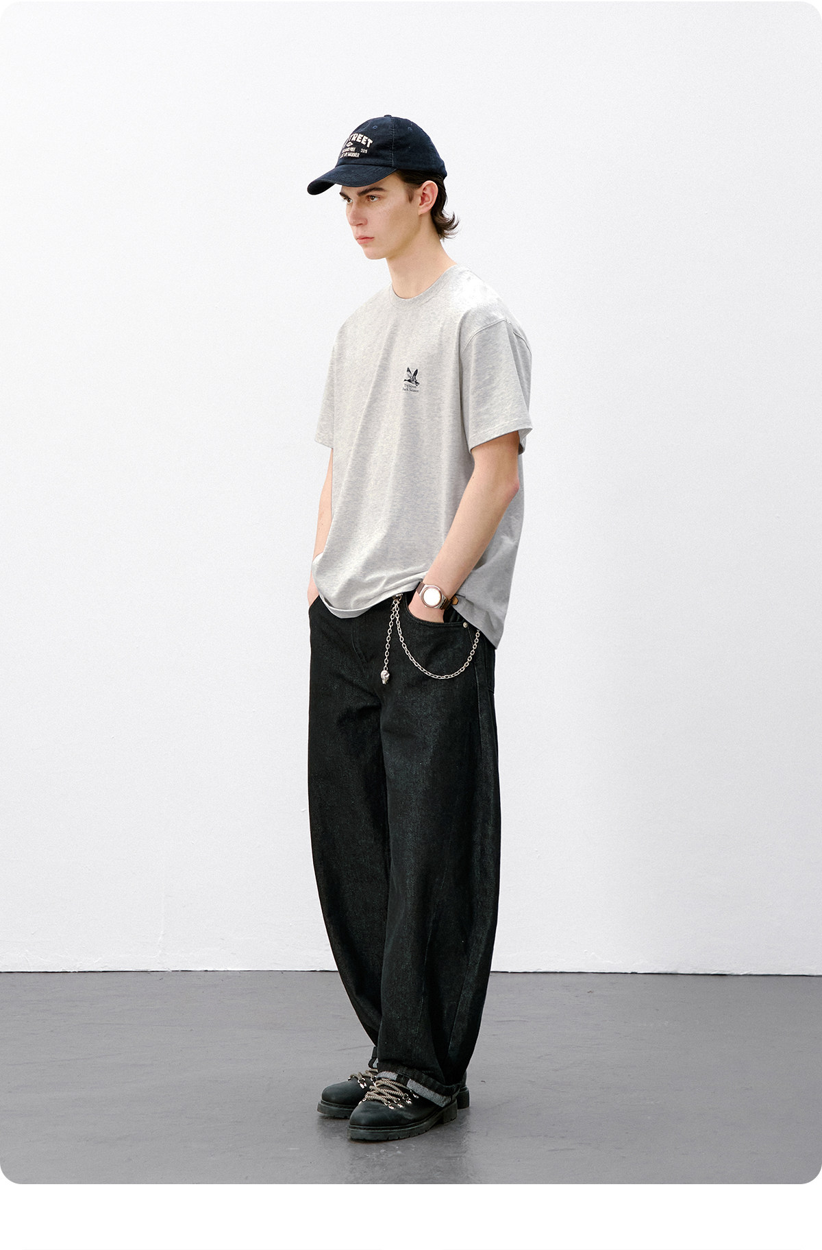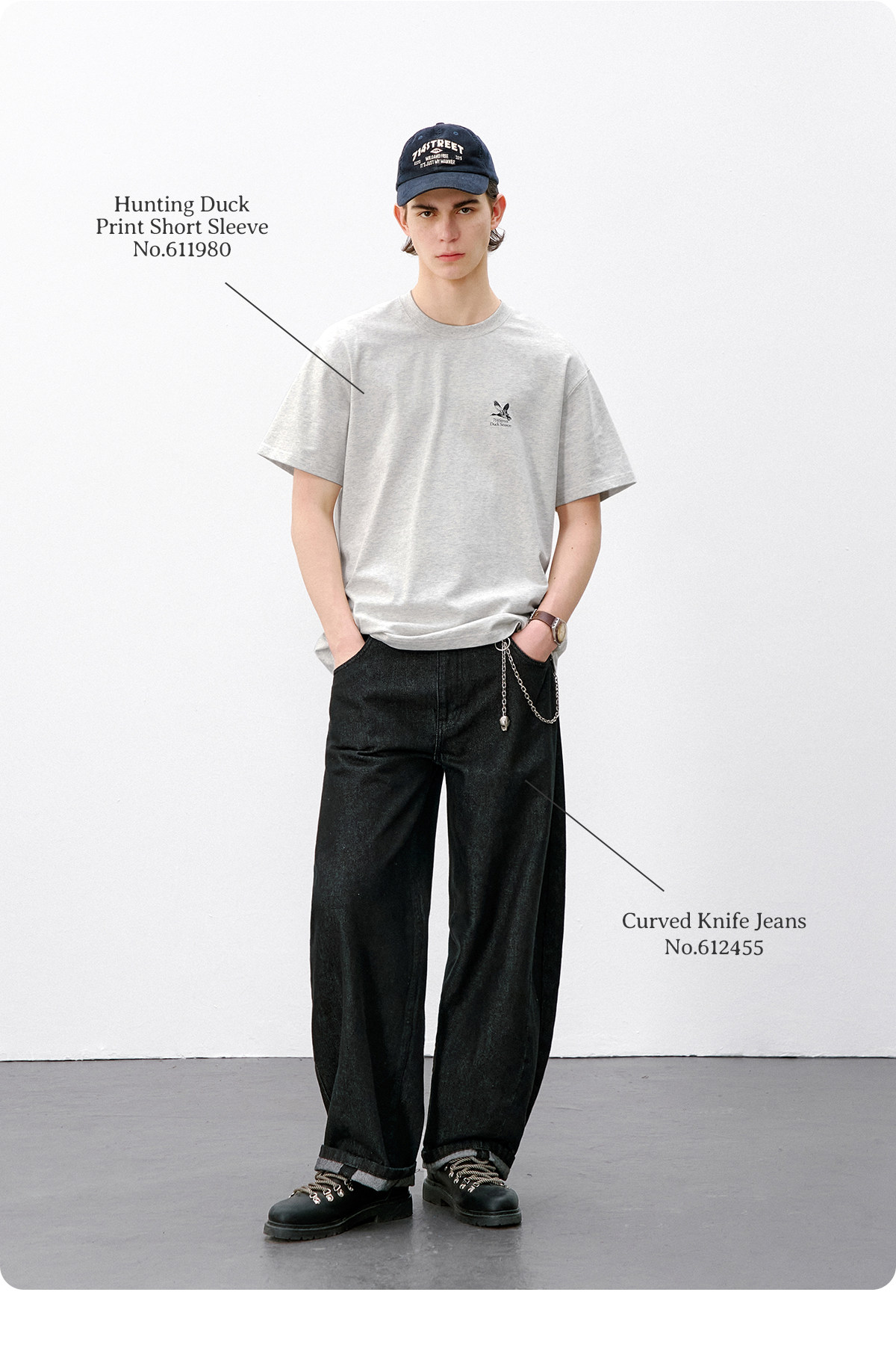 714street水洗纯棉宽松休闲裤男2025秋季新款弯刀裤cleanfit长裤