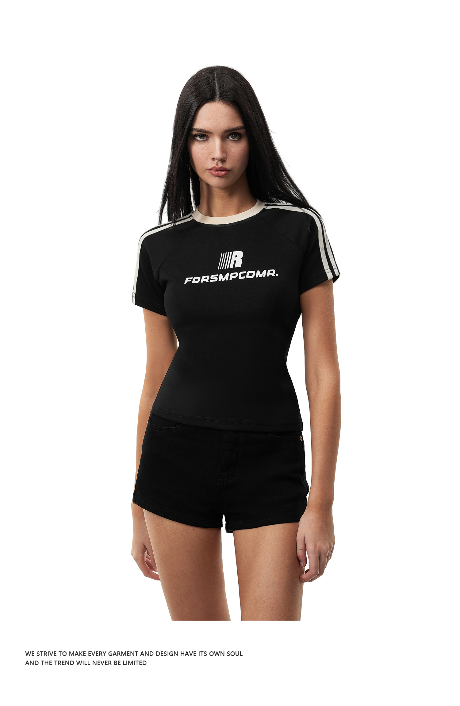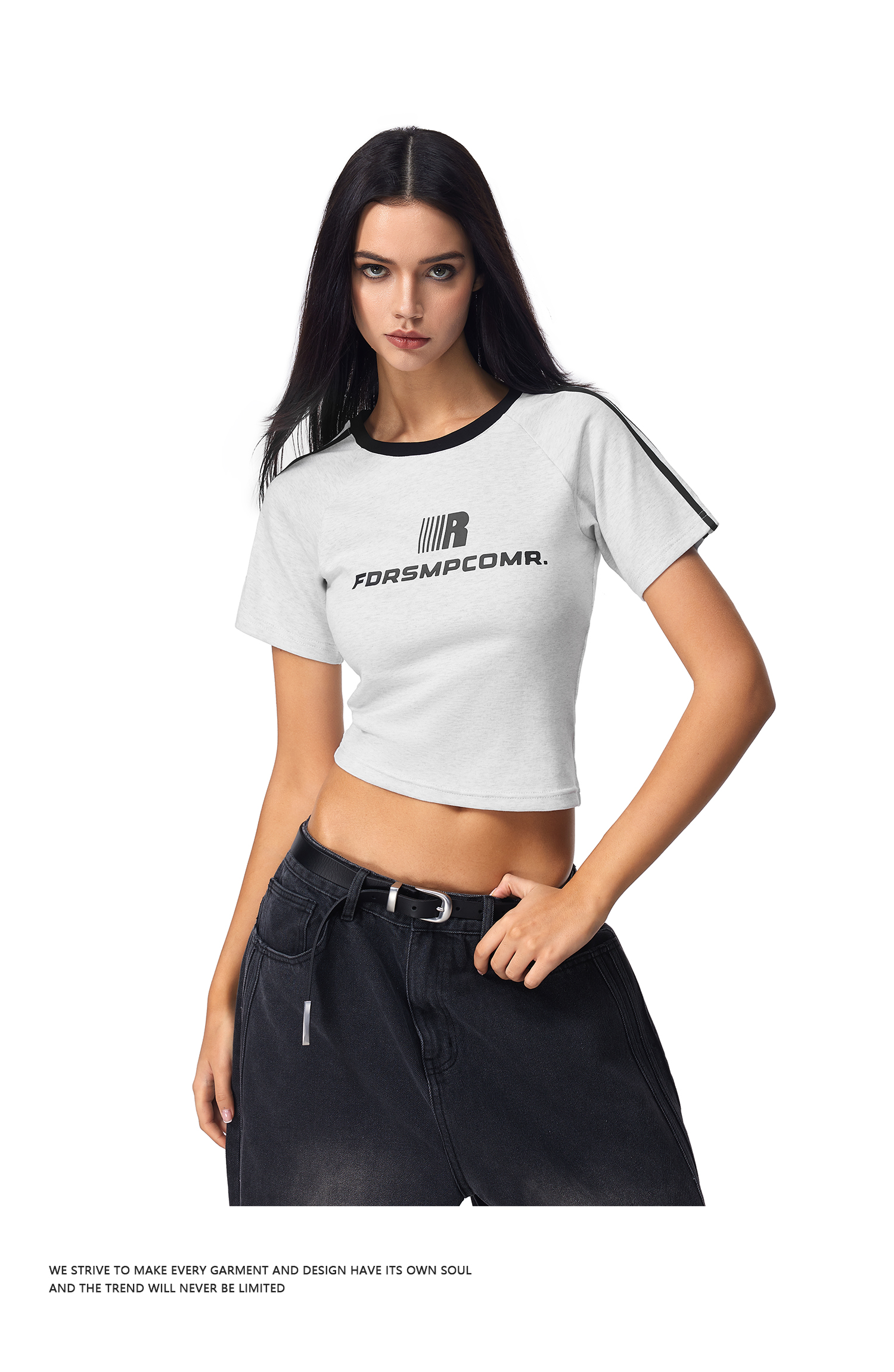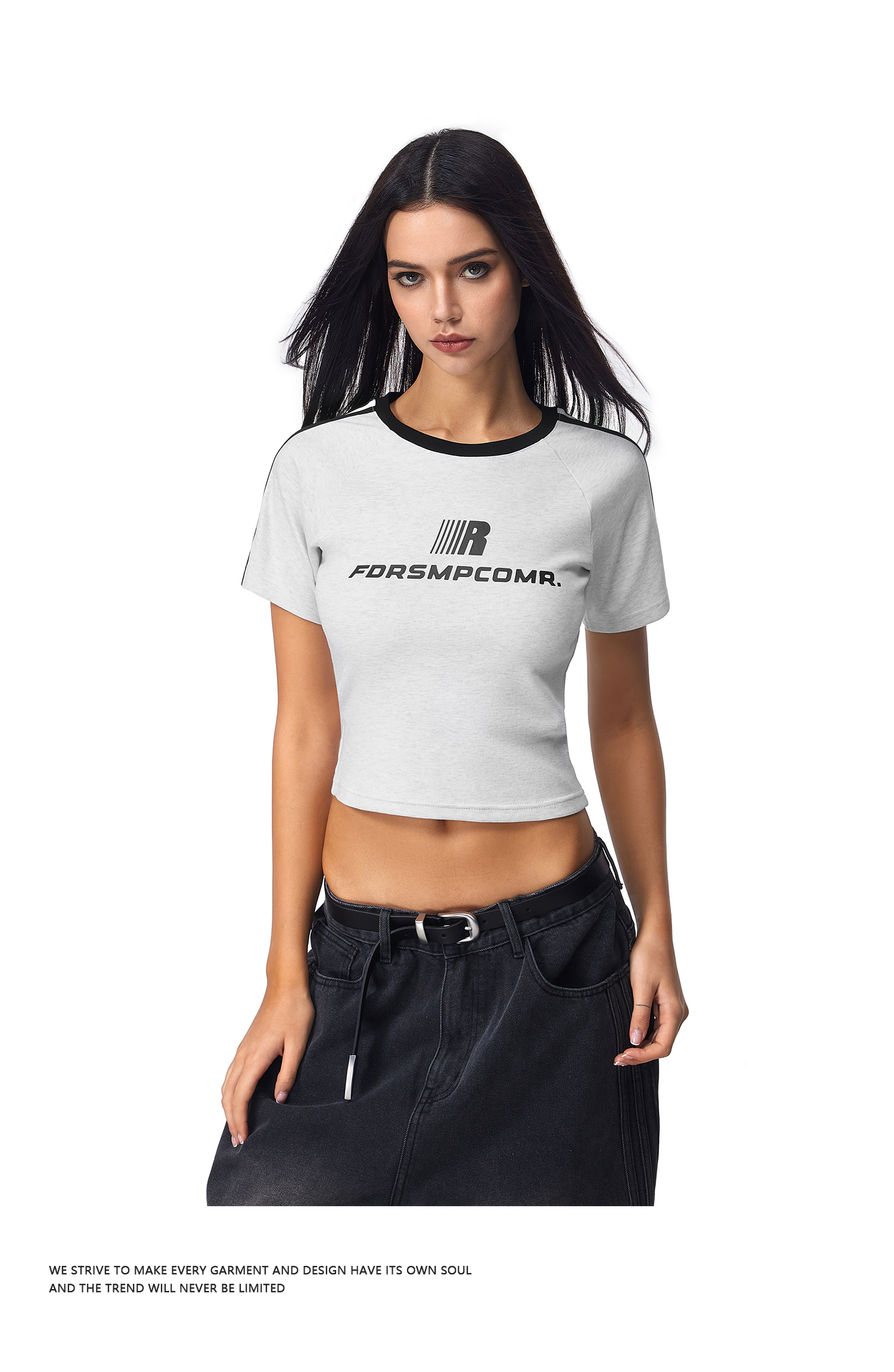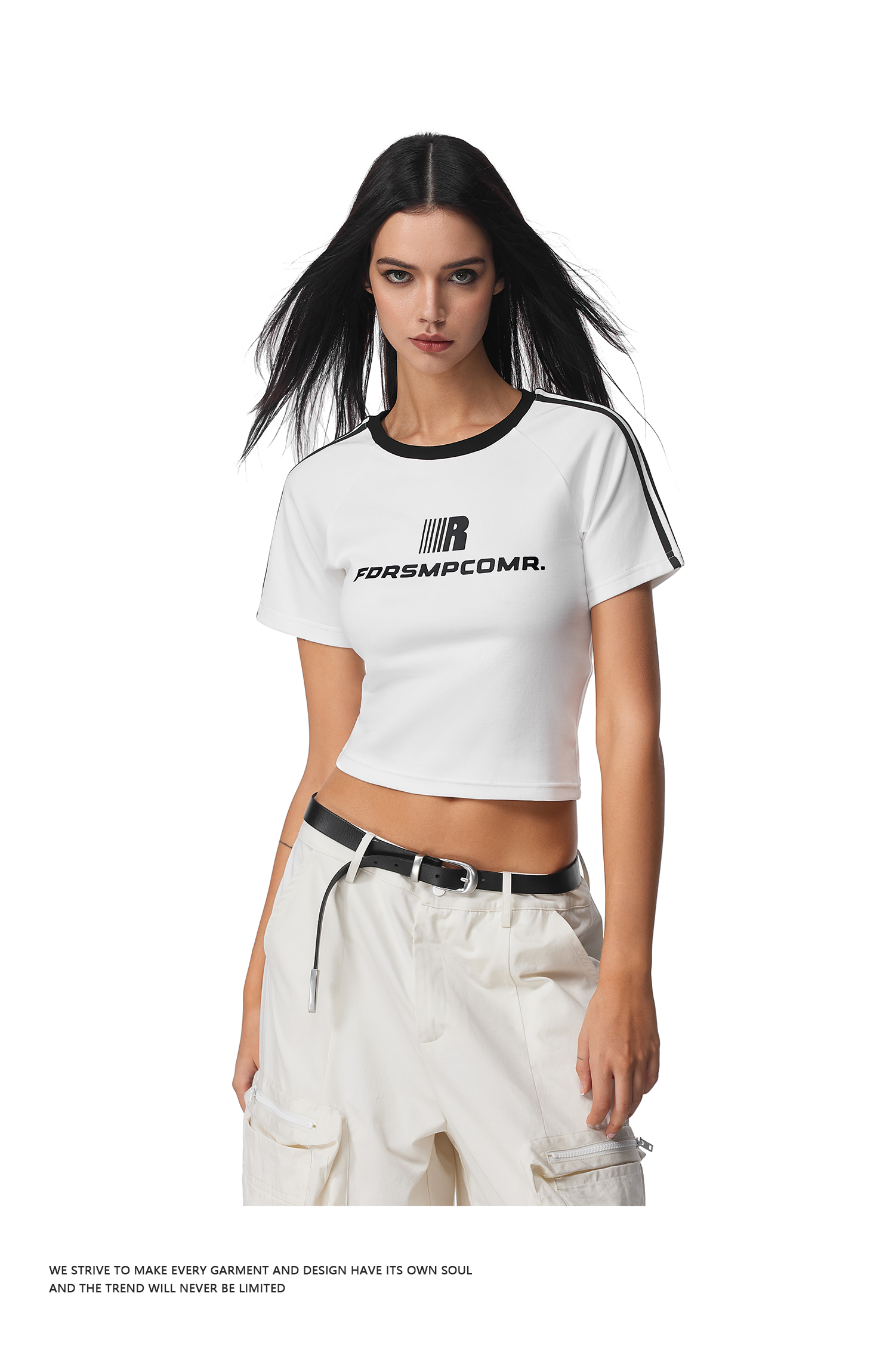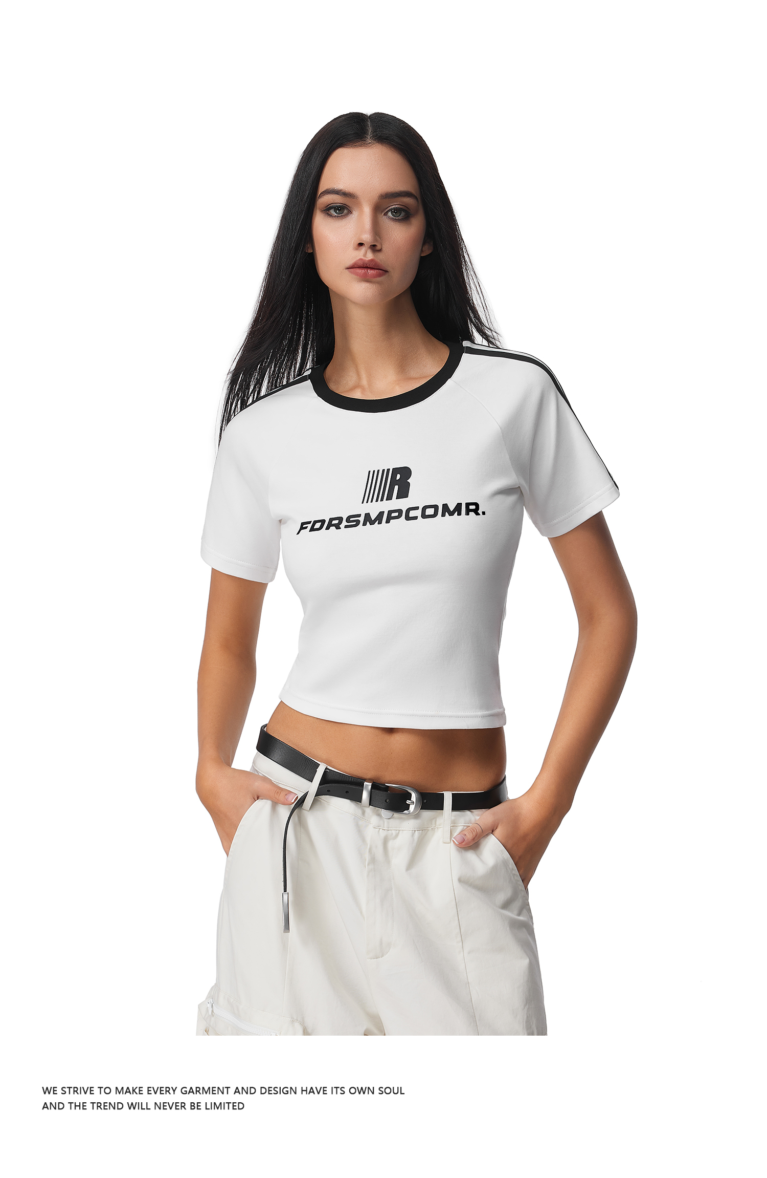 FDR官方店 织带撞色印花修身辣妹短袖女夏季运动美式短款t恤上衣