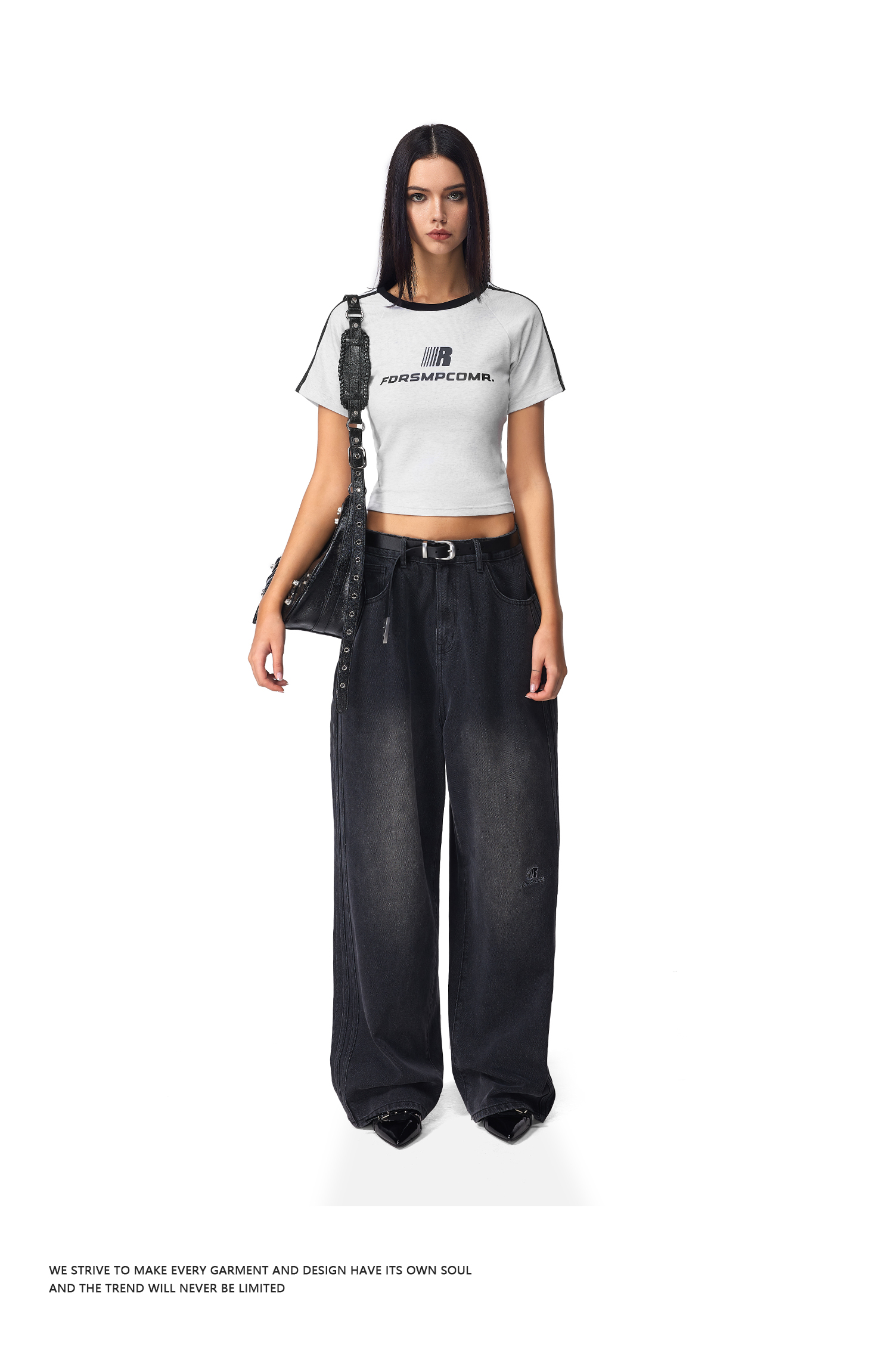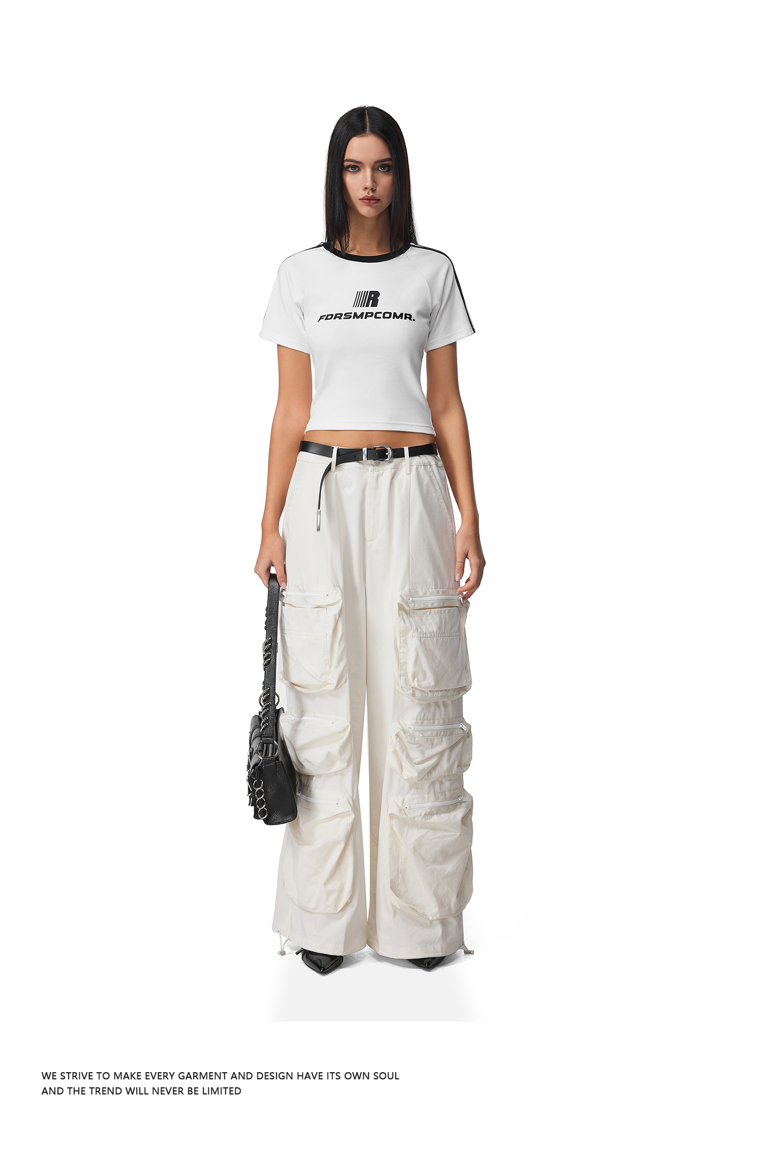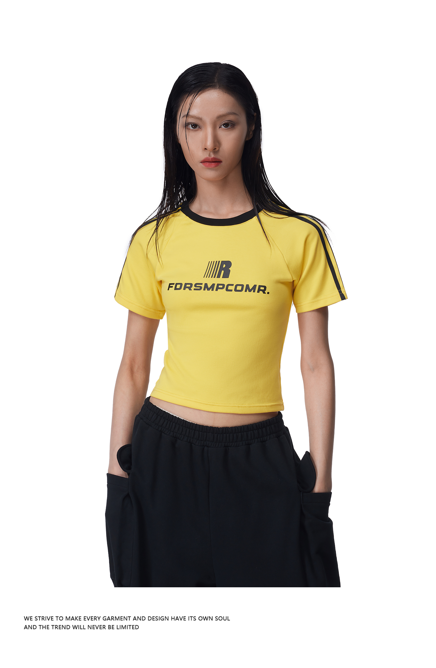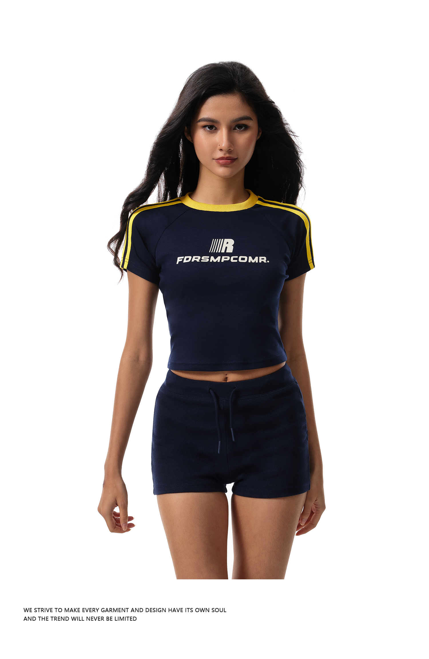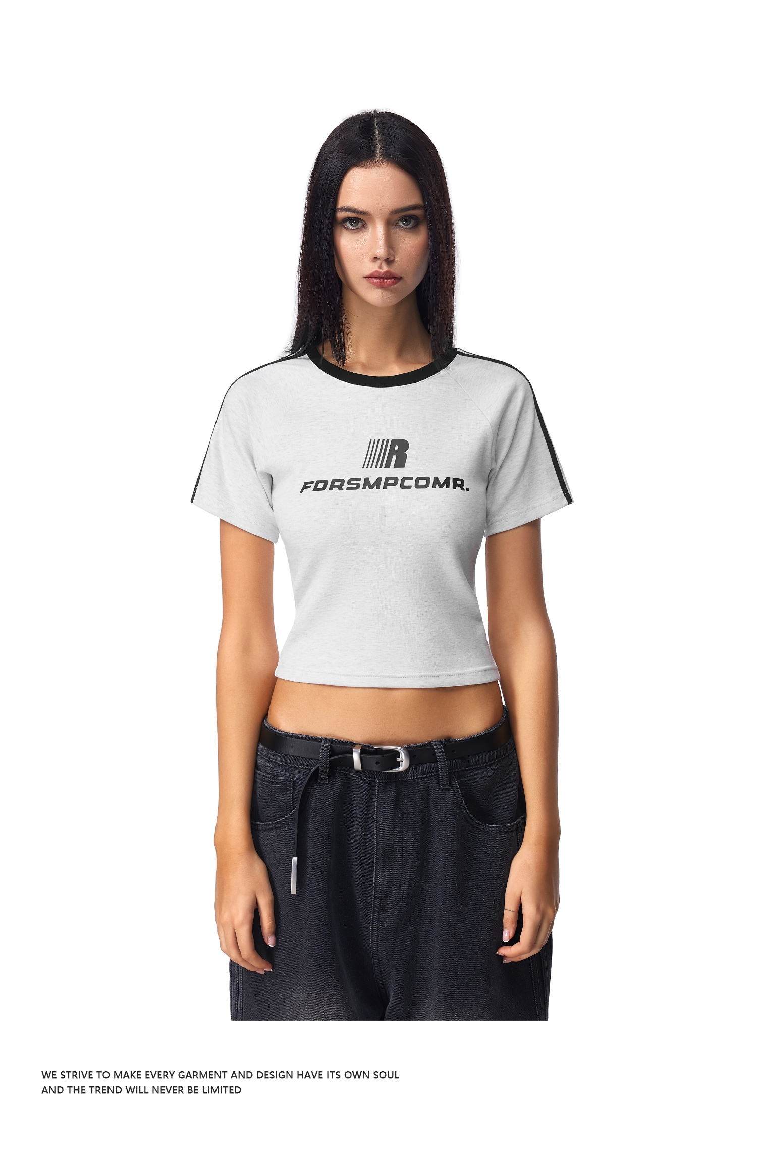 FDR官方店 织带撞色印花修身辣妹短袖女夏季运动美式短款t恤上衣