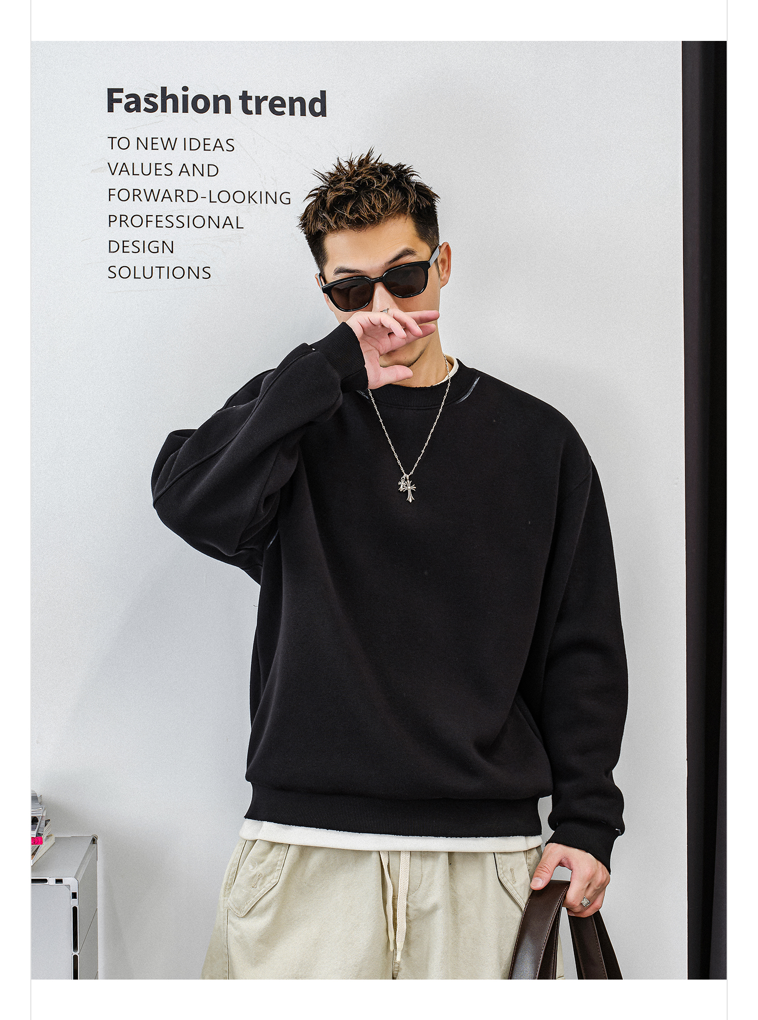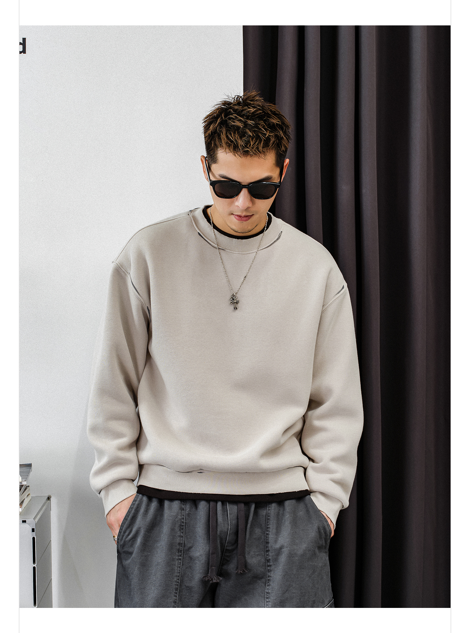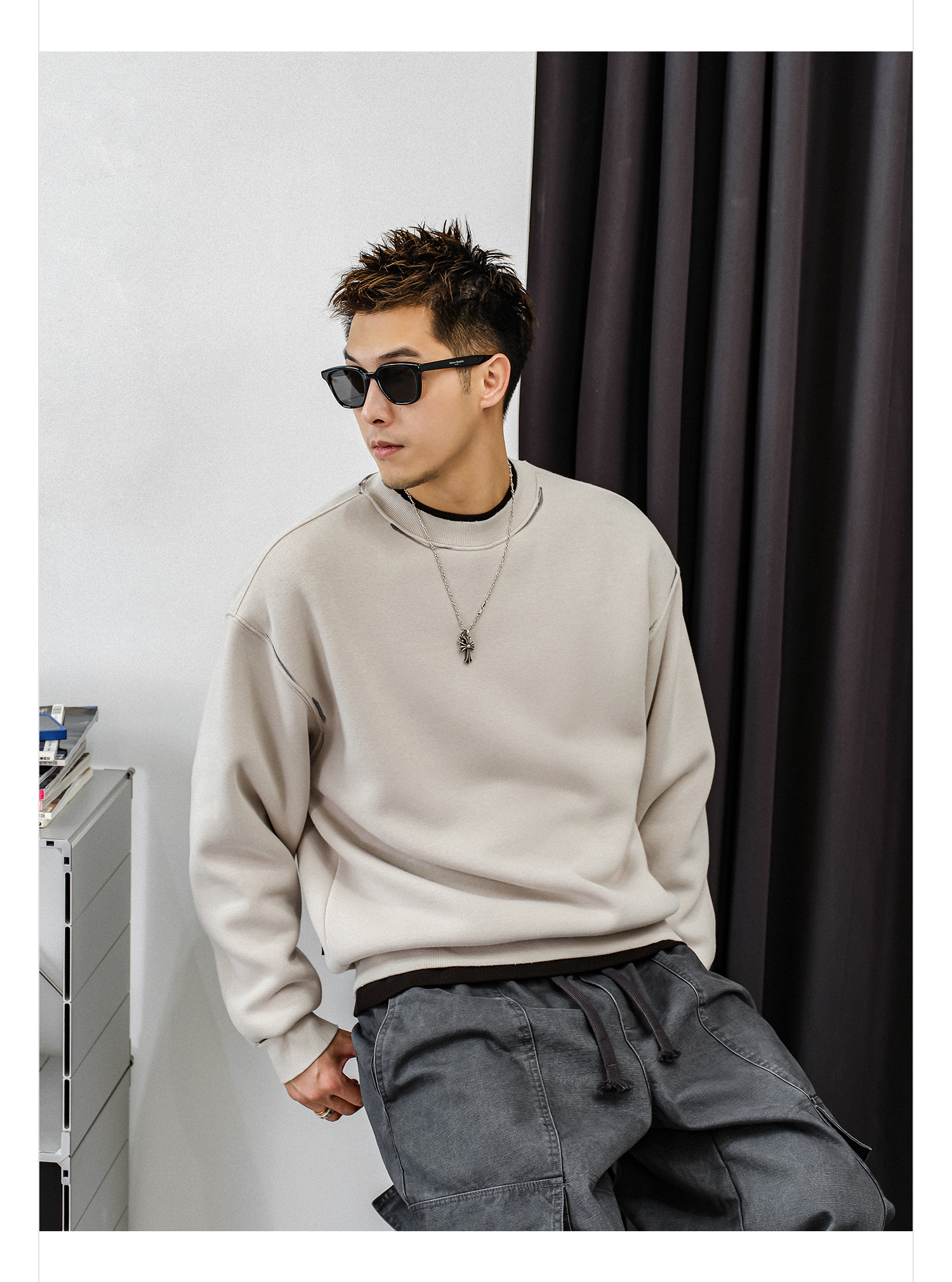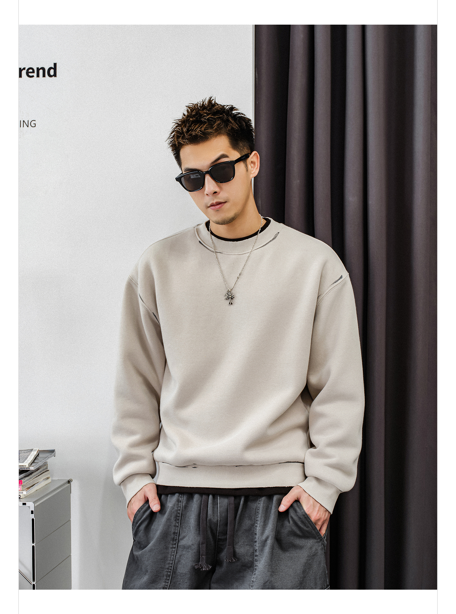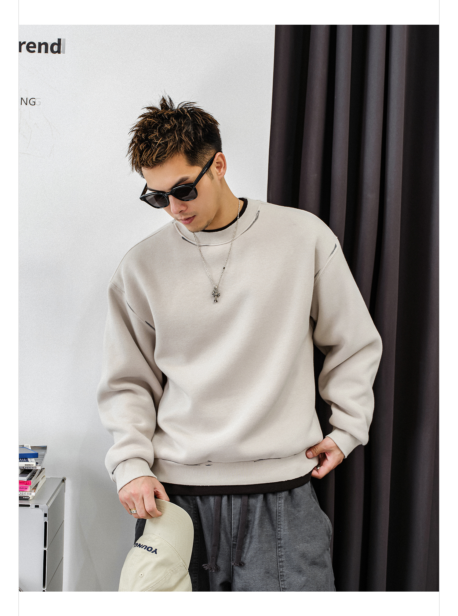 徐太浪【帅气涂鸦 非假两件】加绒卫衣男秋冬款休闲内搭打底衫上衣